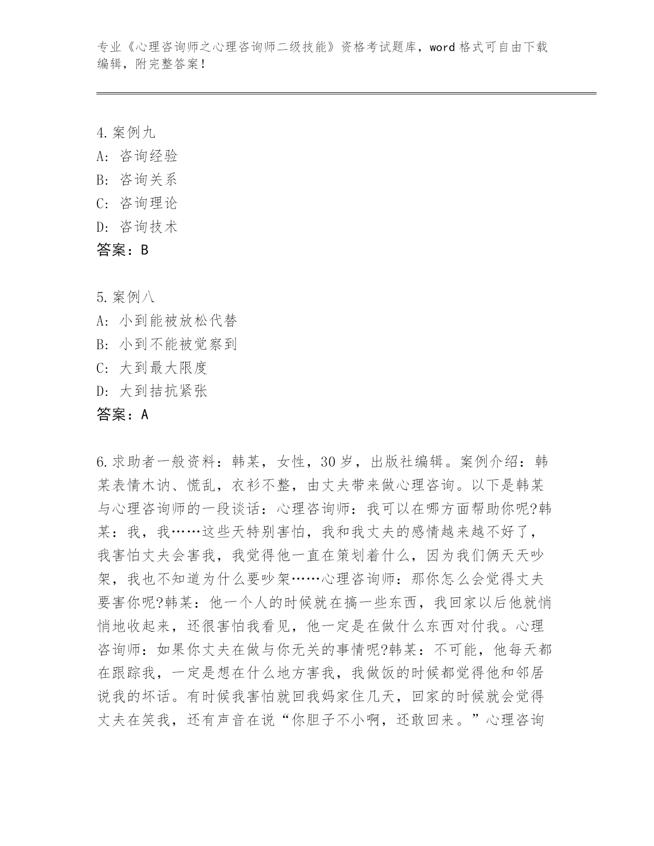 陕西省洛南县《心理咨询师之心理咨询师二级技能》考试大全附答案(考试直接用)