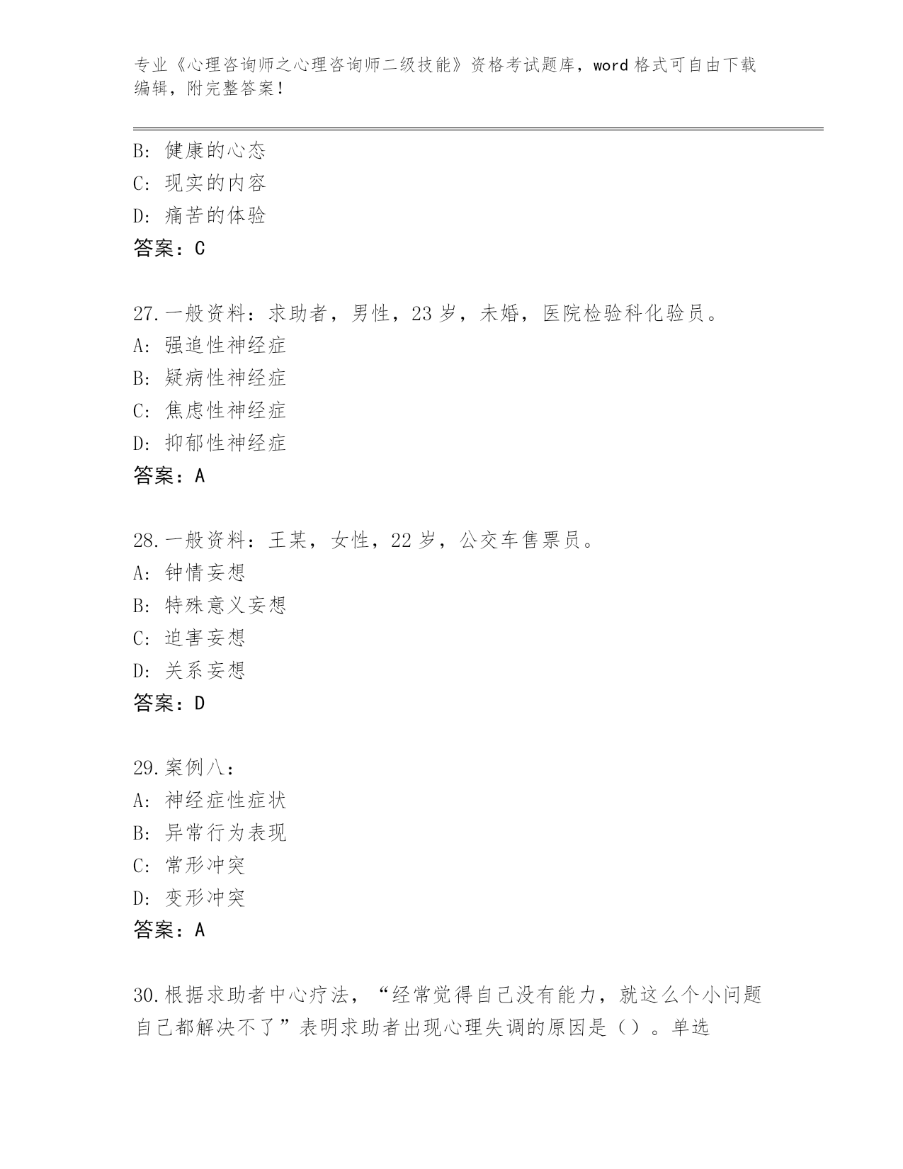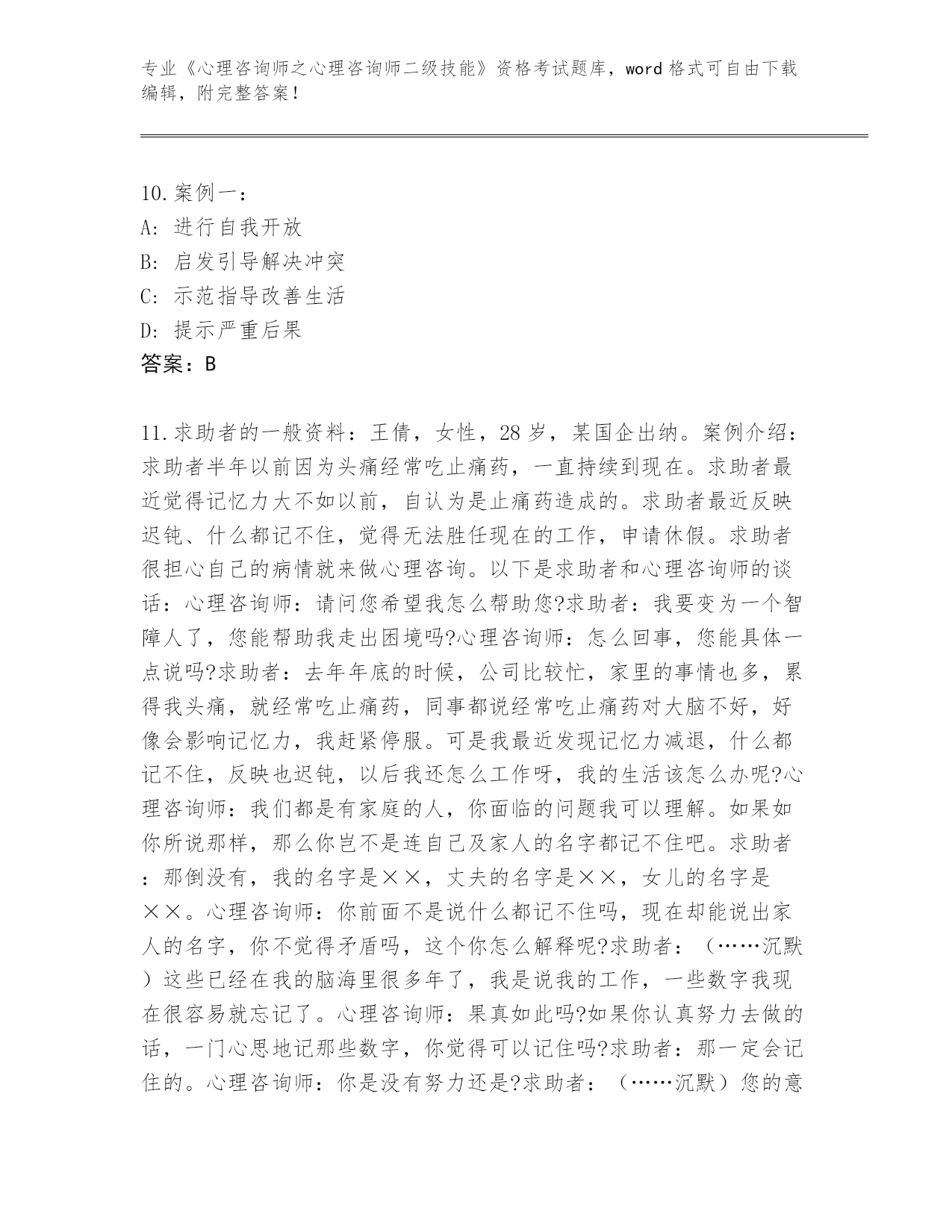 青海省城中区《心理咨询师之心理咨询师二级技能》资格考试大全带答案(考试直接用)