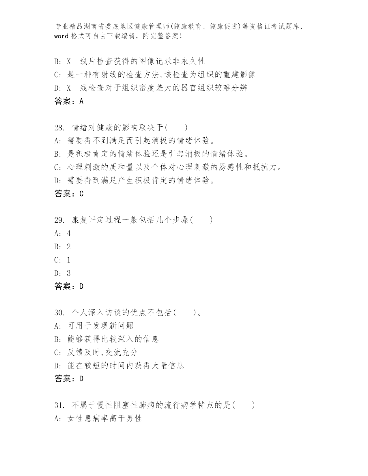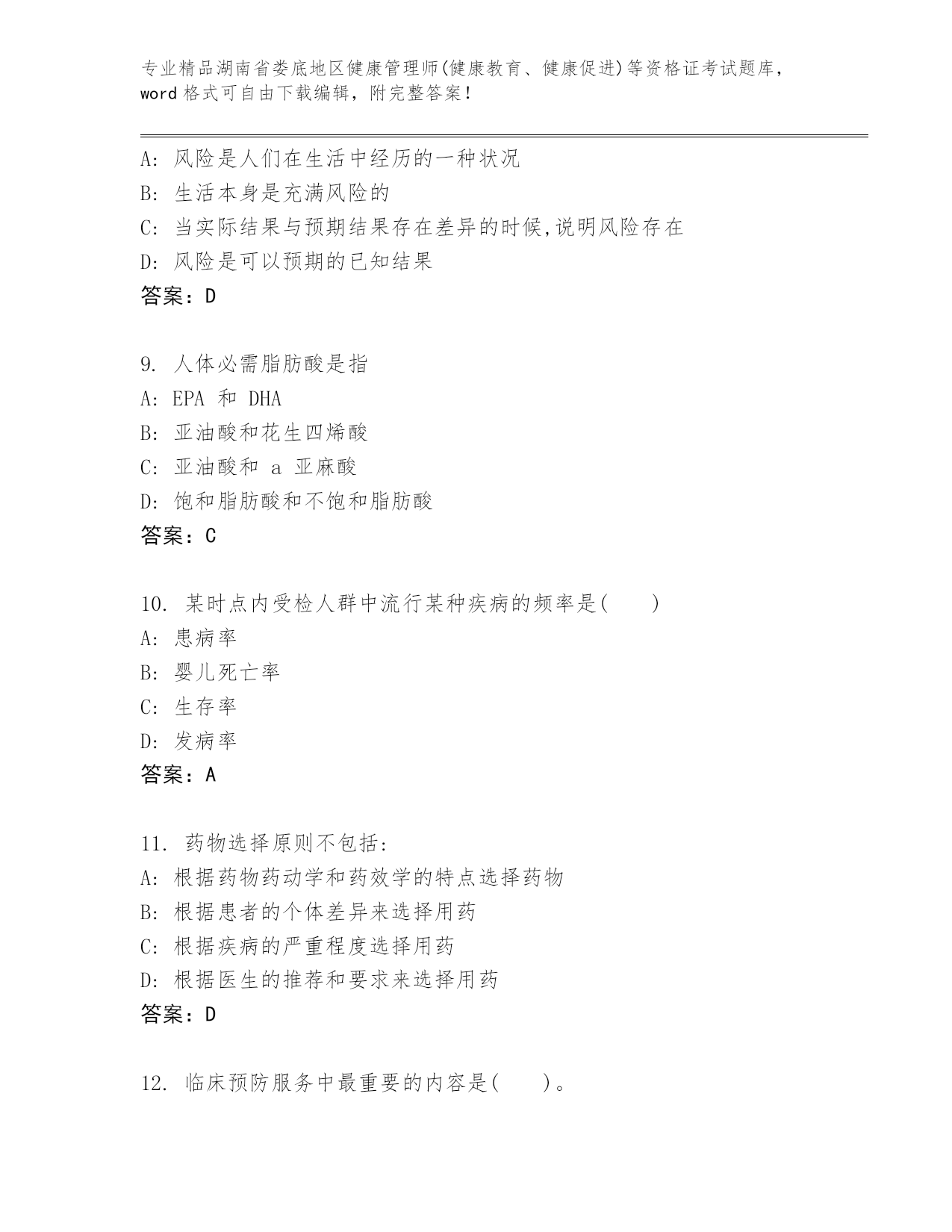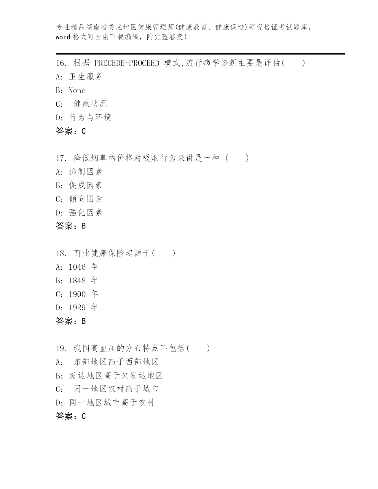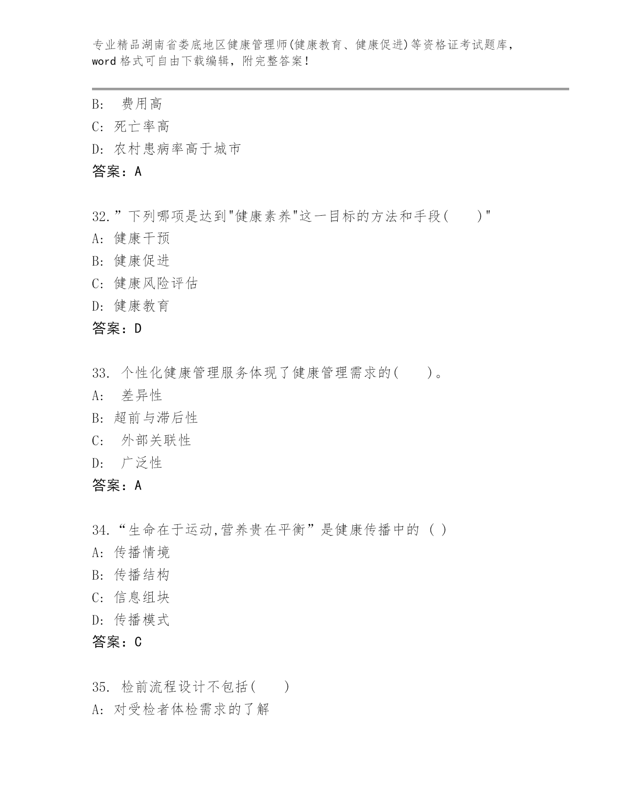 精品湖南省娄底地区健康管理师(健康教育、健康促进)等资格证考试真题(真题汇编)