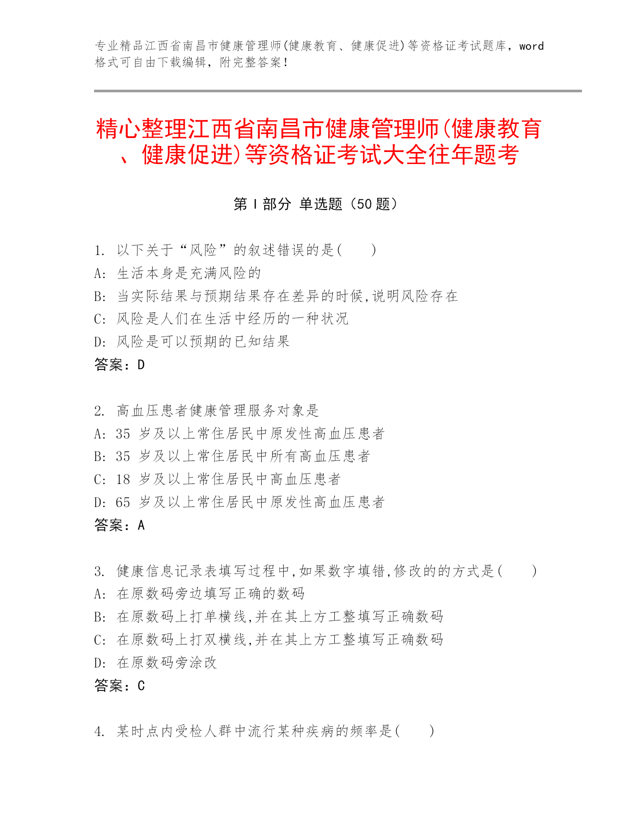 精心整理江西省南昌市健康管理师(健康教育、健康促进)等资格证考试大全往年题考.docx