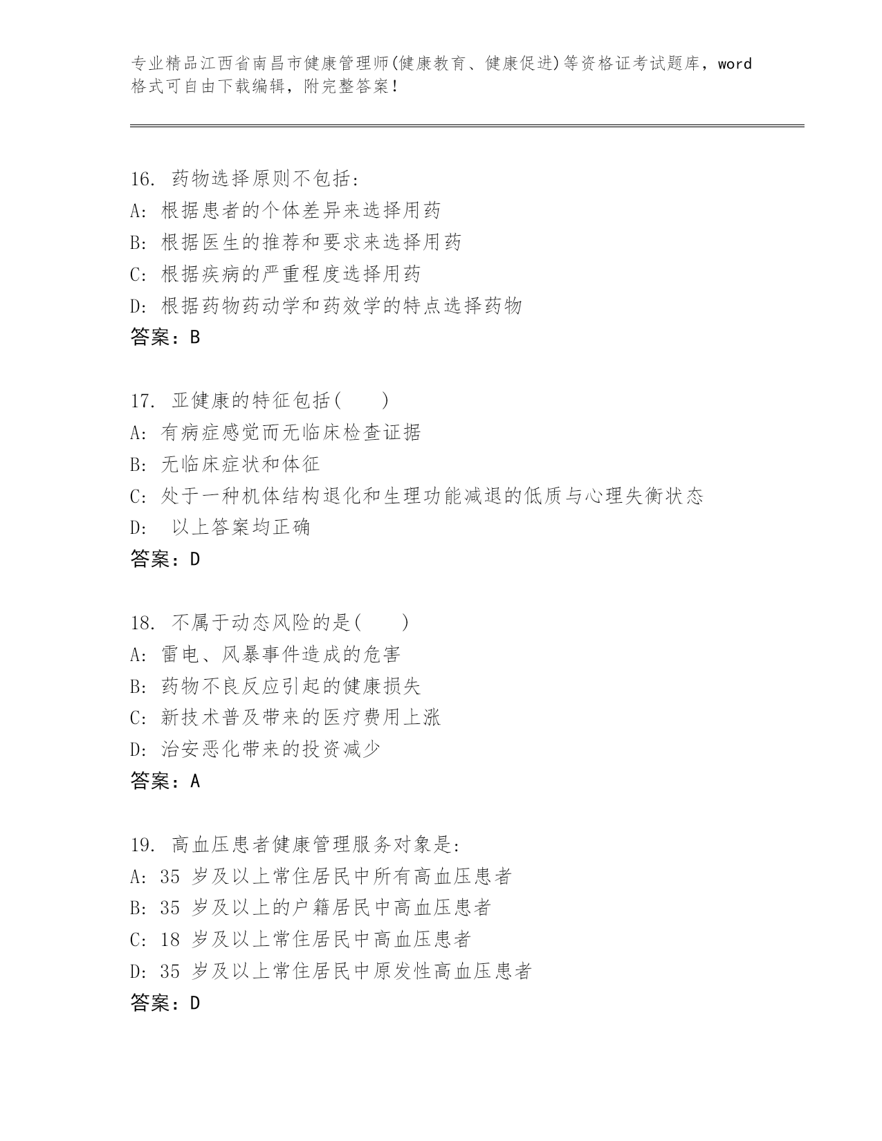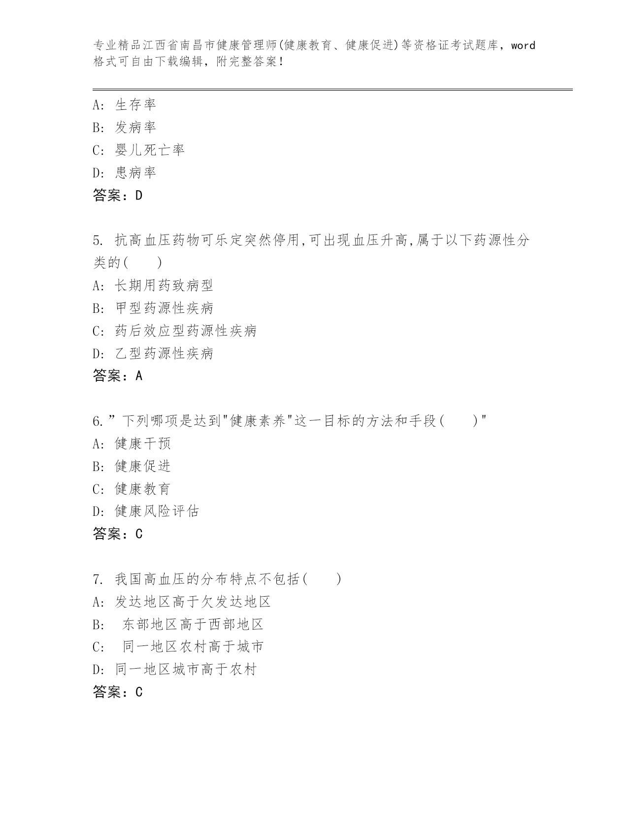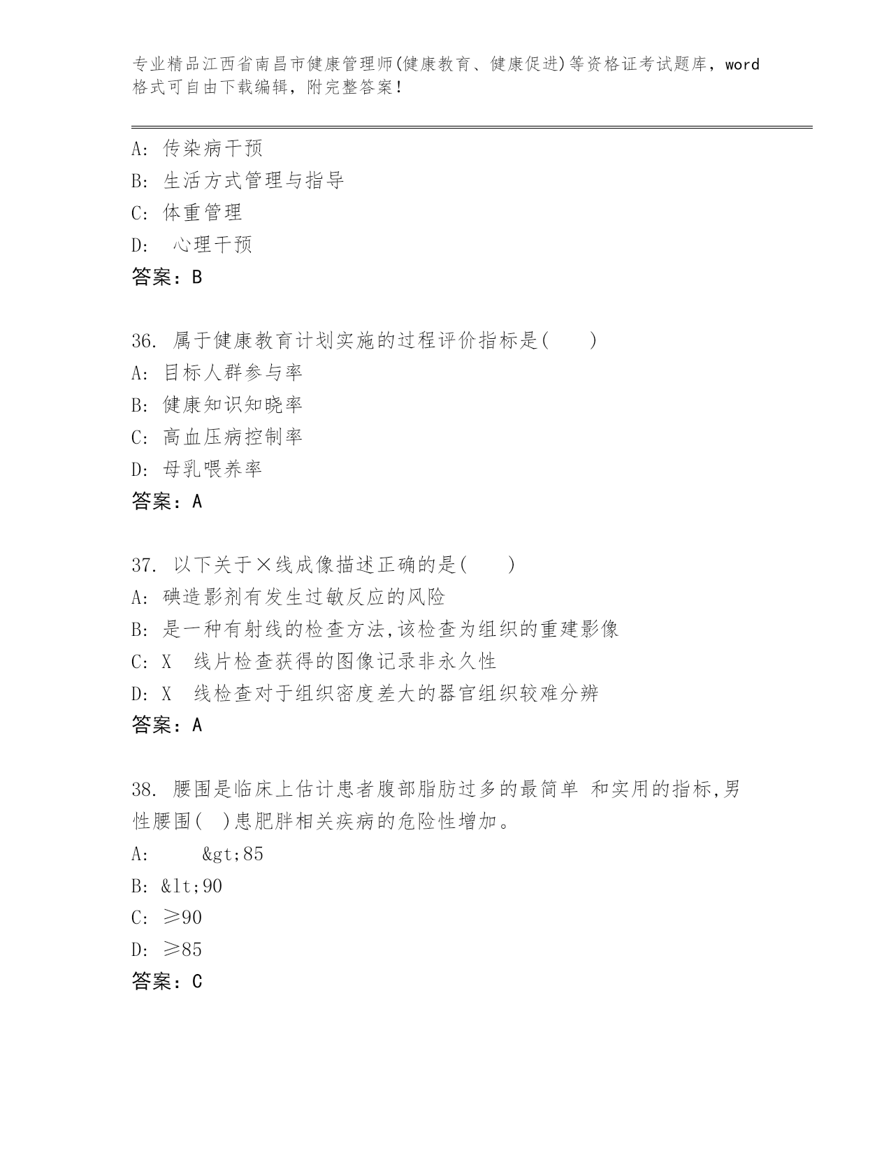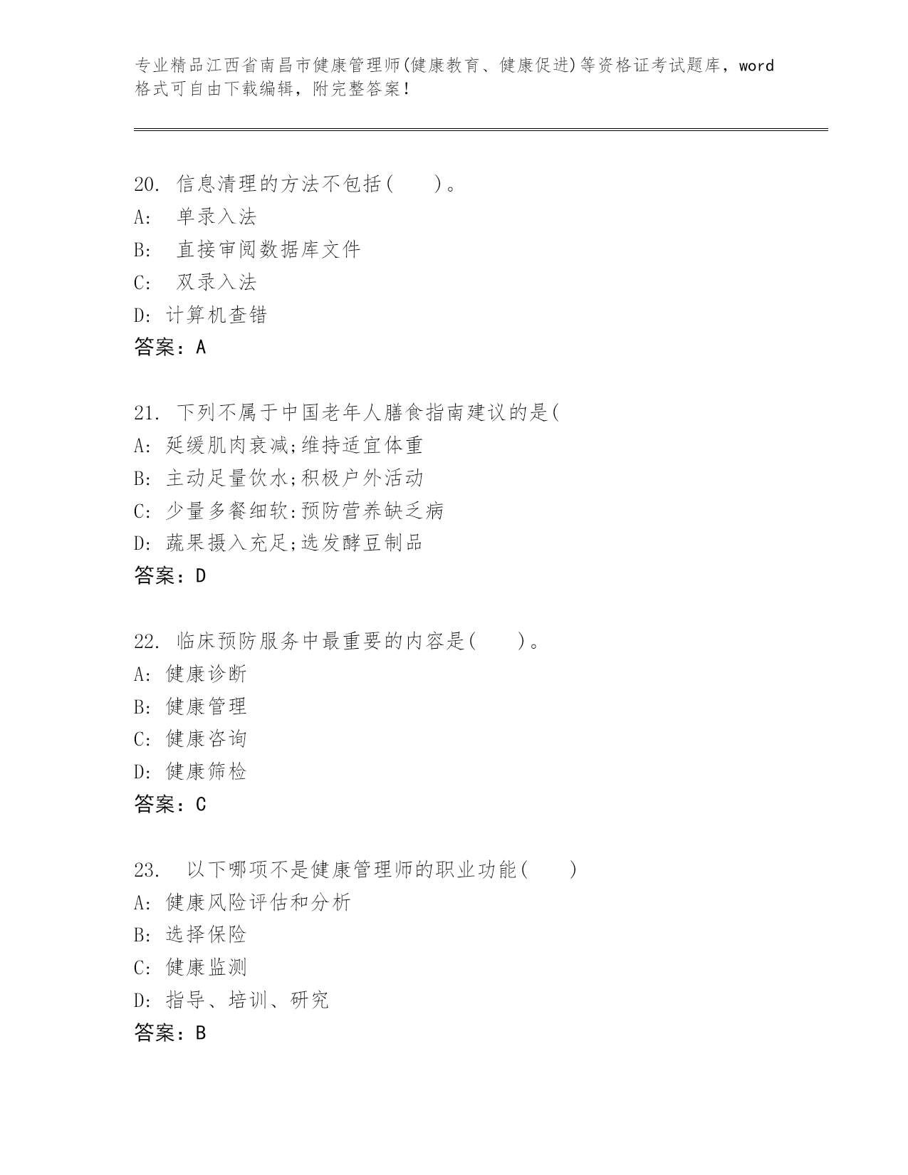 精心整理江西省南昌市健康管理师(健康教育、健康促进)等资格证考试大全往年题考