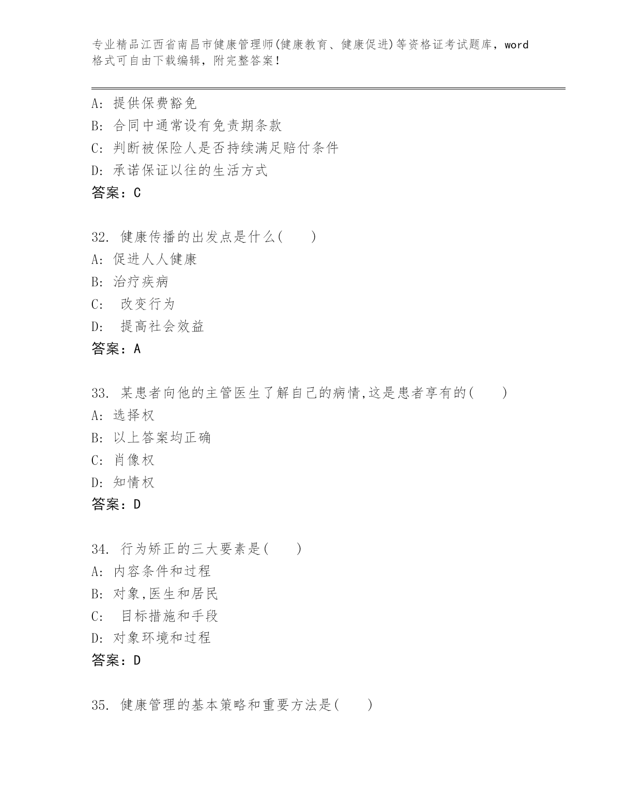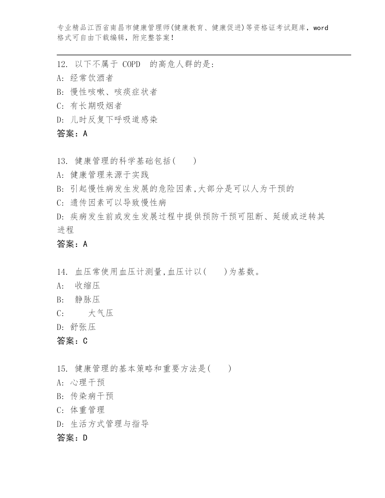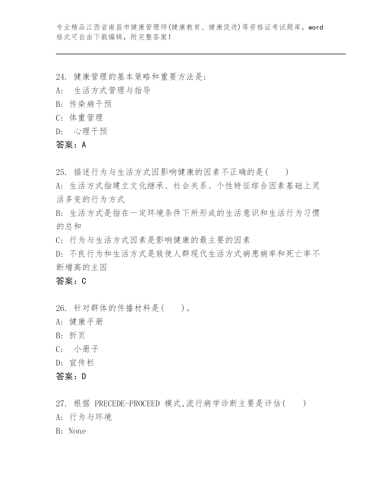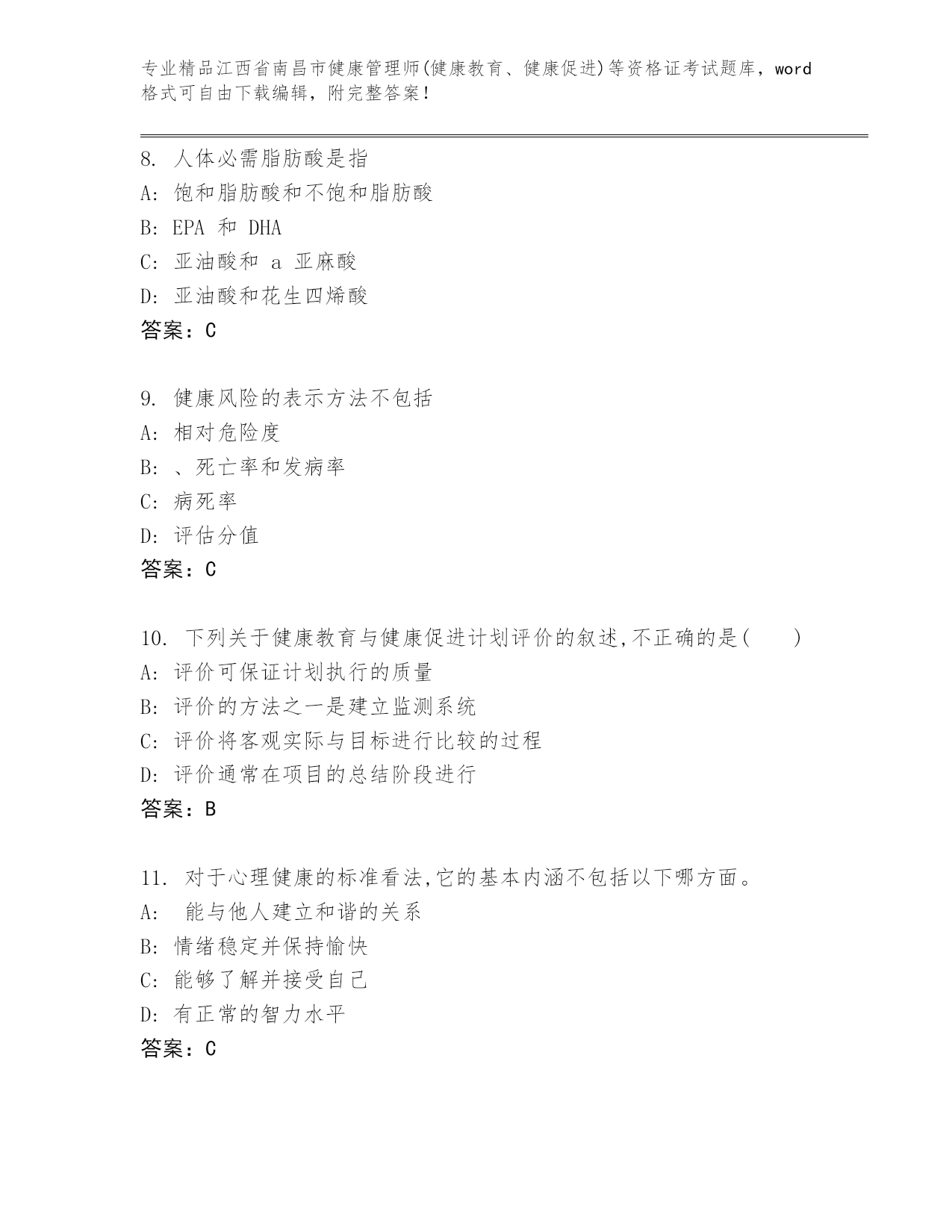 精心整理江西省南昌市健康管理师(健康教育、健康促进)等资格证考试大全往年题考