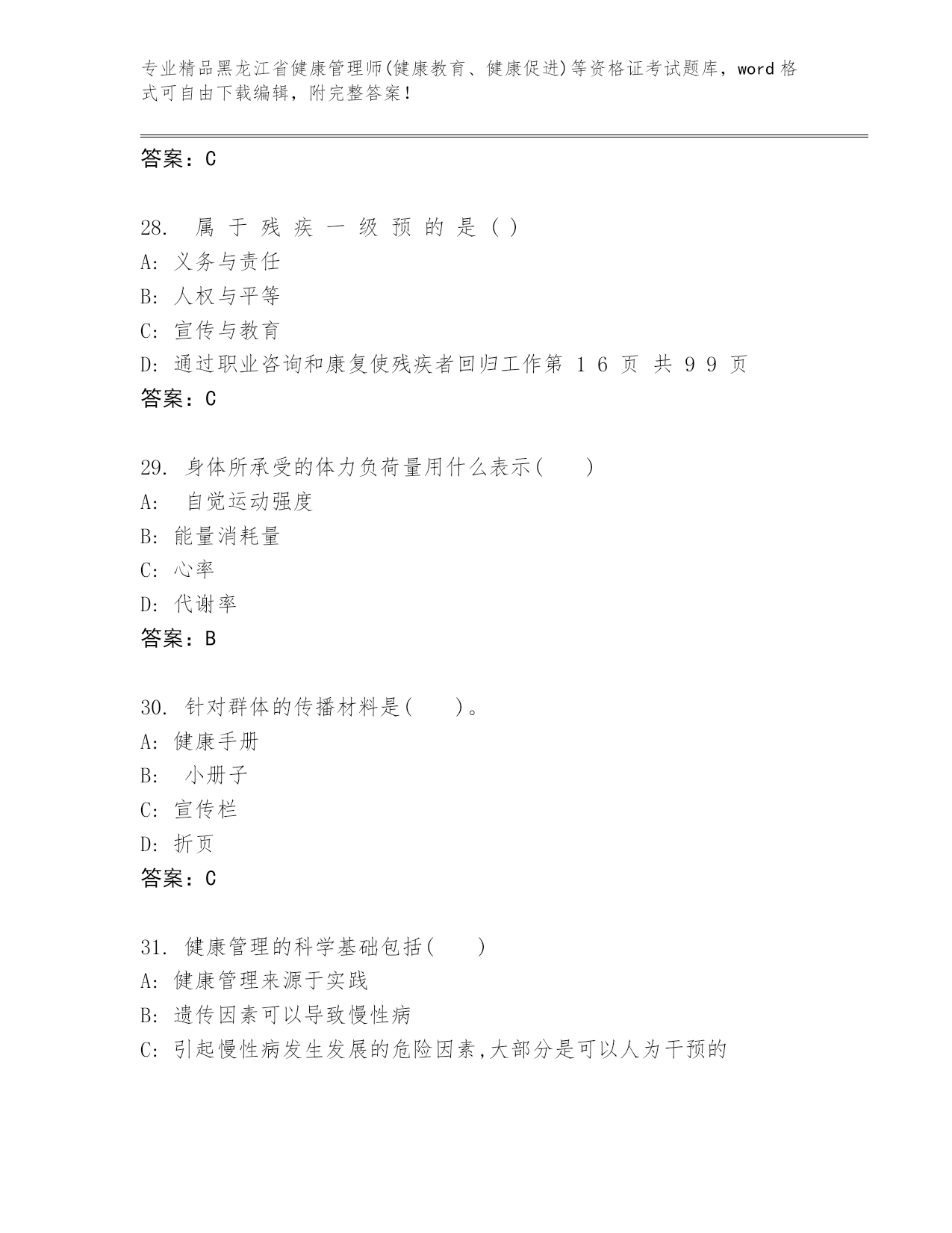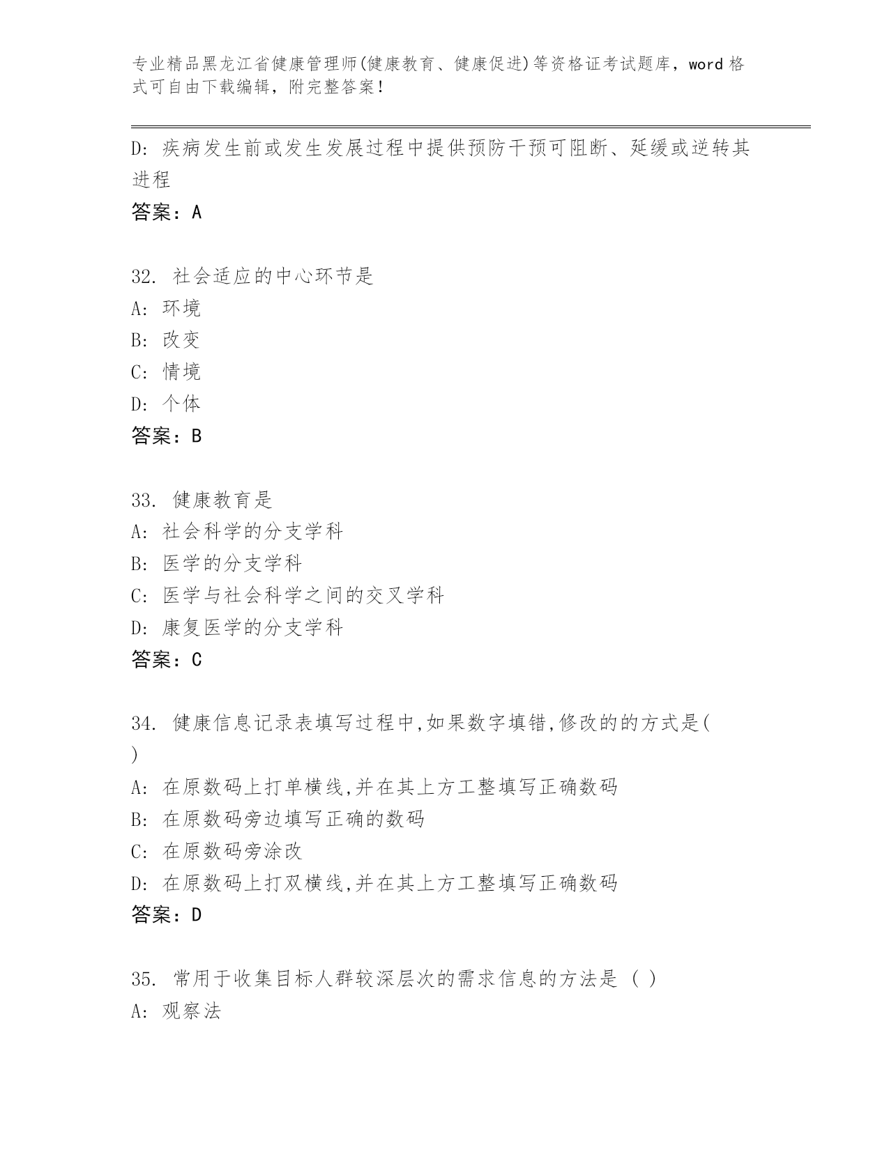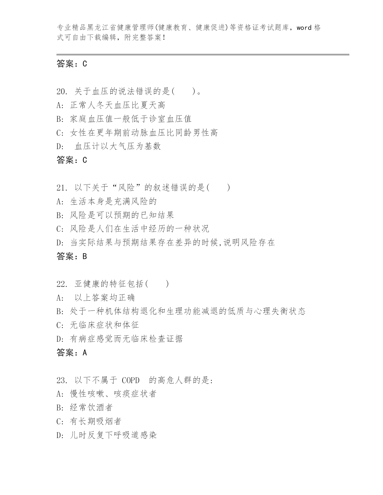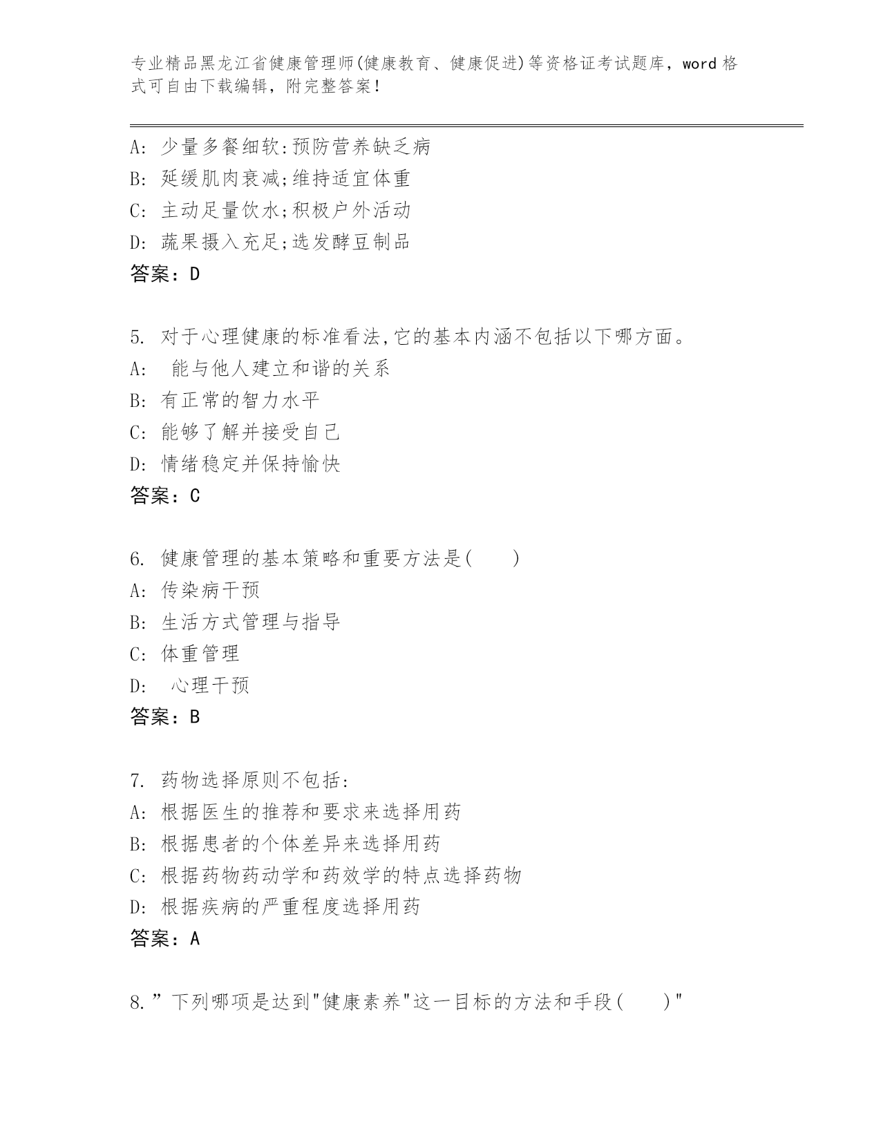 优选黑龙江省健康管理师(健康教育、健康促进)等资格证考试大全附答案【能力提升】
