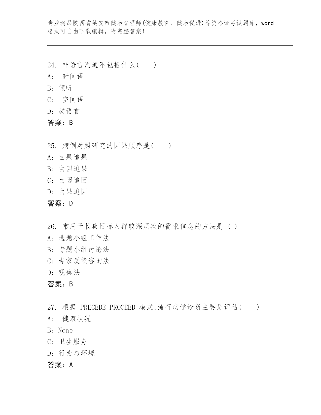 优选陕西省延安市健康管理师(健康教育、健康促进)等资格证考试通用题库附答案(B卷)