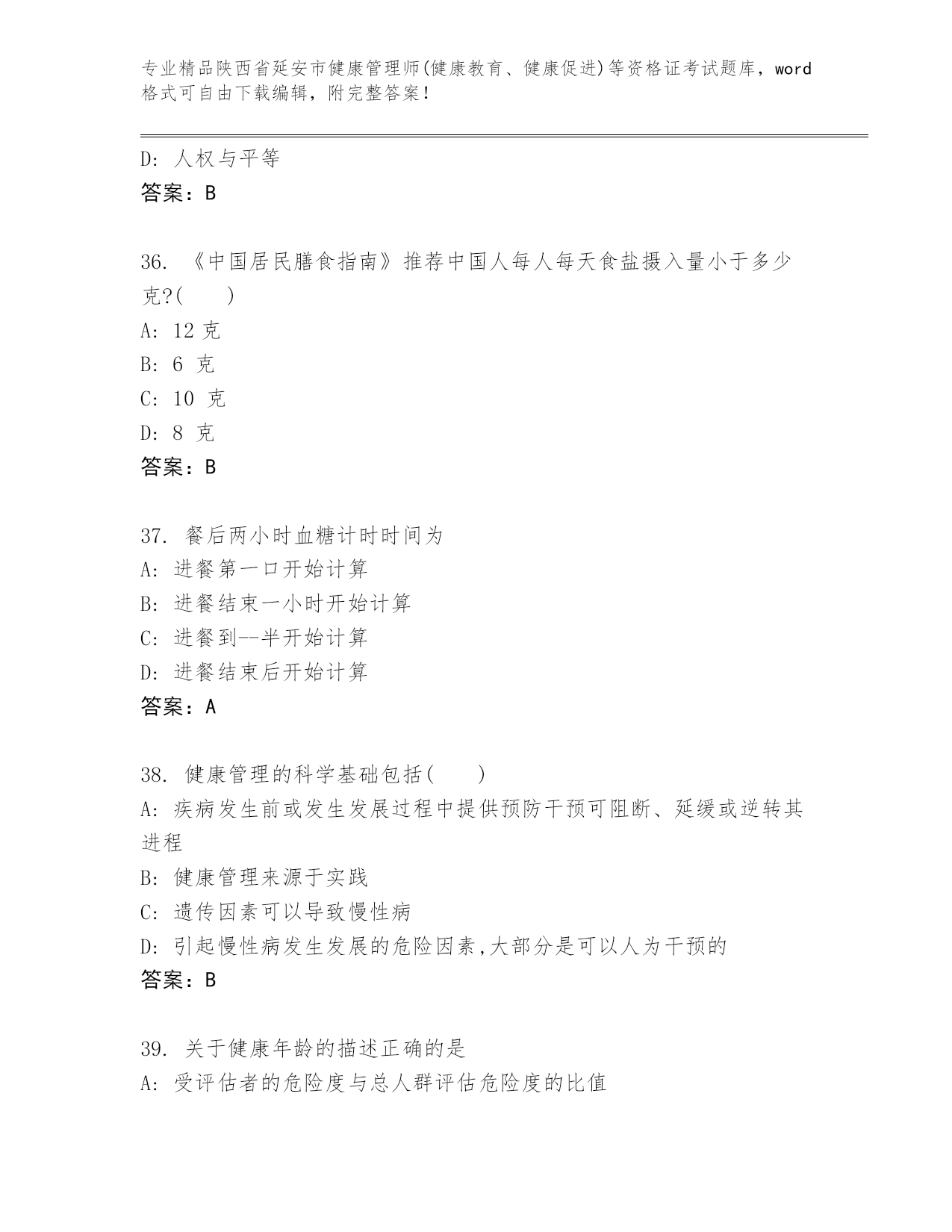 优选陕西省延安市健康管理师(健康教育、健康促进)等资格证考试通用题库附答案(B卷).docx