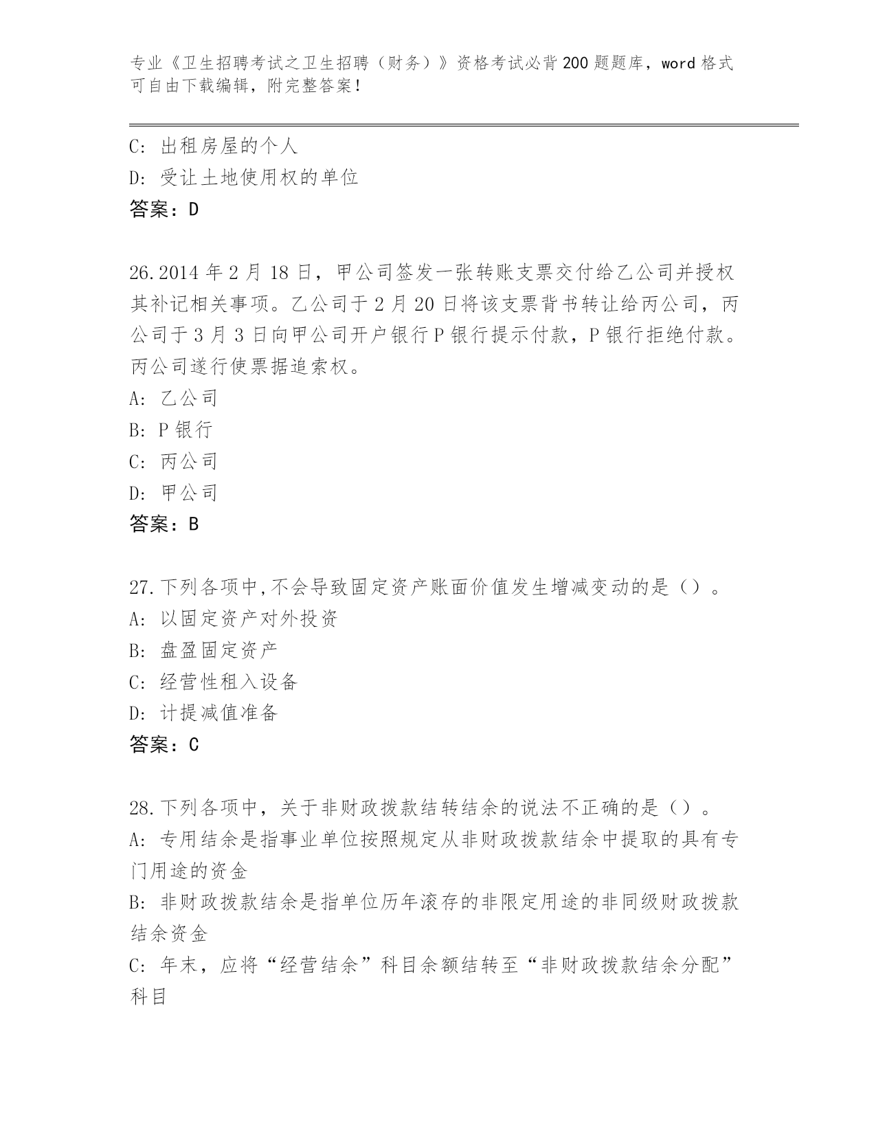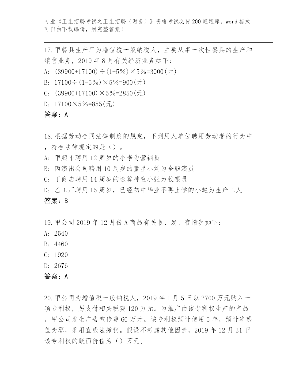 河南省滑县完整版《卫生招聘考试之卫生招聘(财务)》资格考试必背200题真题(巩固)