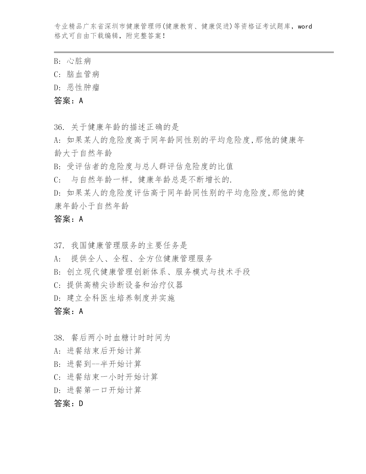 精品广东省深圳市健康管理师(健康教育、健康促进)等资格证考试内部题库(实用).docx