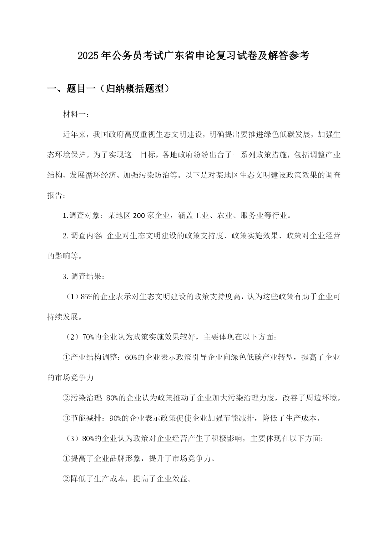 公务员考试广东省申论2025年复习试卷及解答参考