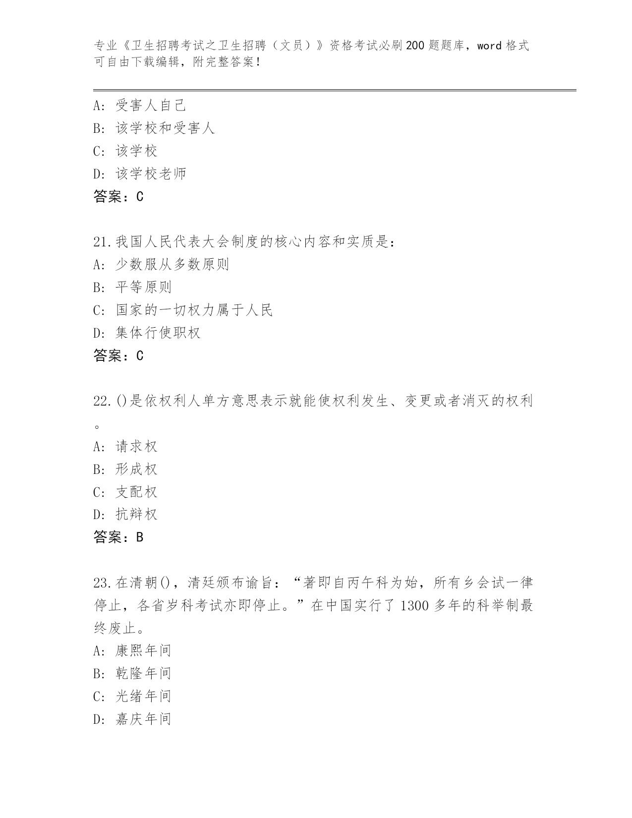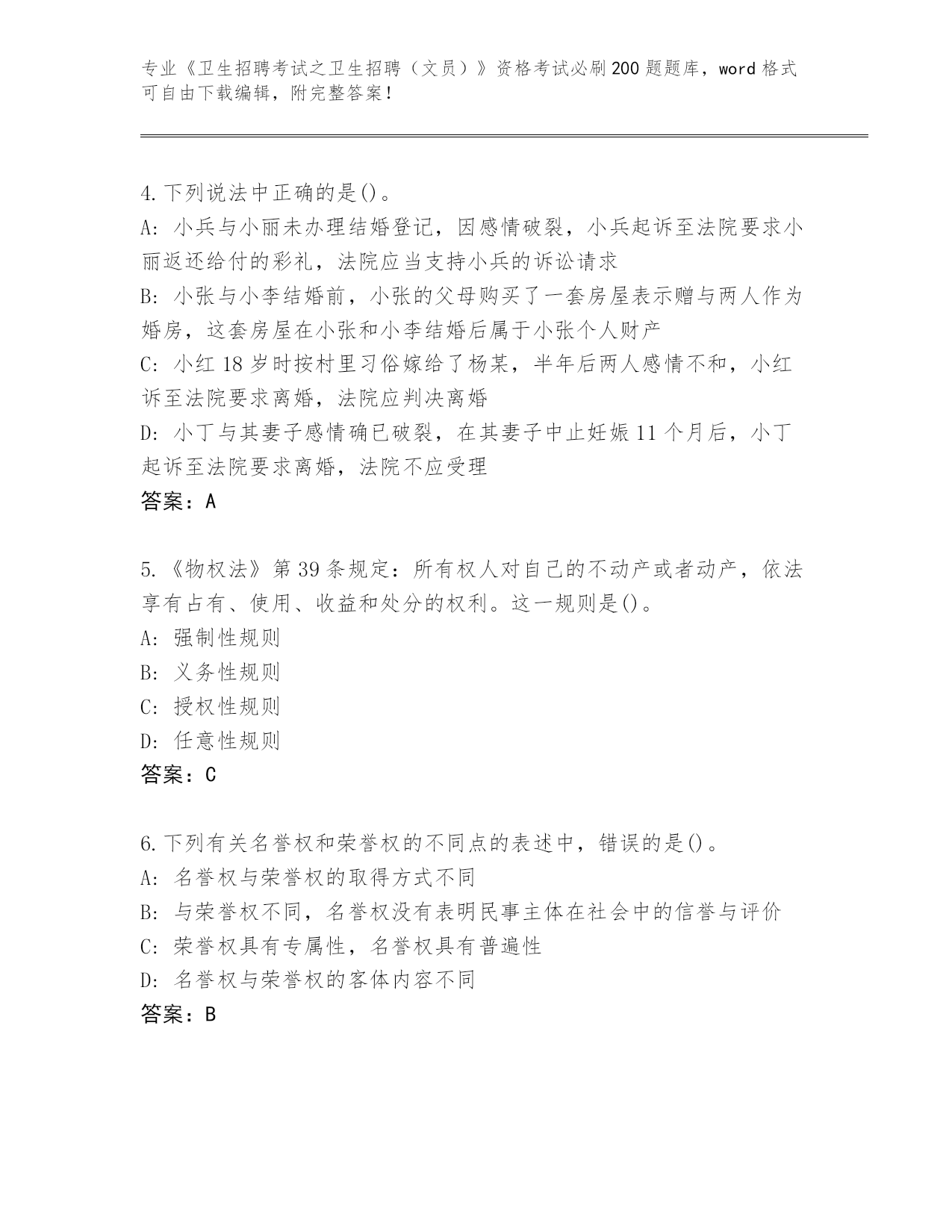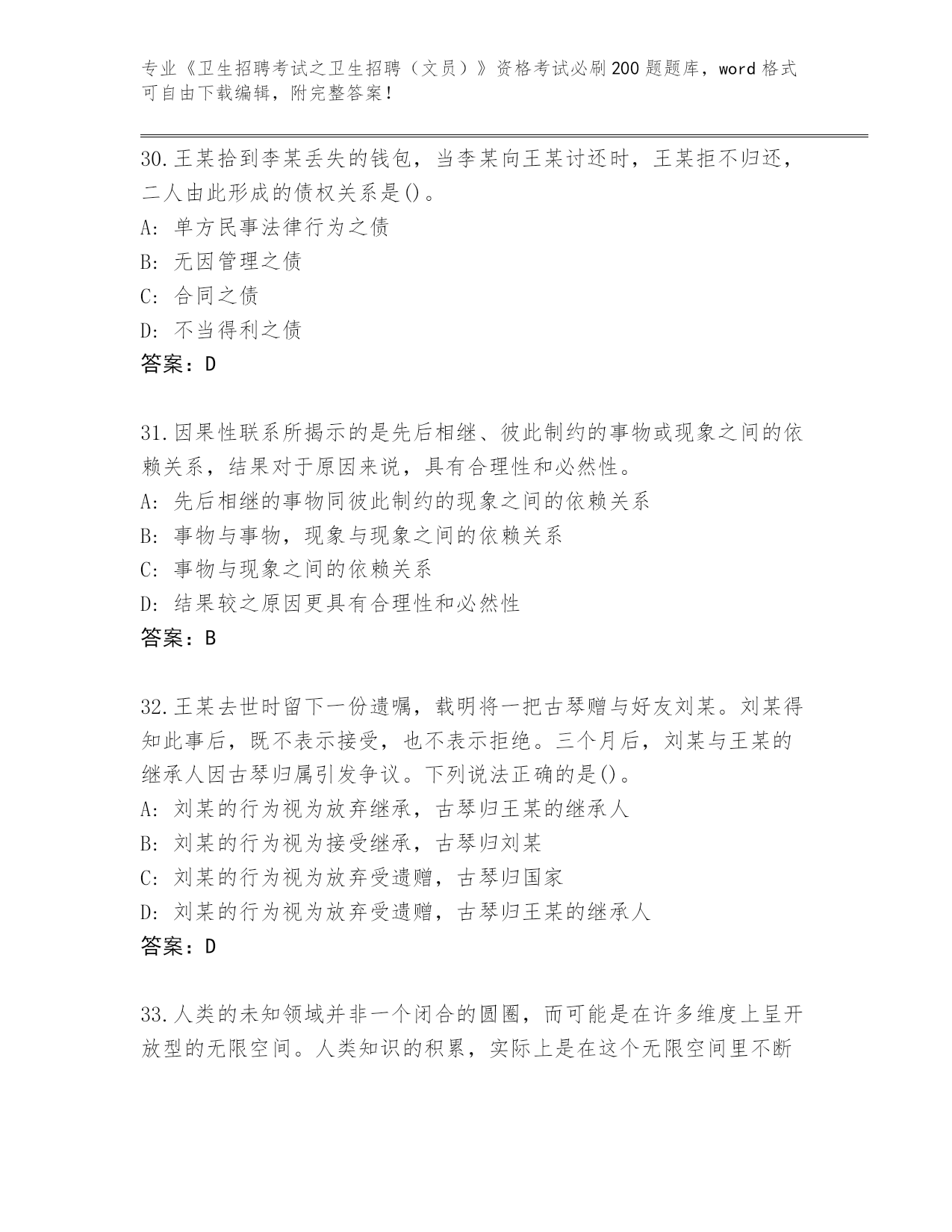 内部使用贵州省望谟县《卫生招聘考试之卫生招聘(文员)》资格考试必刷200题通关秘籍题库(B卷)