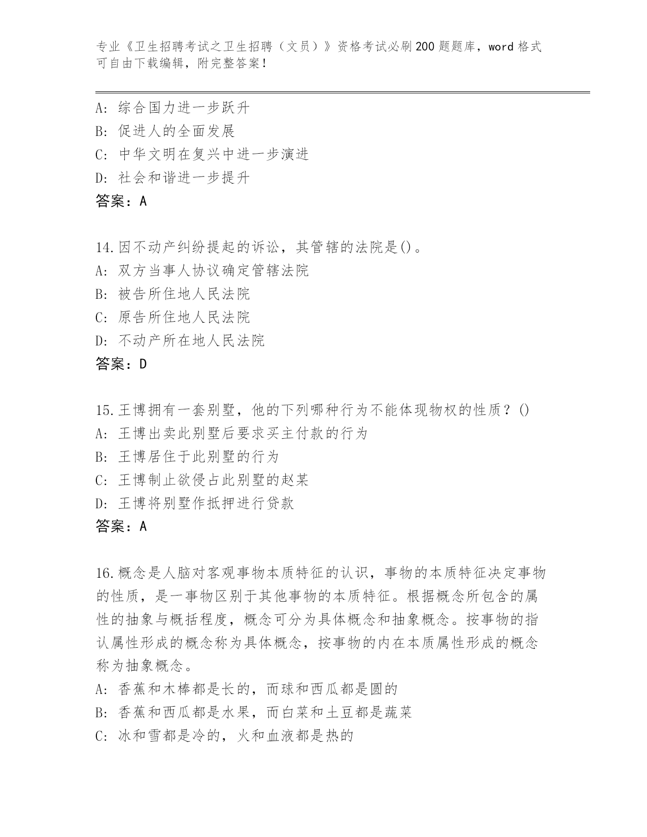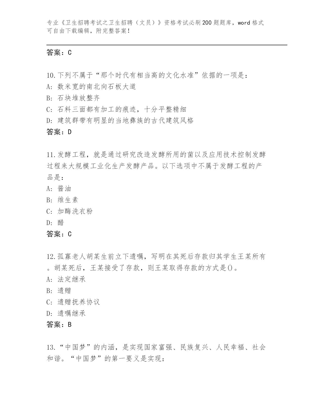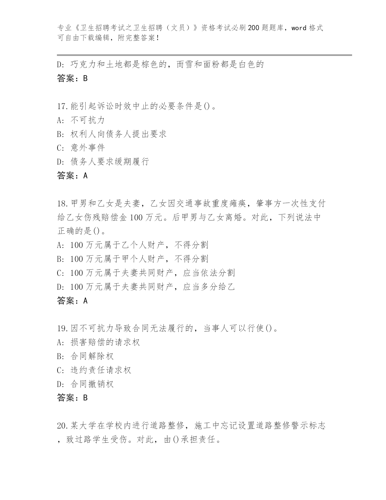 贵州省余庆县整理《卫生招聘考试之卫生招聘(文员)》资格考试必刷200题通关秘籍题库及答案【真题汇编】