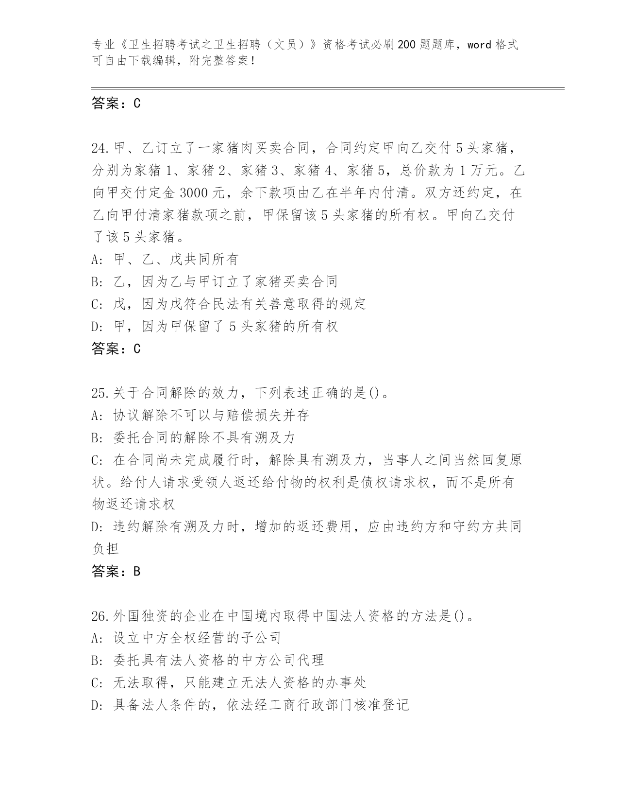 贵州省2024年《卫生招聘考试之卫生招聘(文员)》考试必刷200题通关秘籍题库(巩固)