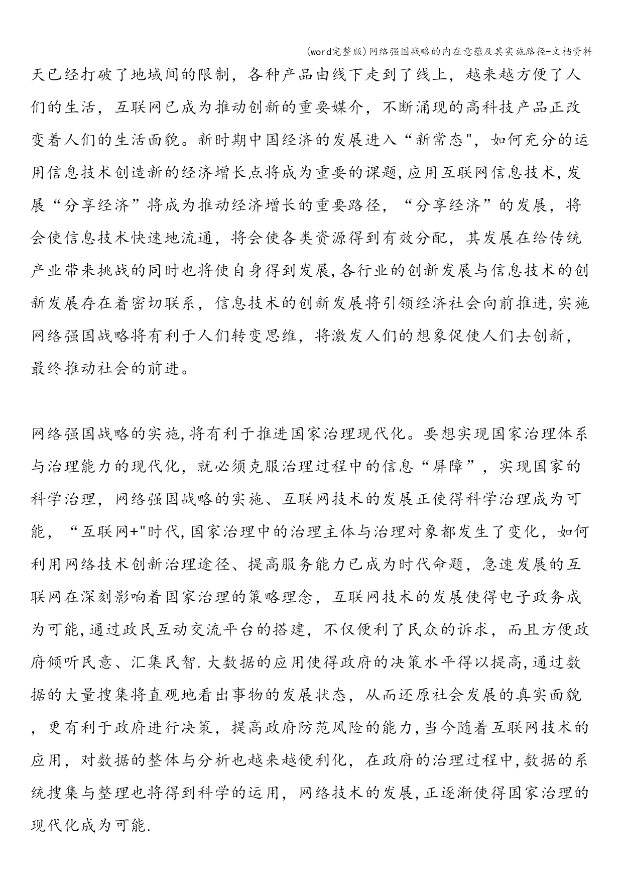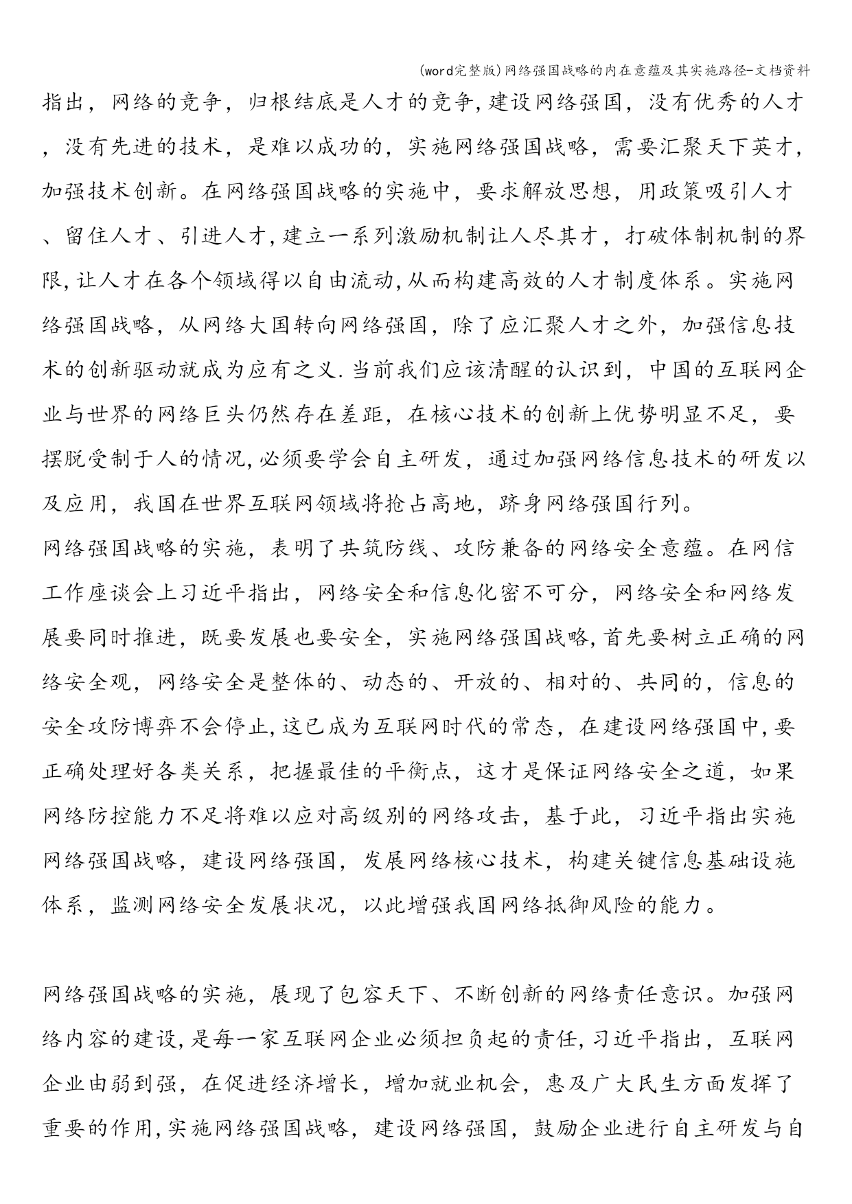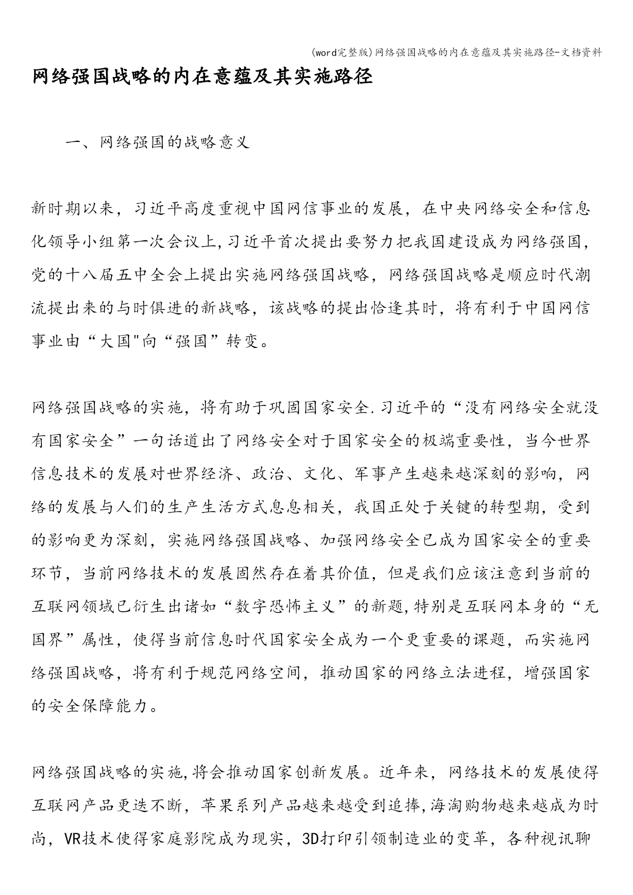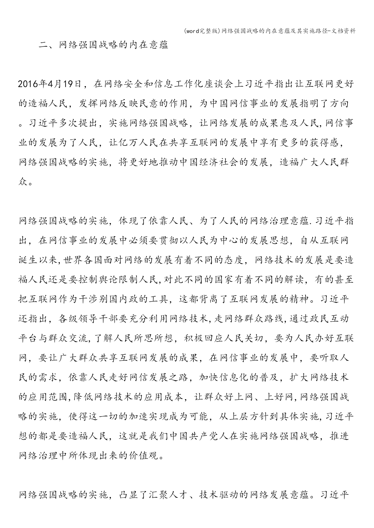 (word完整版)网络强国战略的内在意蕴及其实施路径-文档资料