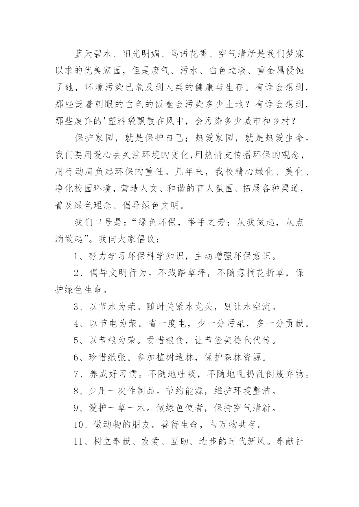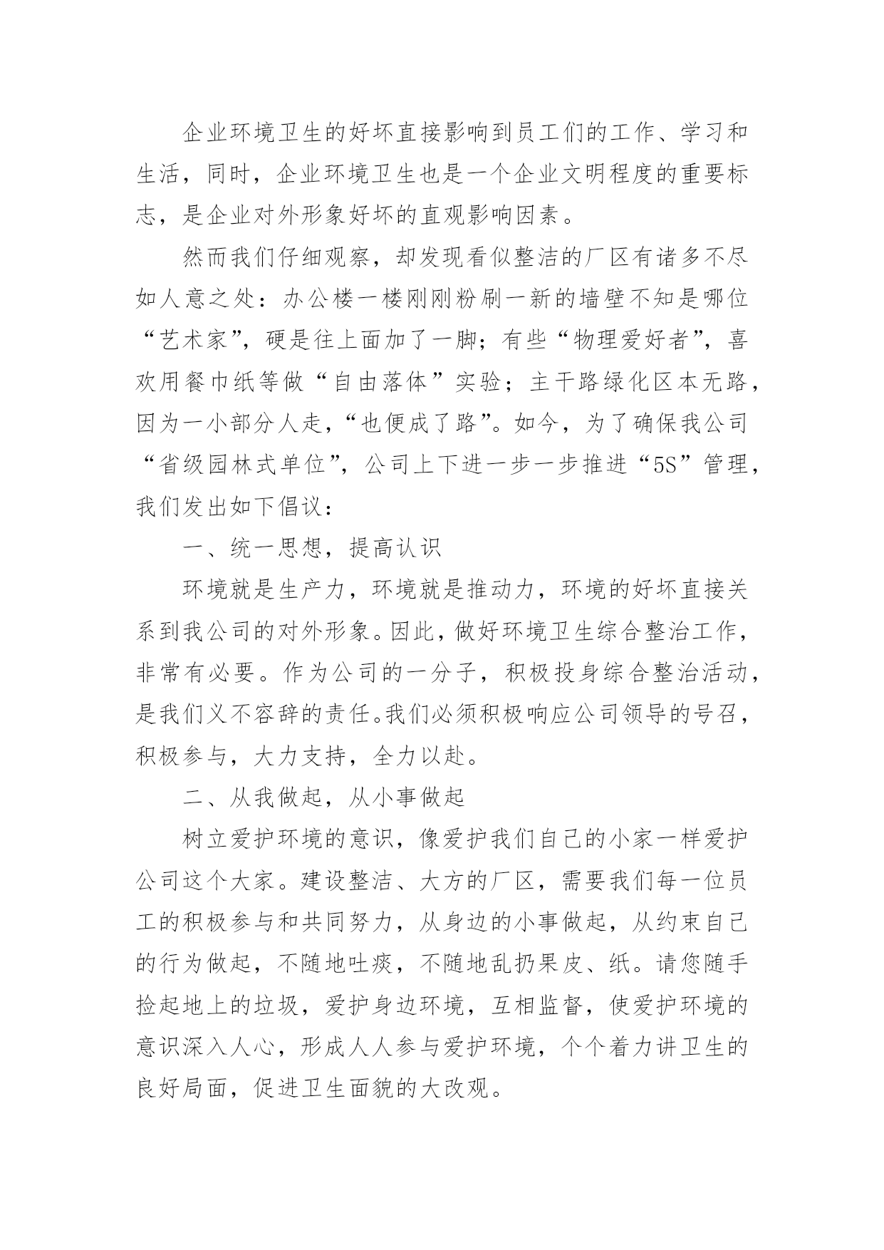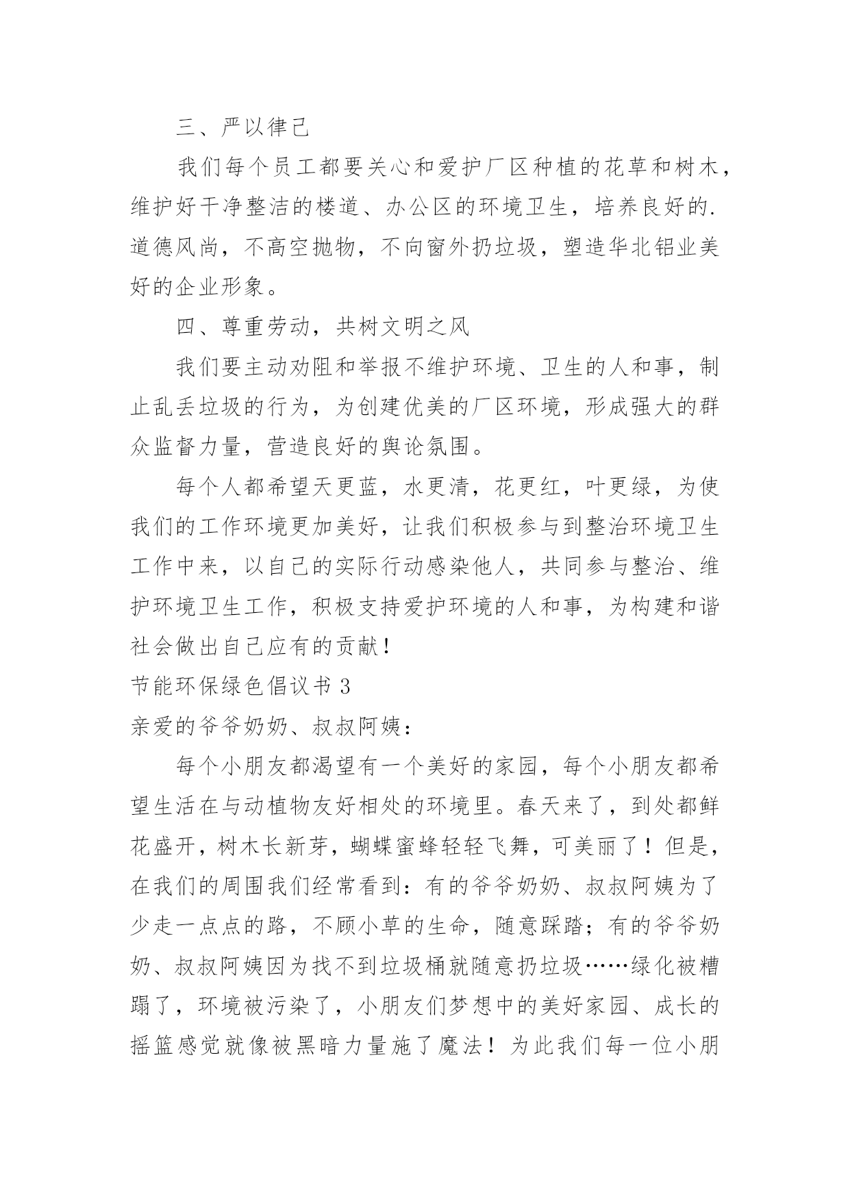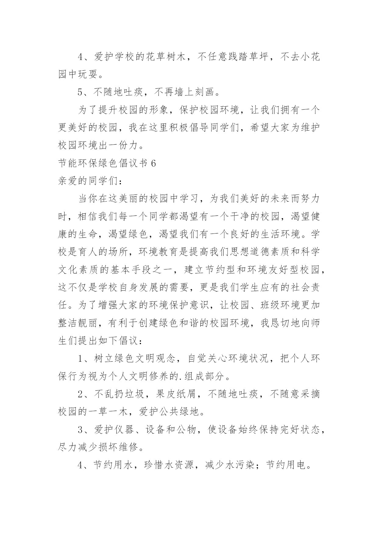 节能环保绿色倡议书节能环保绿色倡议书在不断进步的社会中,越来越多地方需要用到倡议书,不同的倡议书内容同样也是不同的。你所见过的倡议书是什么样的呢?以下是小编为大家整理的节能环保绿色倡议书,希望能够帮助到大家。节能环保绿色倡议书1亲爱的同学们:当你在干净的课桌上铺开一天的蓝图,是否想过是谁的汗水涂抹掉昨日的废纸?当你在缤纷的小路追逐清晨的阳光,是否想过是谁的扫把卷走昨日的垃圾?当你在洁白的餐桌享受丰盛的食物,是否留意清洁工阿姨默默擦走你的同伴遗留的废纸巾?当你在整洁的校车上往返于学院路而免受拥挤之苦,是否想过是谁一遍遍清理你随手丢弃的垃圾?近期,在我校出现学生在学生公寓楼道和洗手间乱丢垃圾,在自习室桌洞中乱丢垃圾,在食堂用餐后乱丢垃圾,在乘坐校车时乱丢垃圾的现象。学校是我们学习和生活的场所,作为一名大学生,营造文明洁净、宁静温馨的校园环境是我们应尽的义务,尊重他人的劳动成果是我们成长成才的必备素养,做好身边的点滴小事是塑造自身人格品格的关键。为了营造舒适和谐的`学习环境,尊重清洁工阿姨的劳动成果,减轻阿姨的工作负担,现提出如下倡议:1、不向楼道、街道乱丢垃圾。2、乘坐校车后、在食堂用餐后、自习结束后、在洗手间洗漱后随手带走废纸、纸巾等垃圾。3、以“珍惜我们的校园、尊重他人的劳动”的理念砥砺自我,时刻谨记:丢下的是一片垃圾,污染的是自己的心灵;带走的是一片纸屑,净化的是自己的精神。4、请同学相互监督,相互提醒,从一点一滴的小事做起,加强对乱扔垃圾等不文明行为的督促与制止。共建和谐校园,需要人人参与!希望同学们严格自律,共做环保卫士!节能环保绿色倡议书2公司全体同仁们:大家好!环境卫生是企业文明和社会进步的重要标志,营造优美的企业环境是我们共同的需求。当我们漫步或行走在花园式的厂区中时,一定会感到心旷神怡;当我们在整洁清净的环境中工作时,定会倍感心情舒畅。优美的环境,让我们懂得珍惜,学会爱护;优美的环境,让我们更加文明;优美的环境让我们学会谦让,学会做人。人人都渴望拥有一个美好的家园,人人都希望工作在人与自然和谐发展的优美环境里,爱护环境卫生,是我们每个人共同的义务和责任。企业环境卫生的好坏直接影响到员工们的工作、学习和生活,同时,企业环境卫生也是一个企业文明程度的重要标志,是企业对外形象好坏的直观影响因素。然而我们仔细观察,却发现看似整洁的厂区有诸多不尽如人意之处:办公楼一楼刚刚粉刷一新的墙壁不知是哪位“艺术家”,硬是往上面加了一脚;有些“物理爱好者”,喜欢用餐巾纸等做“自由落体”实验;主干路绿化区本无路,因为一小部分人走,“也便成了路”。如今,为了确保我公司“省级园林式单位”,公司上下进一步一步推进“5S”管理,我们发出如下倡议:一、统一思想,提高认识环境就是生产力,环境就是推动力,环境的好坏直接关系到我公司的对外形象。因此,做好环境卫生综合整治工作,非常有必要。作为公司的一分子,积极投身综合整治活动,是我们义不容辞的责任。我们必须积极响应公司领导的号召,积极参与,大力支持,全力以赴。二、从我做起,从小事做起树立爱护环境的意识,像爱护我们自己的小家一样爱护公司这个大家。建设整洁、大方的厂区,需要我们每一位员工的积极参与和共同努力,从身边的小事做起,从约束自己的行为做起,不随地吐痰,不随地乱扔果皮、纸。请您随手捡起地上的垃圾,爱护身边环境,互相监督,使爱护环境的意识深入人心,形成人人参与爱护环境,个个着力讲卫生的良好局面,促进卫生面貌的大改观。三、严以律己我们每个员工都要关心和爱护厂区种植的花草和树木,维护好干净整洁的楼道、办公区的环境卫生,培养良好的.道德风尚,不高空抛物,不向窗外扔垃圾,塑造华北铝业美好的企业形象。四、尊重劳动,共树文明之风我们要主动劝阻和举报不维护环境、卫生的人和事,制止乱丢垃圾的行为,为创建优美的厂区环境,形成强大的群众监督力量,营造良好的舆论氛围。每个人都希望天更蓝,水更清,花更红,叶更绿,为使我们的工作环境更加美好,让我们积极参与到整治环境卫生工作中来,以自己的实际行动感染他人,共同参与整治、维护环境卫生工作,积极支持爱护环境的人和事,为构建和谐社会做出自己应有的贡献!节能环保绿色倡议书3亲爱的爷爷奶奶、叔叔阿姨:每个小朋友都渴望有一个美好的家园,每个小朋友都希望生活在与动植物友好相处的环境里。春天来了,到处都鲜花盛开,树木长新芽,蝴蝶蜜蜂轻轻飞舞,可美丽了!但是,在我们的周围我们经常看到:有的爷爷奶奶、叔叔阿姨为了少走一点点的路,不顾小草的生命,随意踩踏;有的爷爷奶奶、叔叔阿姨因为找不到垃圾桶就随意扔垃圾……绿化被糟蹋了,环境被污染了,小朋友们梦想中的美好家园、成长的摇篮感觉就像被黑暗力量施了魔法!为此我们每一位小朋友向大家发出倡议:1.做一个文明的'人,不随地吐痰,不乱扔废弃物,保护绿色环境。2