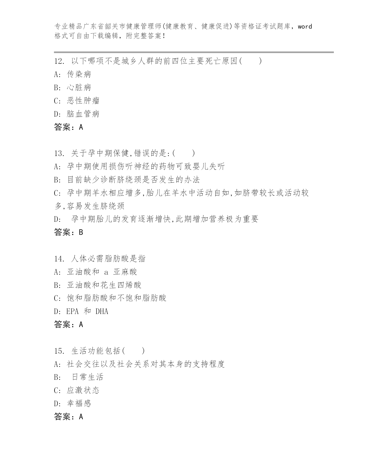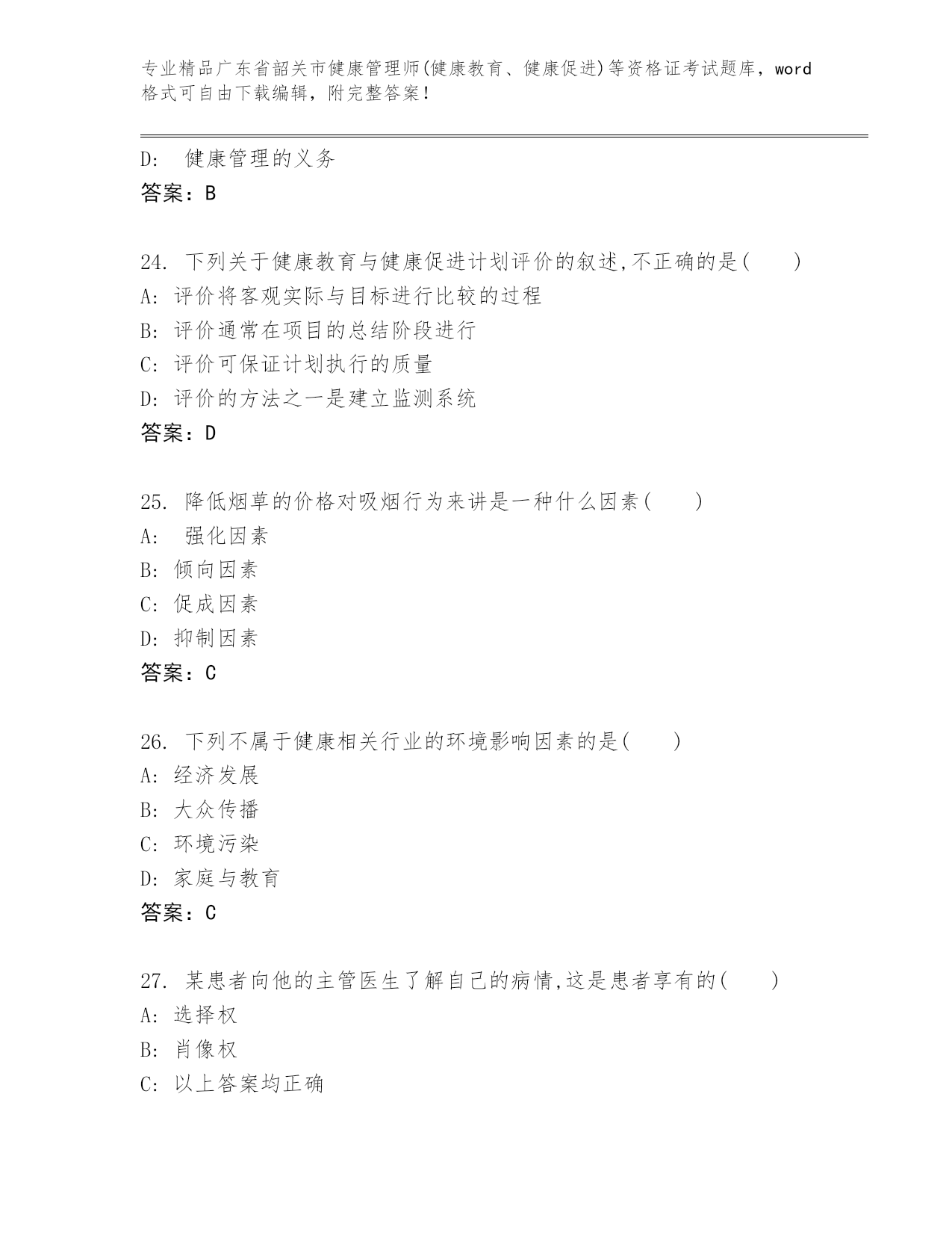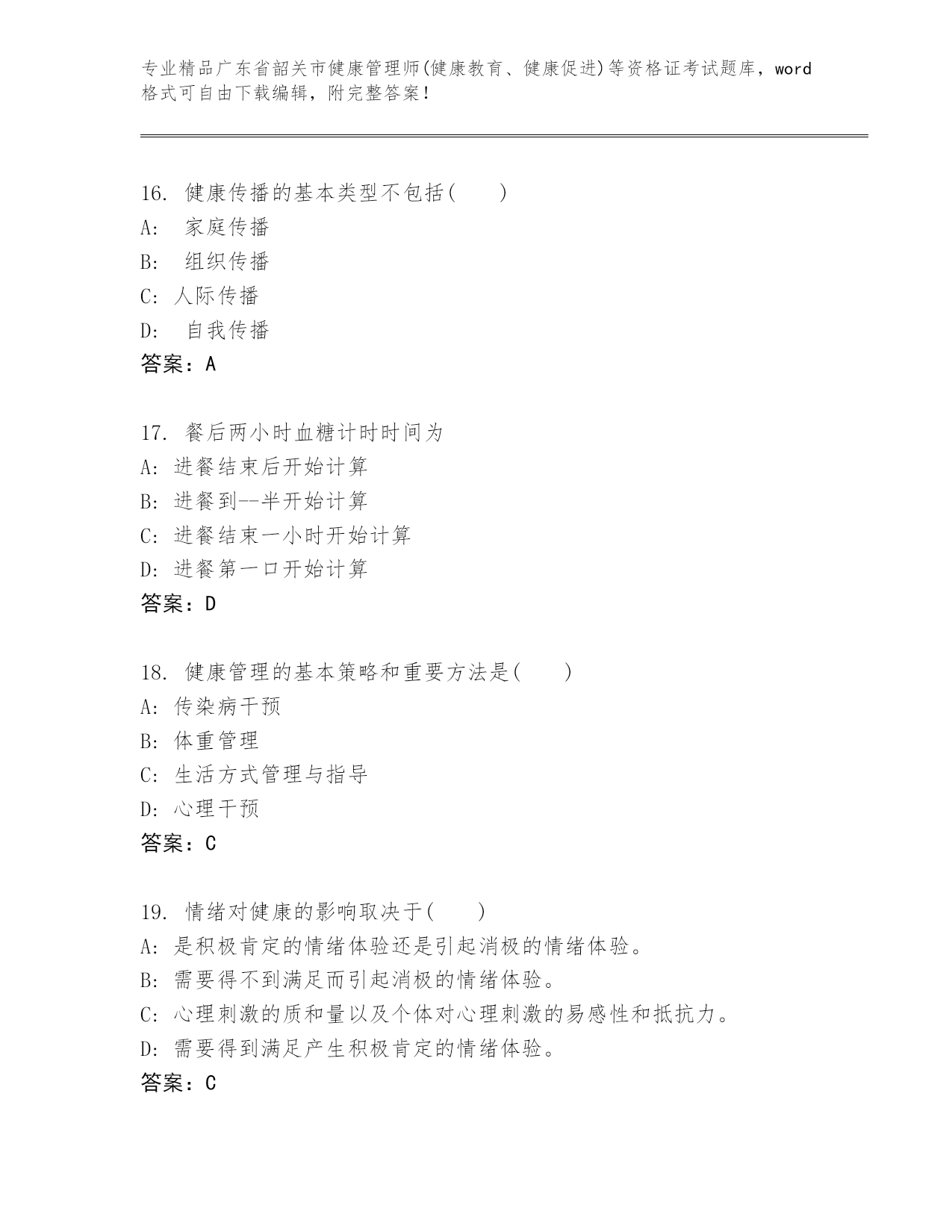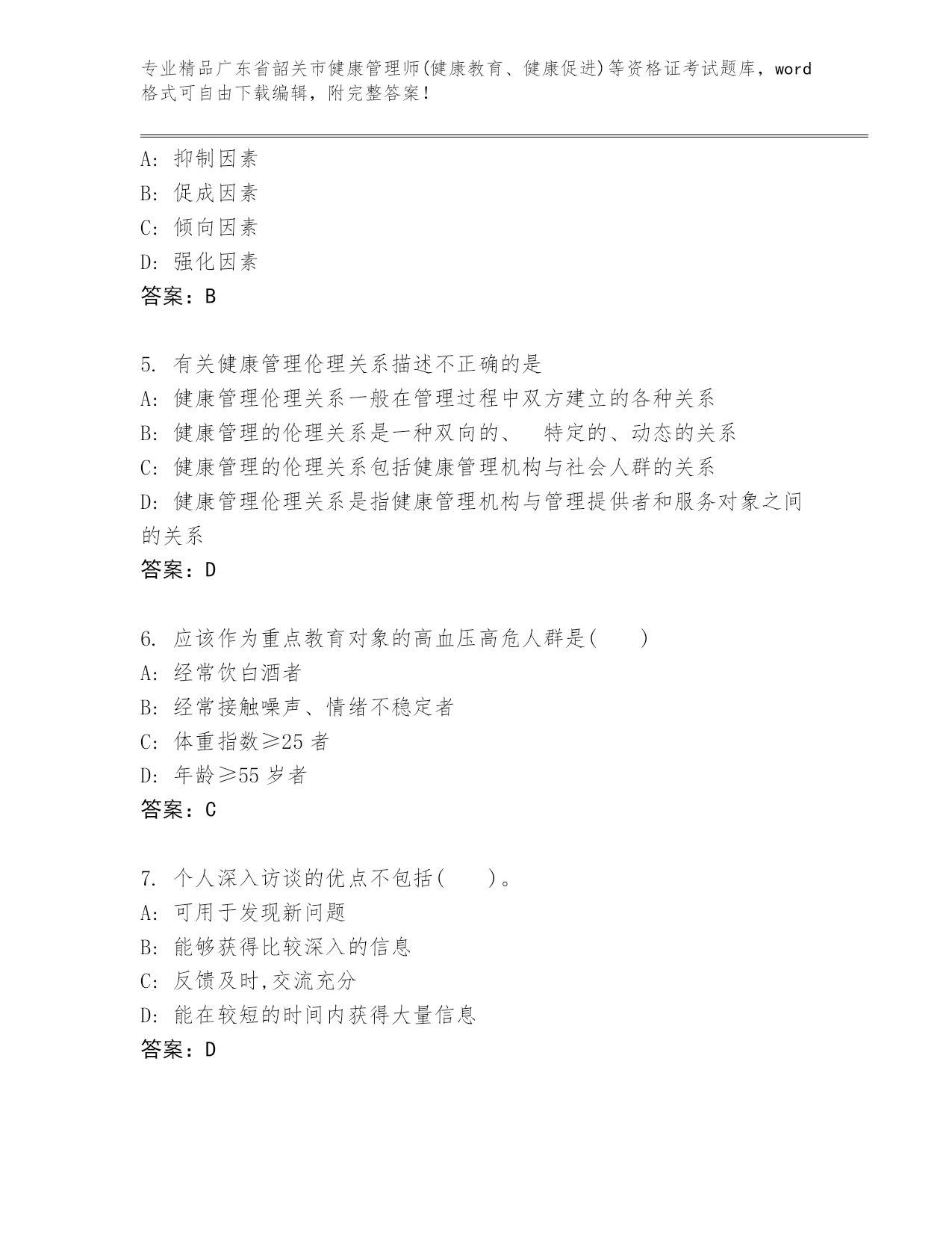 历年广东省韶关市健康管理师(健康教育、健康促进)等资格证考试完整版【全优】