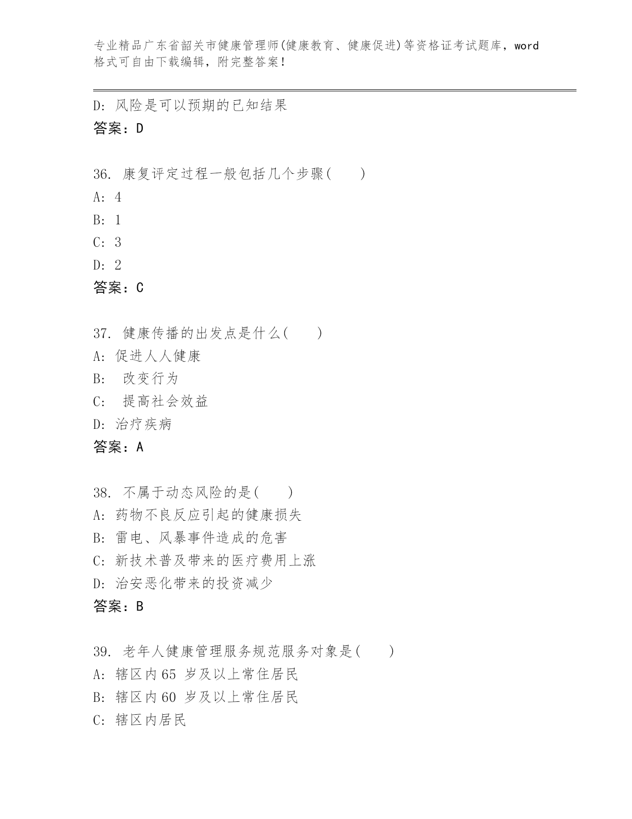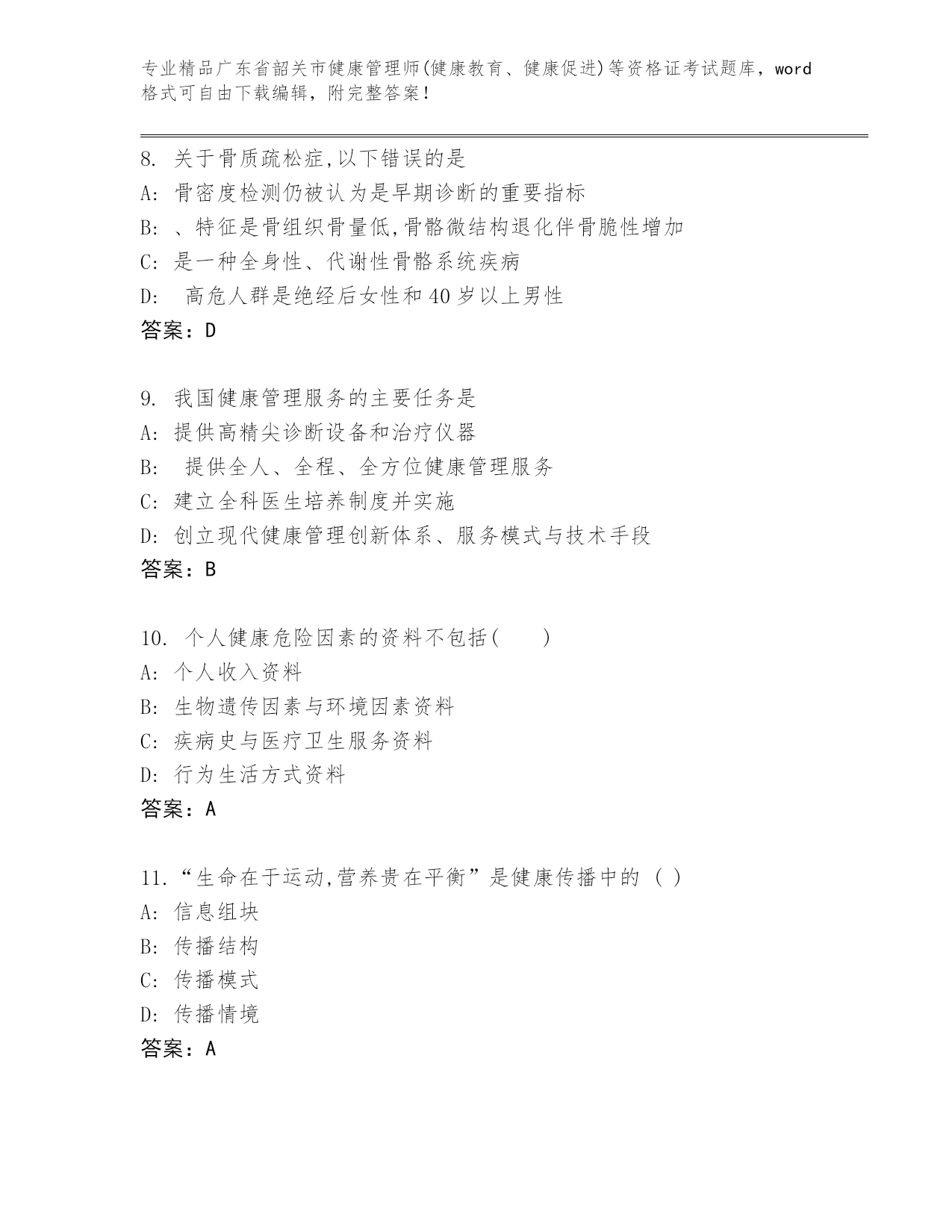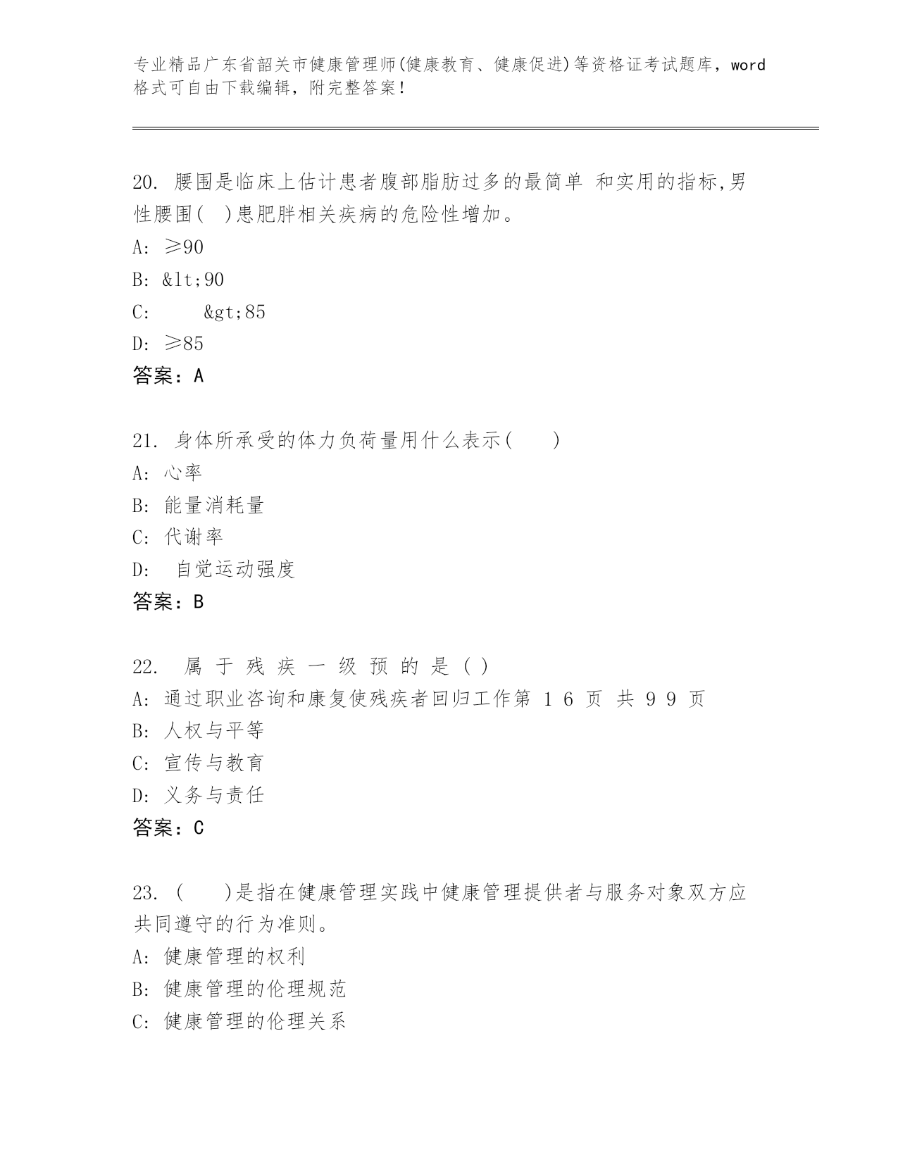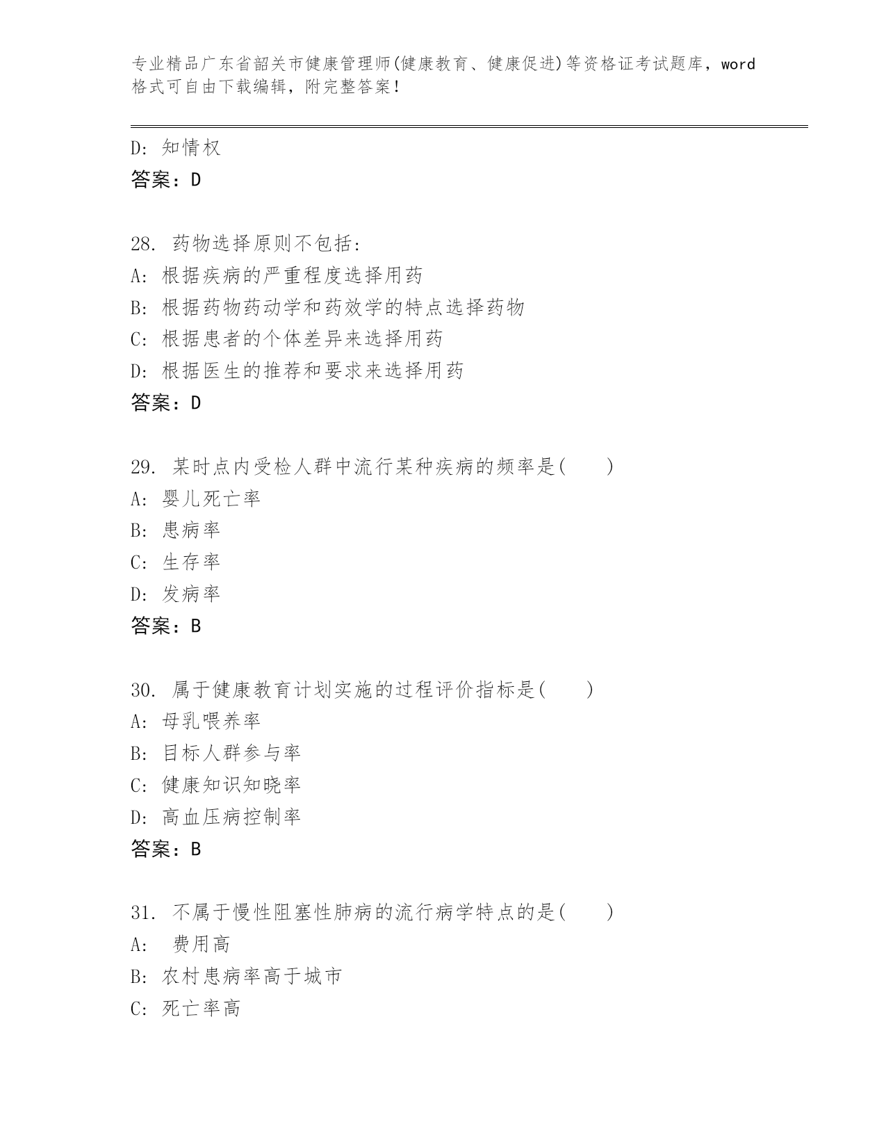历年广东省韶关市健康管理师(健康教育、健康促进)等资格证考试完整版【全优】