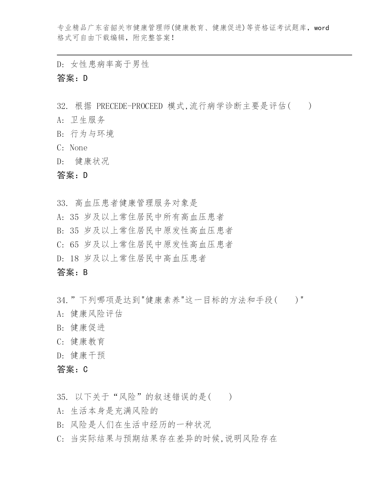 历年广东省韶关市健康管理师(健康教育、健康促进)等资格证考试完整版【全优】.docx