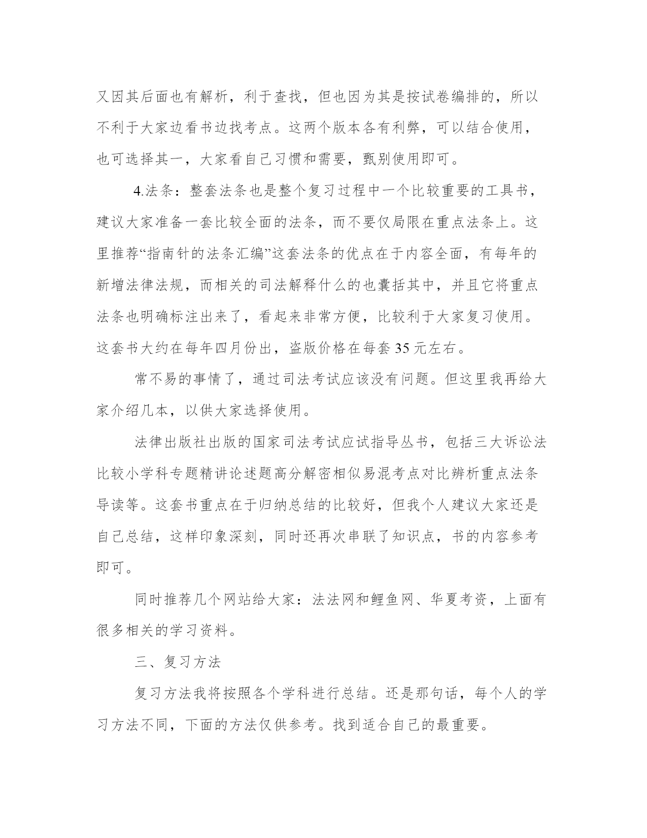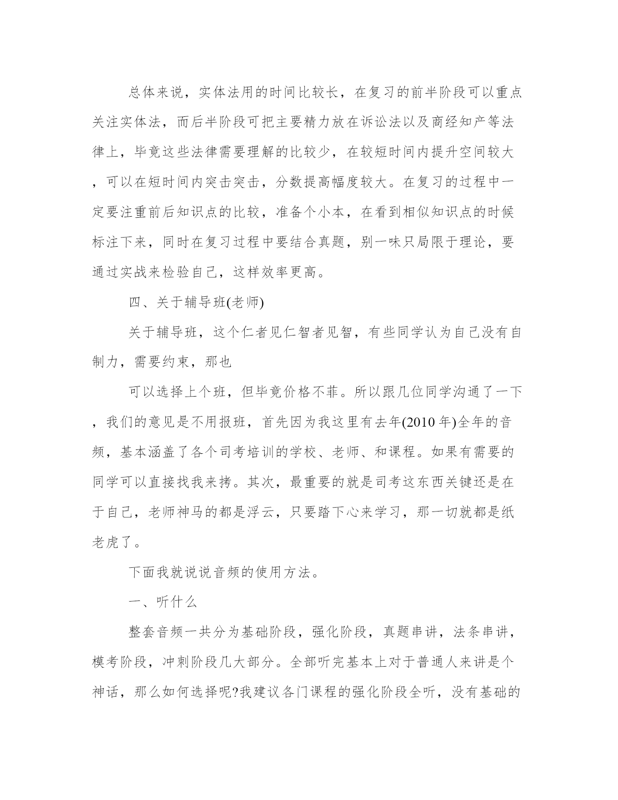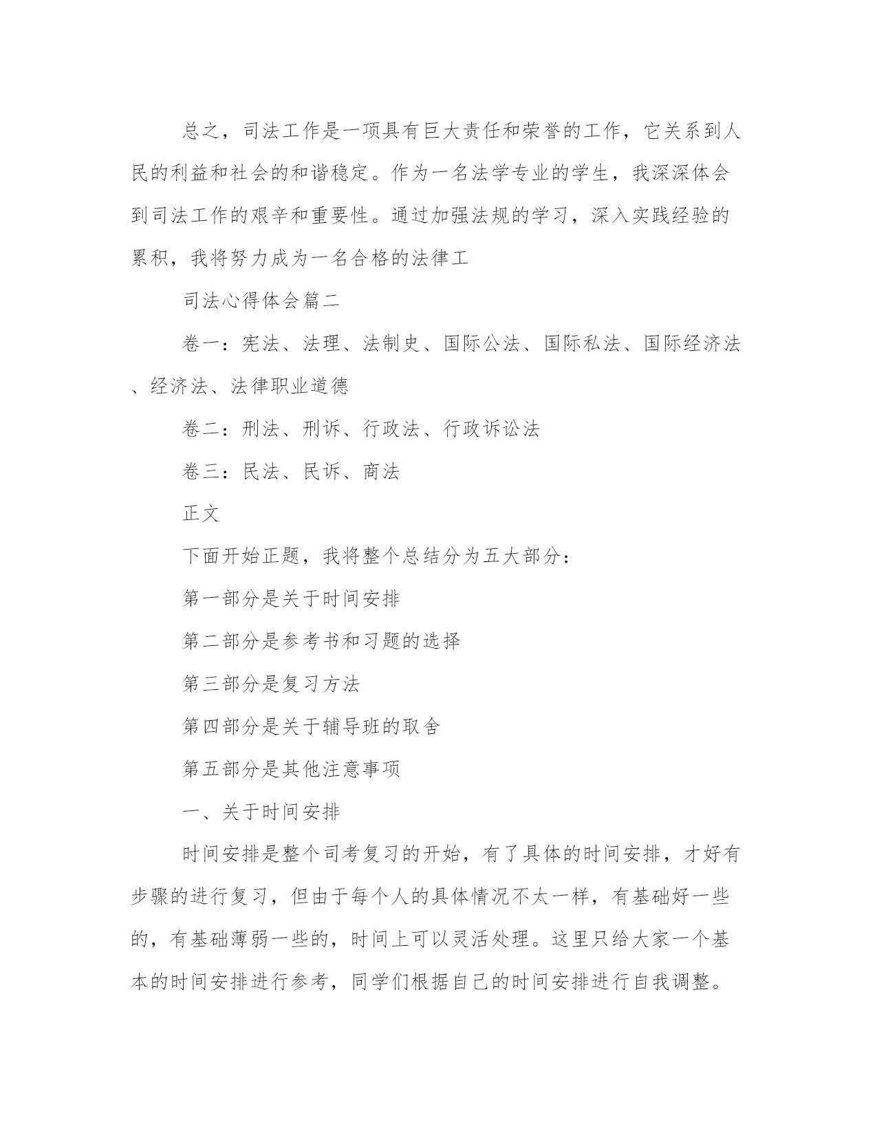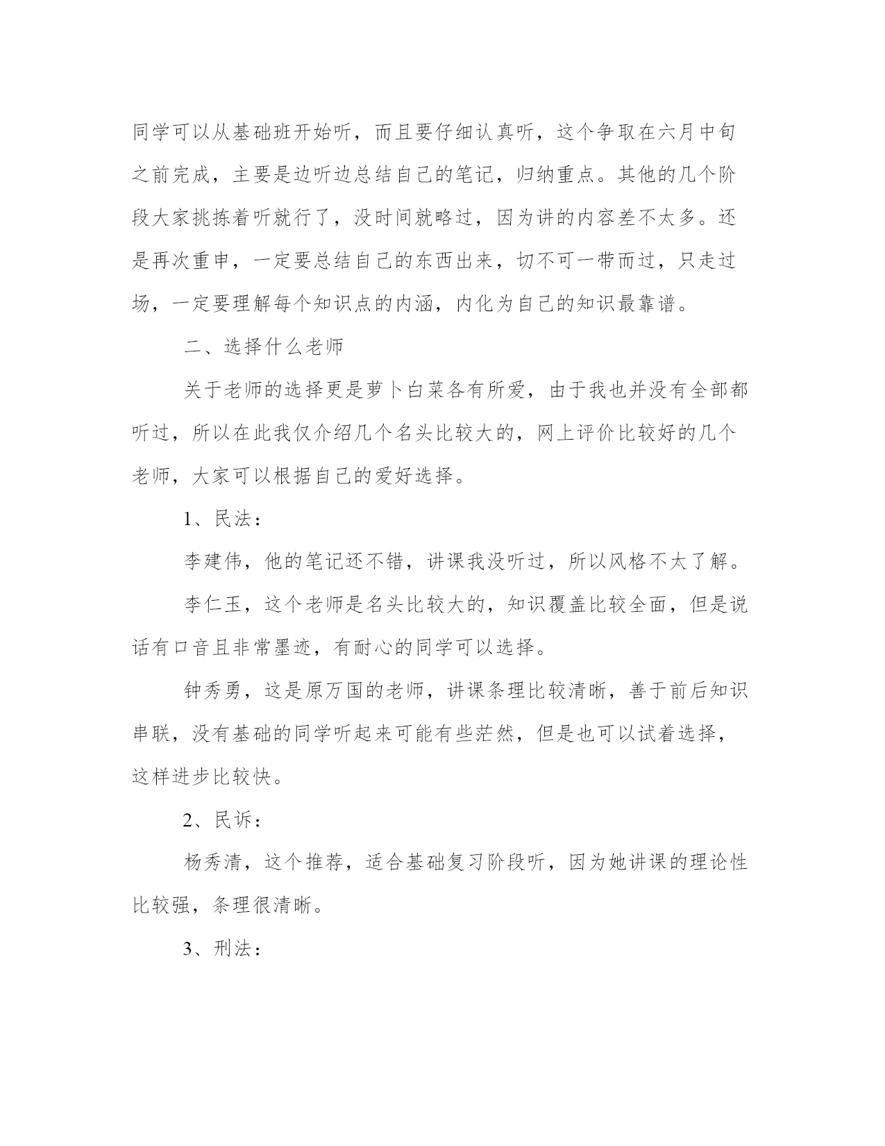 最新司法心得体会(通用9篇)心得体会对个人的成长和发展具有重要意义,可以帮助个人更好地理解和领悟所经历的事物,发现自身的不足和问题,提高实践能力和解决问题的能力,促进与他人的交流和分享。我们应该重视心得体会,将其作为一种宝贵的财富,不断积累和分享。下面是小编帮大家整理的心得体会范文大全,供大家参考借鉴,希望可以帮助到有需要的朋友。司法心得体会篇一司法是国家行使执法权力的重要部门,它对于社会的正常运行和人民的安宁起着至关重要的作用。长期以来,我作为一名法学专业的学生,通过课堂学习和实践经验,对司法工作有了深刻的了解和体会。下面从犯罪与刑罚、法官职责、证据和辩护、公平与公正、司法改革五个方面,阐述我在司法工作中的心得体会。首先是犯罪与刑罚。司法的首要任务是惩罚犯罪行为,维护社会的法律尊严和秩序。在刑罚方面,司法必须坚守公平和合理原则,不能过分放纵或过度惩罚,要依法审理每一个案件,确保每个被告人都能获得公正的判决。作为司法工其次是法官职责。法官是司法工作中最重要的角色,他们要根据法律规定和事实依据,公正地裁判案件。在审理案件过程中,法官要耐心听取双方当事人的陈述和证据,认真分析案情,全面评估证据的真实性和可信度。同时,法官还要注重法理和公平精神的统一,法理是法官的工作基础,而公平精神则是司法公正的灵魂。法官的判决应当既符合法律规定,又符合社会公众的正义感。第三是证据和辩护。证据是决定案件胜负的重要因素,同时也是司法公正的关键保障。法庭审理过程中,双方当事人要提供清晰、充分、可信的证据。而作为法官,我们要对证据进行审查和权衡,判断其真伪和可靠性。通过对证据的审查,能够辨别出有关当事人的真正意图,确保判决的准确性和公正性。另外,辩护也是司法工作中不可忽视的一环。无论是被告人还是原告人,都有权利进行辩护。作为法官,我们要尊重被告人的辩护权利,并判断其辩护理由的合理性与成立性。第四是公平与公正。公平与公正是司法工作的核心原则,它体现了法治精神和司法公正,也是司法公信力的重要标志。司法工作必须以公平和公正为宗旨,平等对待每一个案件,不分种族、性别、地区和社会地位。法官应当以最高尺度对待每一个案件,做到公正无私,不受任何外界因素的影响。而作为法律工最后是司法改革。司法改革是司法工作不断向前发展的必要条件,它可以促进司法公正和司法效率的提高。司法改革需要不断完善相关法律法规,加强对司法工作的监督和评估,并加强司法人员的培训。司法工作的公正和廉洁是司法改革的重要目标,要严惩腐败行为,提高司法工作的透明度和公信力。总之,司法工作是一项具有巨大责任和荣誉的工作,它关系到人民的利益和社会的和谐稳定。作为一名法学专业的学生,我深深体会到司法工作的艰辛和重要性。通过加强法规的学习,深入实践经验的累积,我将努力成为一名合格的法律工司法心得体会篇二卷一:宪法、法理、法制史、国际公法、国际私法、国际经济法、经济法、法律职业道德卷二:刑法、刑诉、行政法、行政诉讼法卷三:民法、民诉、商法正文下面开始正题,我将整个总结分为五大部分:第一部分是关于时间安排第二部分是参考书和习题的选择第三部分是复习方法第四部分是关于辅导班的取舍第五部分是其他注意事项一、关于时间安排时间安排是整个司考复习的开始,有了具体的时间安排,才好有步骤的进行复习,但由于每个人的具体情况不太一样,有基础好一些的,有基础薄弱一些的,时间上可以灵活处理。这里只给大家一个基本的时间安排进行参考,同学们根据自己的时间安排进行自我调整。总体原则是:不宜把战线拉的过长,重要的是在相对时间内效率要高。前紧后松,制定自己的学习计划。(题外话:司考这个东西总有些偶然性,确实也有看个两三个星期就能考过的,但毕竟还是少数,而且也许是人家底子好,所以在复习的开始还是不要抱有太多的侥幸心理,脚踏实地还是更靠谱些,等积攒一定实力再祈祷人品爆发也不晚,是不?)(一).总体安排.:从3月份开始一直到9月份(这个时间灵活掌握,人家一天看15个小时的,和一天看6个小时的总归是不一样,时间长短并不重要,重要的是能否高投入高产出)3月——5月,这两个月是基础复习的阶段。即大家要把司法考试的整体内容有大致的了解,至少头脑中要有基本框架,在提到每一个相关法律的时候,能够大致说出其中的内容方向即可。慢慢调整自己,开始进入复习状态。(关键词:了解)5月——7月,这两个月是强化阶段。有基础的同学从5月过后开始复习就足够了,这个阶段的主要工作就是总结,细化知识体系,要整理出自己的笔记,笔记的内容越详细,知识点越细化越好,争取全面覆盖,不落下一个小点,毕竟司考很多内容是非常细的。在总结完笔记后要进行前后知识点的比较,最好能够进行小专题的总结。同时,这个阶段可以配合着做些真题,勾画出自己的重点,难点。这