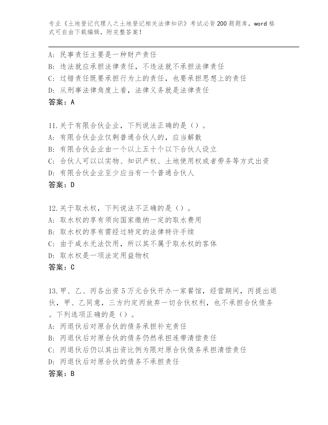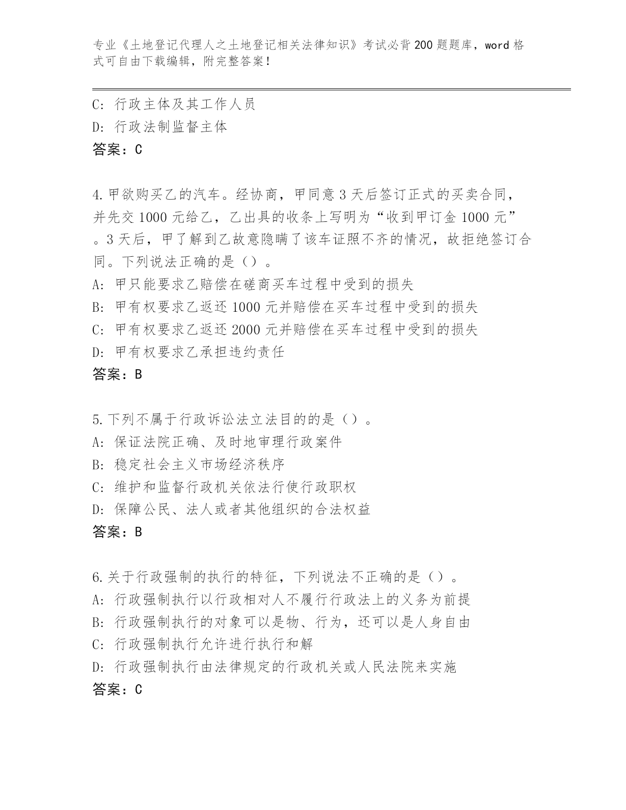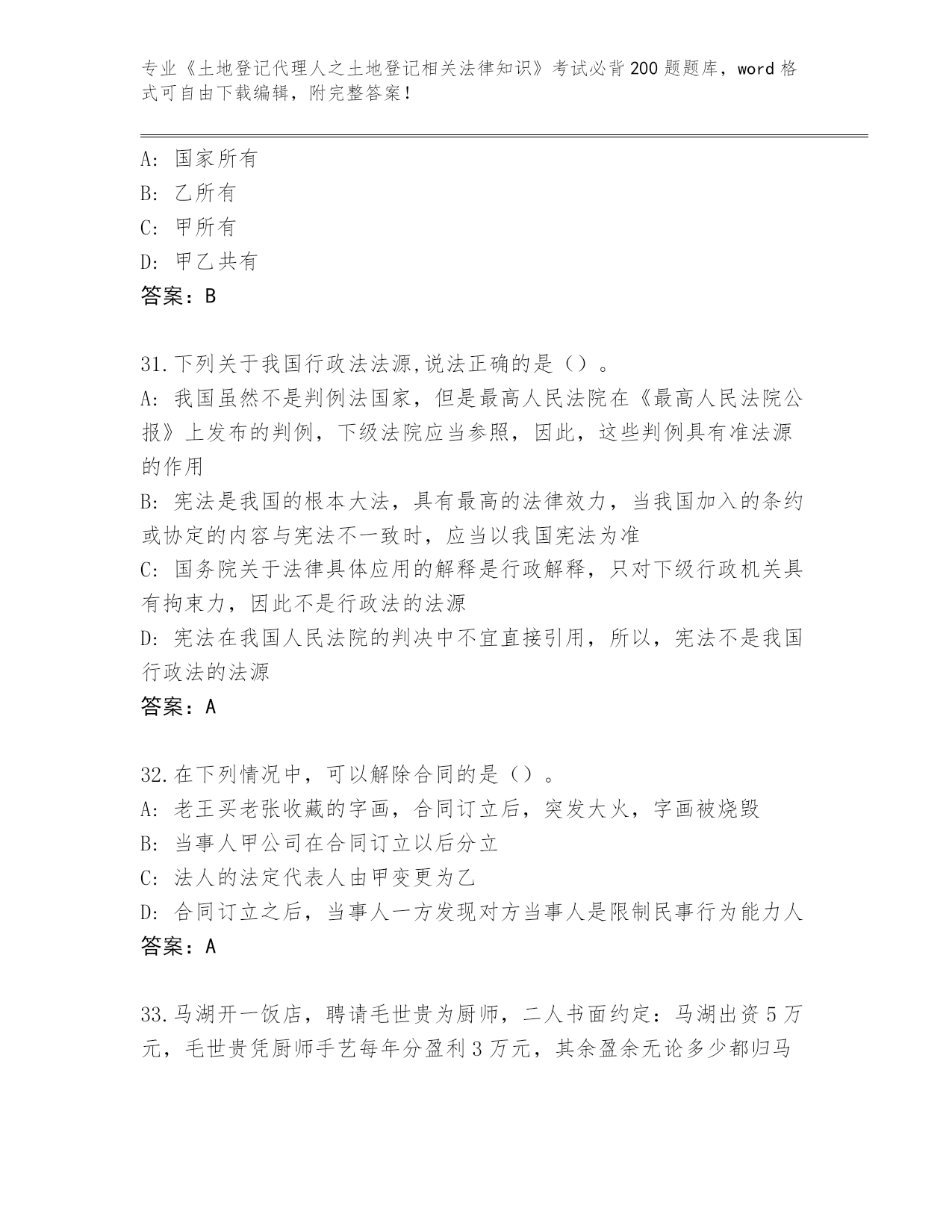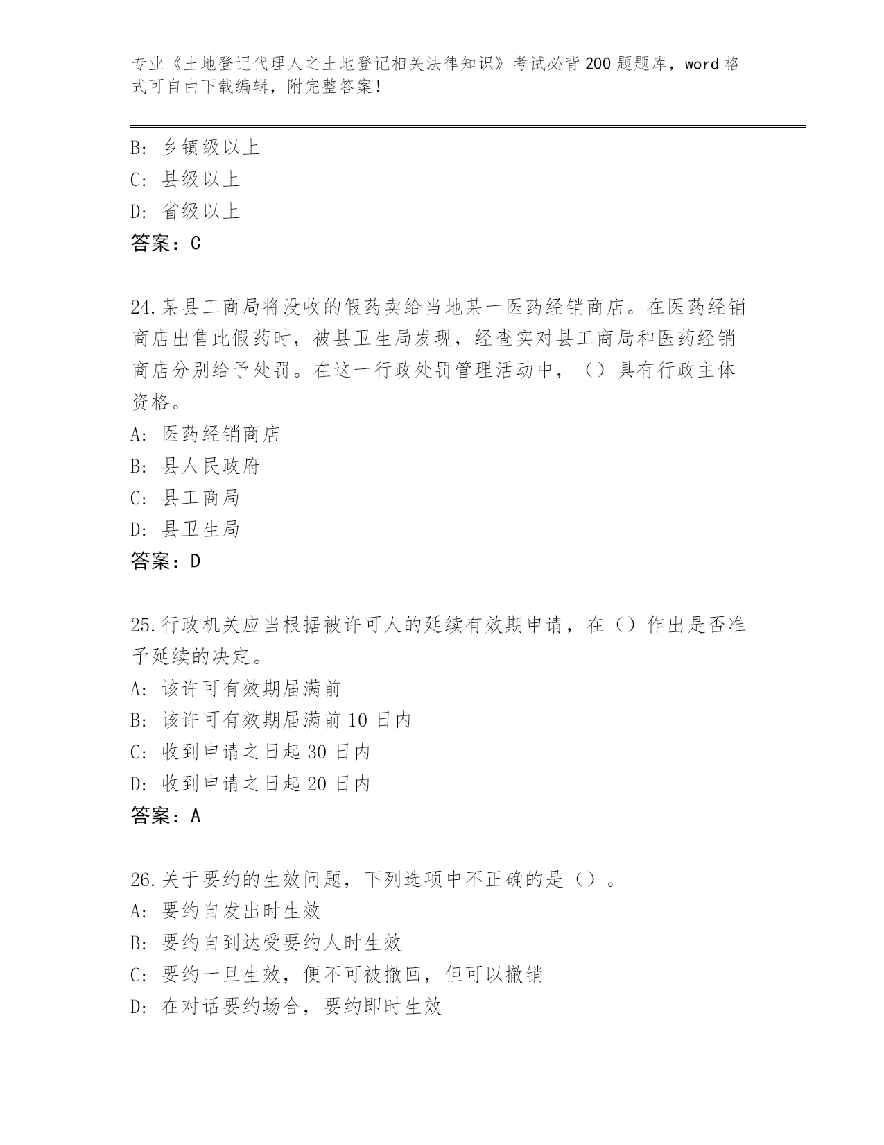 2024黑龙江省泰来县《土地登记代理人之土地登记相关法律知识》资格考试必刷200题真题(网校专用)