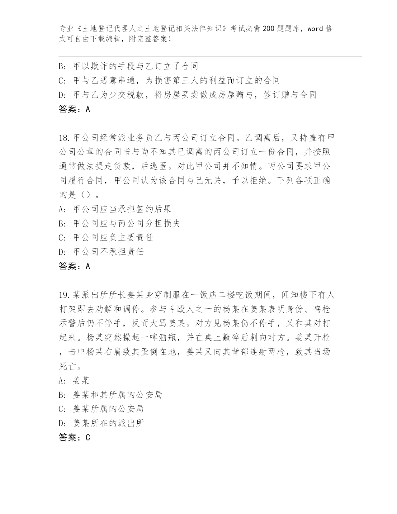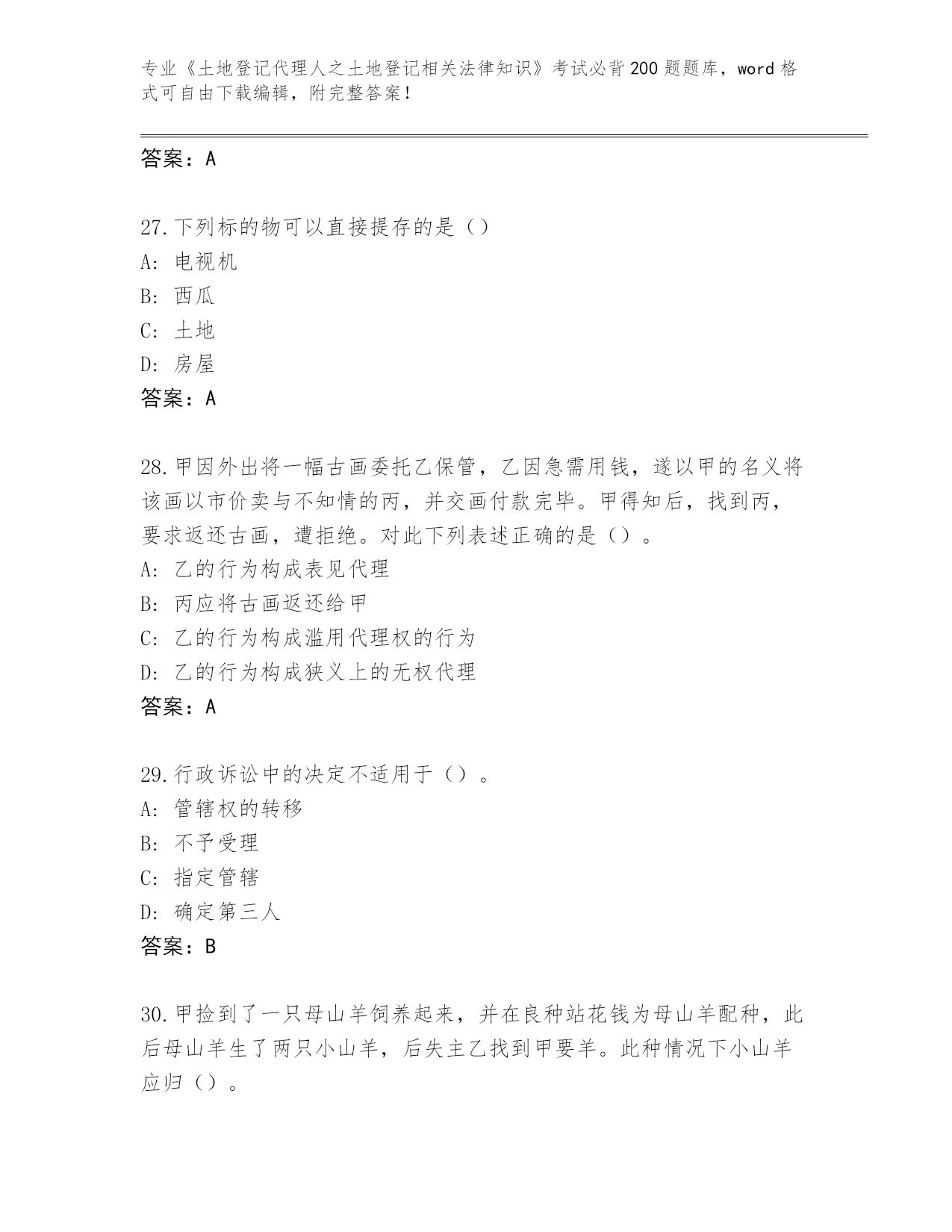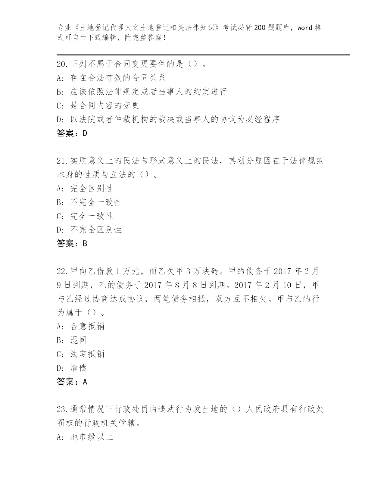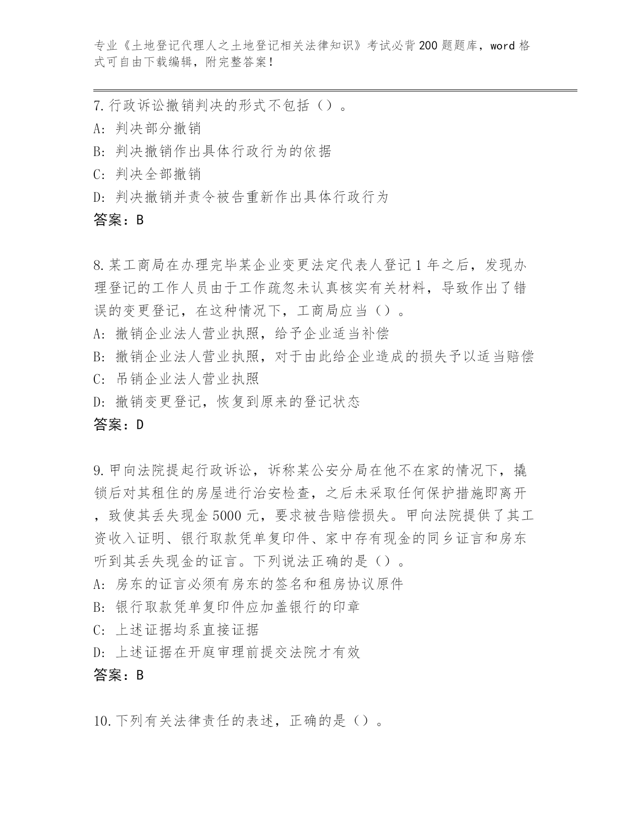 陕西省商州区2024年《土地登记代理人之土地登记相关法律知识》考试必背200题题库及答案(真题汇编)