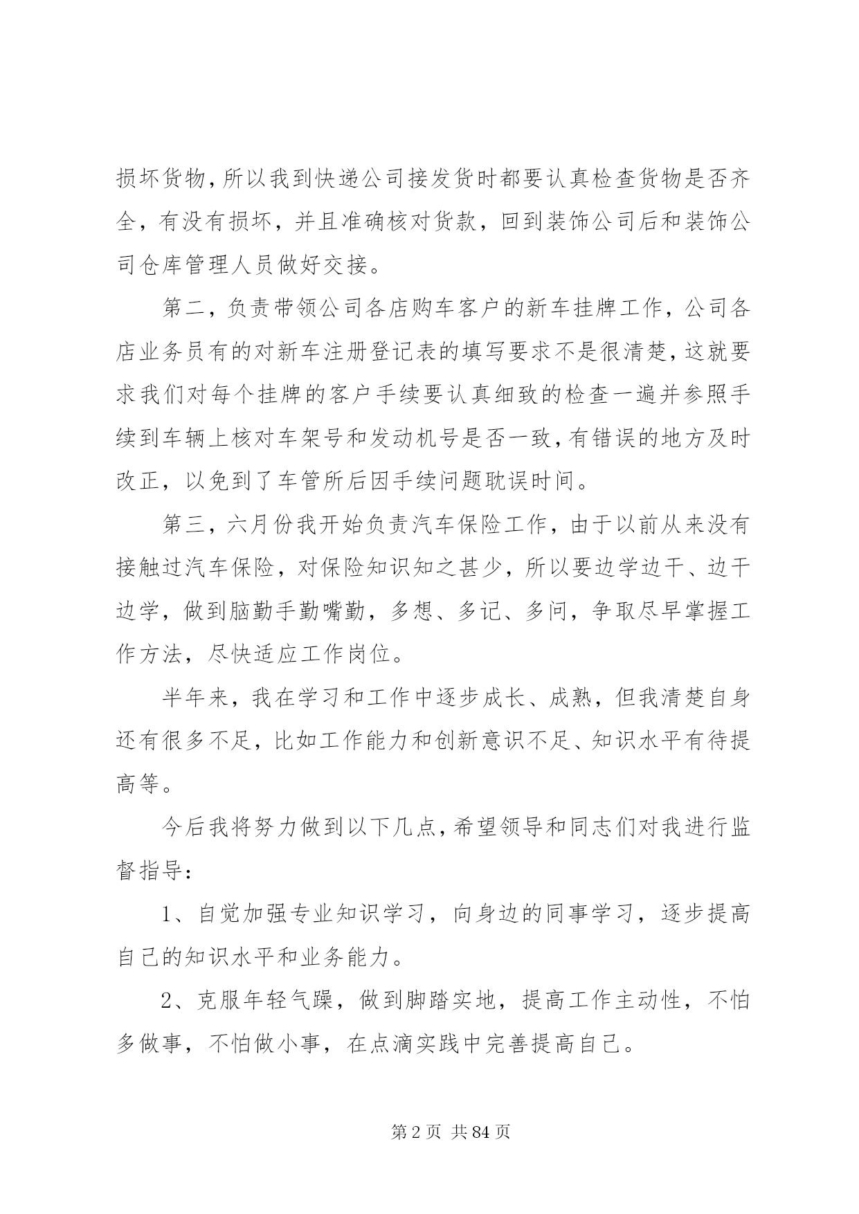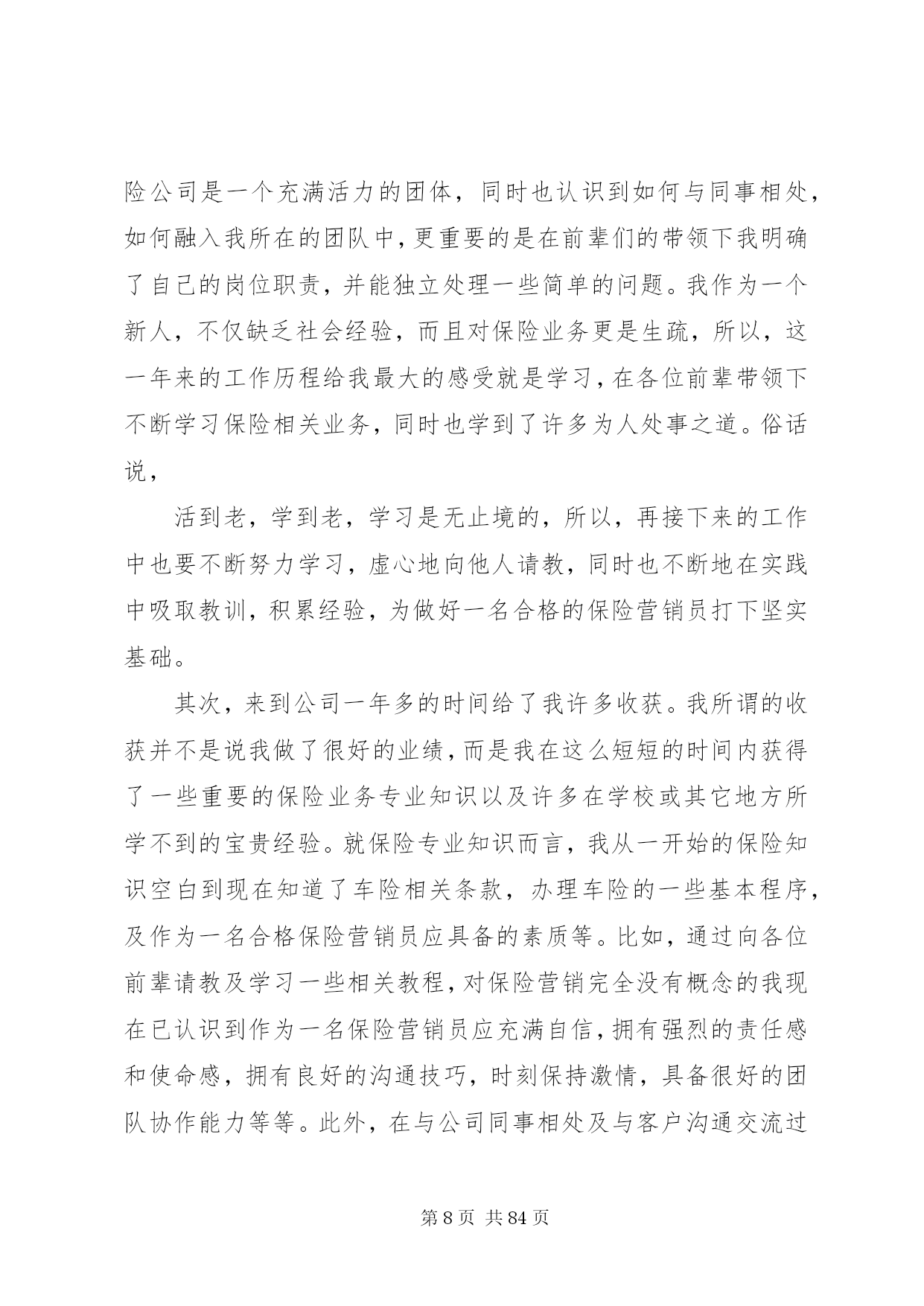 第PAGE\*Arabic\*MERGEFORMAT84页共NUMPAGES\*MERGEFORMAT84页保险人员述职报告转眼我到公司工作已接近半年了。在这不到半年的时间里是我人生旅途中的重要一程,期间在领导的培养帮助、同志们的关心支持下我逐步适应了工作环境,较为圆满地完成了自己所承担的各项工作,个人素质和业务工作能力都取得了一定的进步,为今后的工作和学习打下了良好的基础,静心回顾这半年的工作生活,收获颇丰。现将我这半年来的学习工作情况总结如下:一、加强学习,提高素质.首先,认真学习了企业管理细则,并严格要求自己,自觉遵守,进一步强化自己的责任意识和团体意识,其次,在业务学习方面,我虚心向身边的同事请教,通过多看多听多想多问多做,努力使自己在尽短的时间内熟悉工作环境和内容,积累自己的业务知识。此外,根据公司安排参加了新员工入职培训。在培训中,通过戴经理和王经理教育,对公司的发展历程、和企业文化有了更深的了解,为我更好的投入工作打下了良好基础。二、踏实肯干,完成工作.在公司工作的半年中,通过领导和同事们的耐心指导,我在熟悉的基础上基本能完成办公室的各项日常工作,期间我具体工作主要包括以下几个方面:第一,负责装饰公司的接发货,装饰公司的货物有不少是易损坏货物,所以我到快递公司接发货时都要认真检查货物是否齐全,有没有损坏,并且准确核对货款,回到装饰公司后和装饰公司仓库管理人员做好交接。第二,负责带领公司各店购车客户的新车挂牌工作,公司各店业务员有的对新车注册登记表的填写要求不是很清楚,这就要求我们对每个挂牌的客户手续要认真细致的检查一遍并参照手续到车辆上核对车架号和发动机号是否一致,有错误的地方及时改正,以免到了车管所后因手续问题耽误时间。第三,六月份我开始负责汽车保险工作,由于以前从来没有接触过汽车保险,对保险知识知之甚少,所以要边学边干、边干边学,做到脑勤手勤嘴勤,多想、多记、多问,争取尽早掌握工作方法,尽快适应工作岗位。半年来,我在学习和工作中逐步成长、成熟,但我清楚自身还有很多不足,比如工作能力和创新意识不足、知识水平有待提高等。今后我将努力做到以下几点,希望领导和同志们对我进行监督指导:1、自觉加强专业知识学习,向身边的同事学习,逐步提高自己的知识水平和业务能力。2、克服年轻气躁,做到脚踏实地,提高工作主动性,不怕多做事,不怕做小事,在点滴实践中完善提高自己。3、继续提高自身治修养,强化服务意识,努力做好自己的本职工作,为公司的辉煌的明天贡献自己的一份力量。保险人员述职报告大家好。非常感谢领导给我这次表现自己,和大家一起交流、学习的机会,我是xx年7月份进入我们公司保险这行业工作的,之前我一直都是自己开厂搞汽车修理厂的,受公司领导重视,我有幸被聘用并担任公司车险核价岗的工作,这一年多来我经手处理过多起重大案件以及推定全损一次性定损案件,并且对汽车零配件的市场价格及4s店价格的浮动及时了解、及时反馈。下面我把这一年来的工作情况简单汇报如下,如有不妥之处,还请大家谅解,同时多多指导,我一定努力改正,争取更大的进步,谢谢大家。一、努力学习,不断提高自己的政治理论知识和工作思想做保险这一年来,在公司领导的指导下,我认真学习“三个代表”重要思想,以邓小平理论知识和党的“十七大”精神为指导方针,紧紧围绕“立足改革、加快发展、真诚服务、提高效益”这一中心,进一步转变观念、改革创新,把其思想认真贯彻和落实到工作中去,不断提高认识,培养自己政治敏感力和廉政意识,结合自己分管的车险工作制定了客户拜访、调查、收集信息等工作计划,严格要求自己,带头遵守保险的各项规章制度,忠于职守、爱岗敬业、处事公道、团结同志、待人诚实。注意用科学的方法指导自己的工作,规范自己的言行,树立强烈的责任感和事业心,不断提高自己的业务水平和管理能力。面对竞争日趋激烈的湖南保险市场,强化核心竞争力,开展多元化工作方式,经过努力和拼搏,为天安保险XX省分公司的持续发展,做出了应有的贡献。二、不断加强自身的业务水平和技巧,不断倡导行业作风在领导的正确领导下,本人不断加强本岗位工作的学习,从思想、管理、业务等多方面进行全方位的学习,不断提高自身的素质和能力,为更好的适应工作要求。首先我认真遵守企业的规章制度,在民主生活会议上,积极做自我批评、自我检讨,深入部门学习,取长补短,接受广大干部职员的监督与指导,坚守本岗位的职责。由于保险市场竞争日益激烈和复杂化,我深知责任重大,我除了积极参加公司组织的各种培训课程,还利用大量的业余时间学习专业理论知识、法律法规、营销边缘理论及金融专业知识,认真对自己客户进行详细分析,将计划,总结、考核分析纳入工作中,同时积极加大宣传保险对社会的作用。三、近年社会及保险事业的发展随着我国经济的快速发展和人民生活水平的不断提高