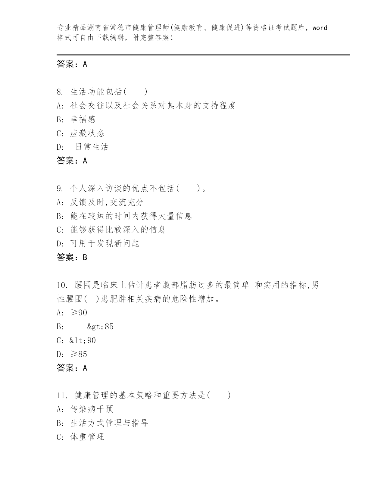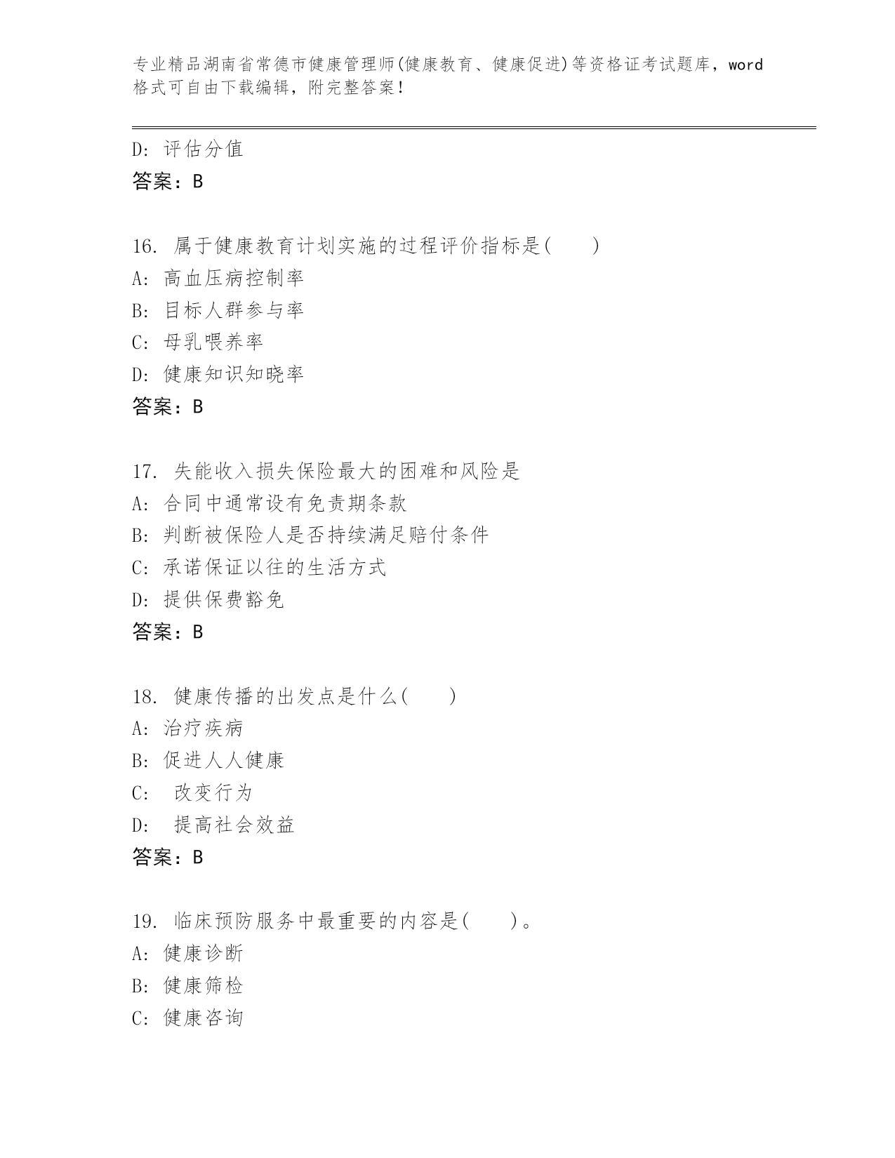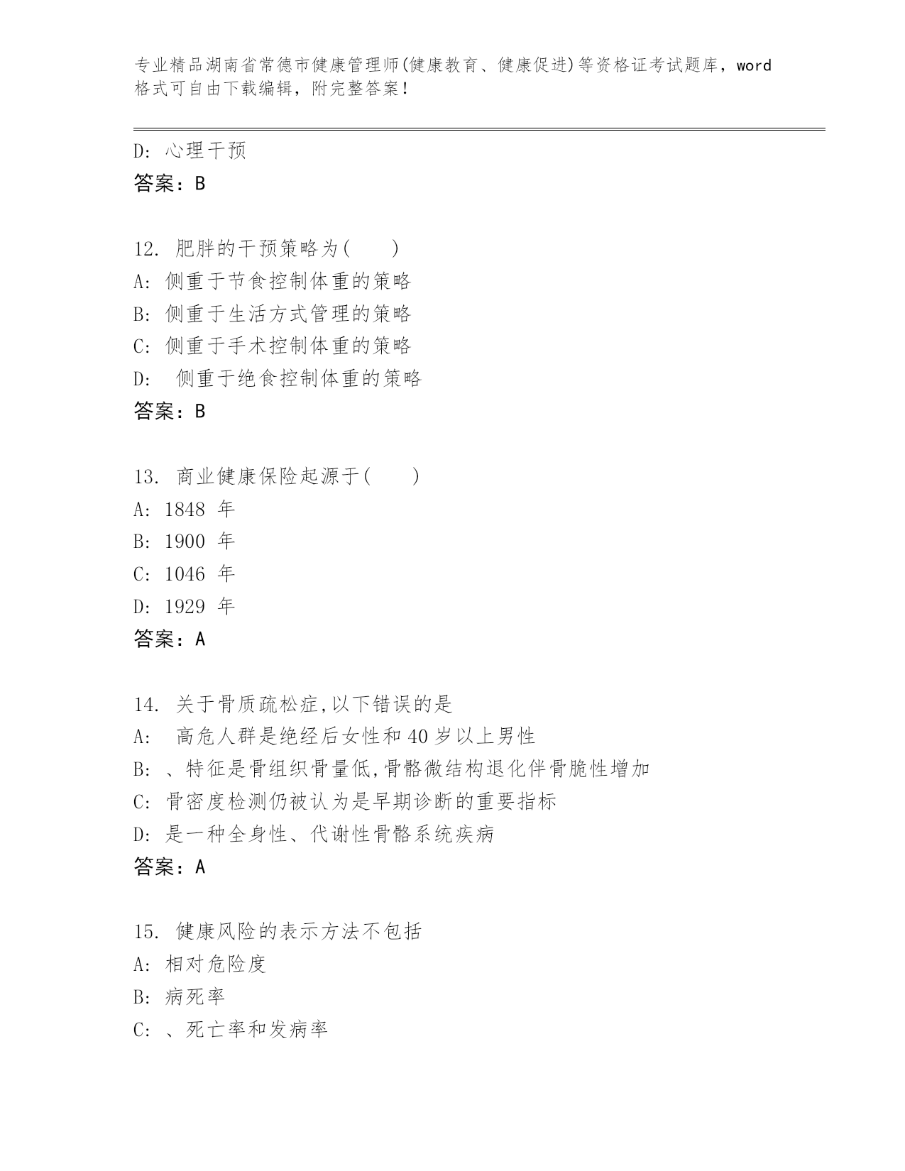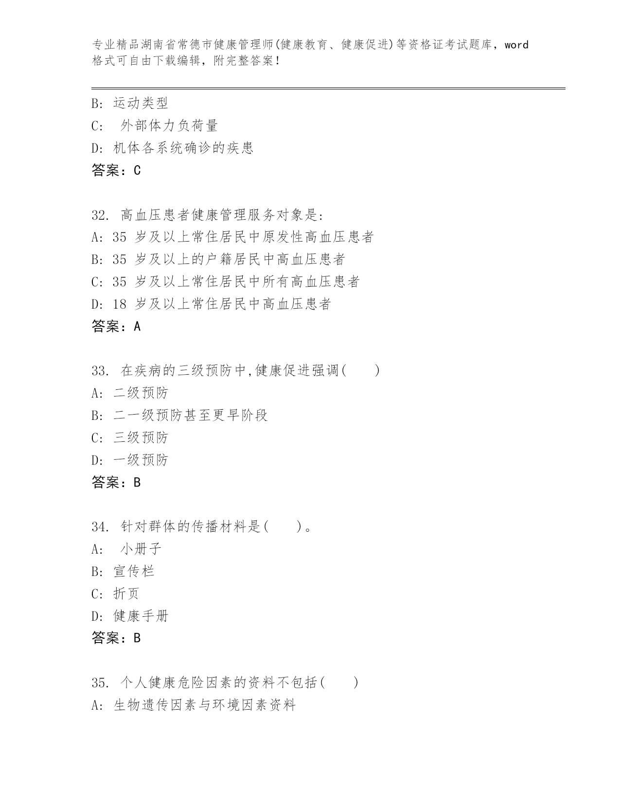 完整版湖南省常德市健康管理师(健康教育、健康促进)等资格证考试大全【精品】