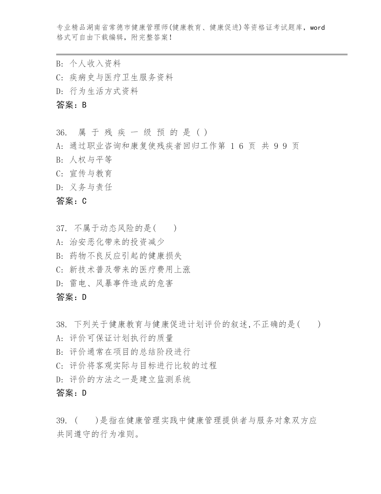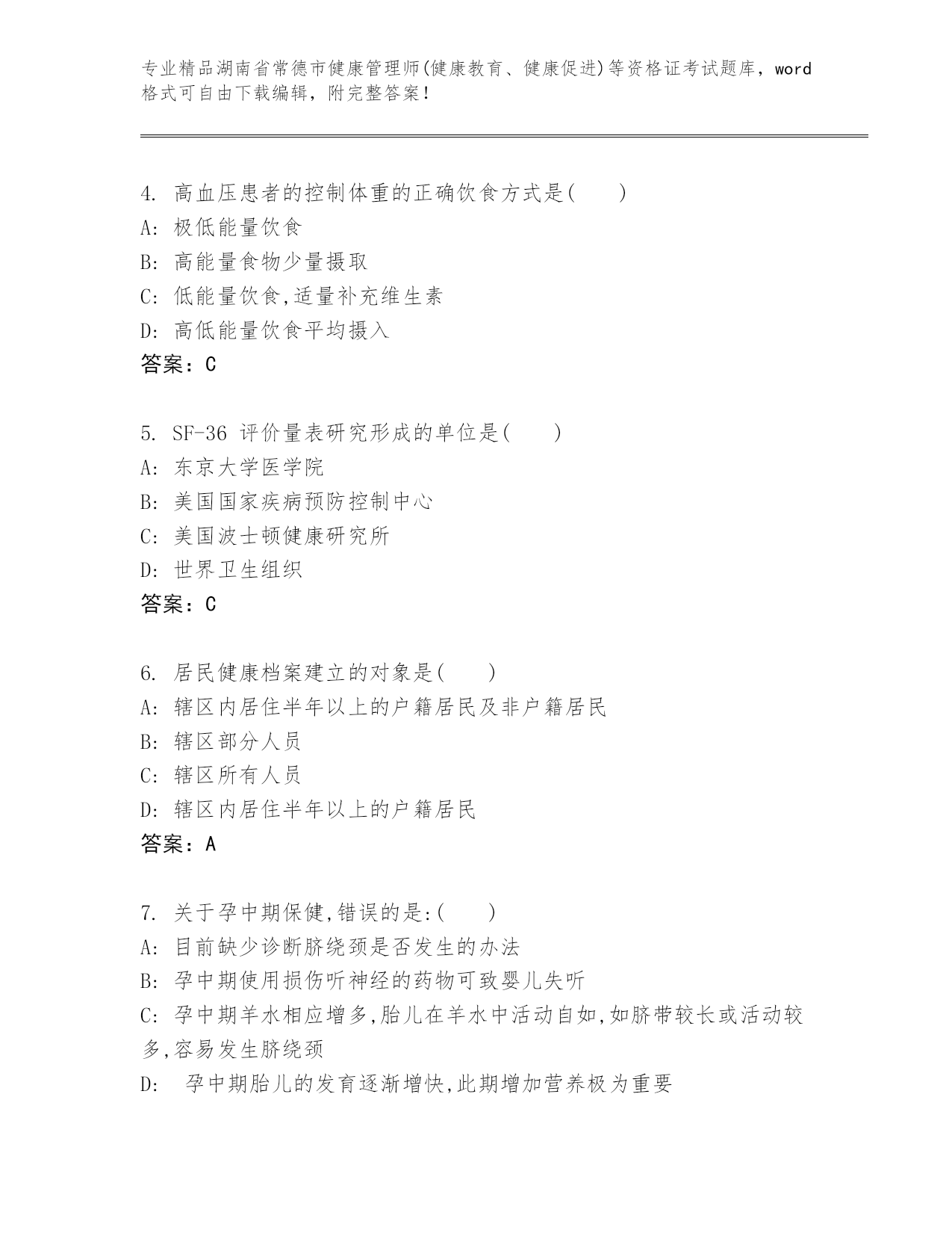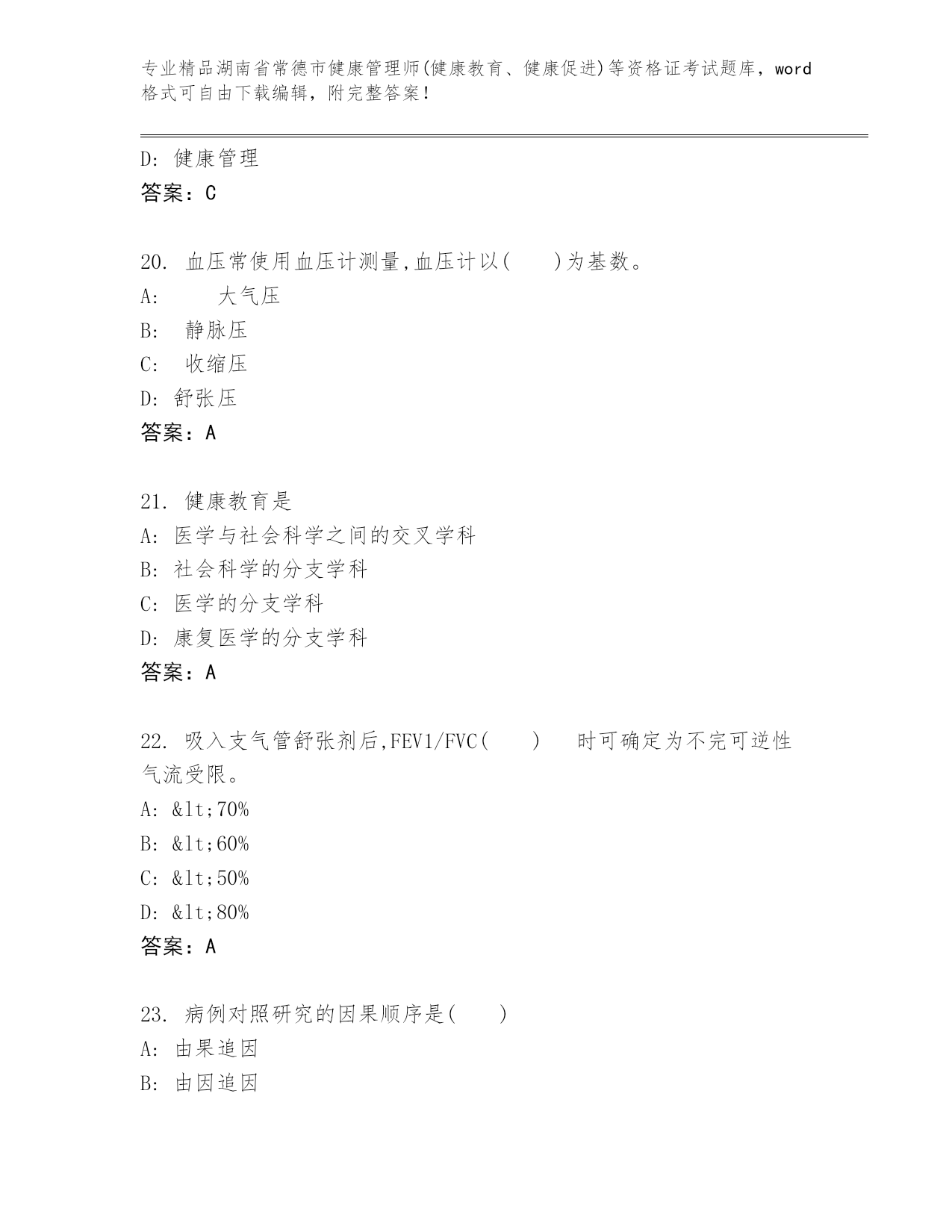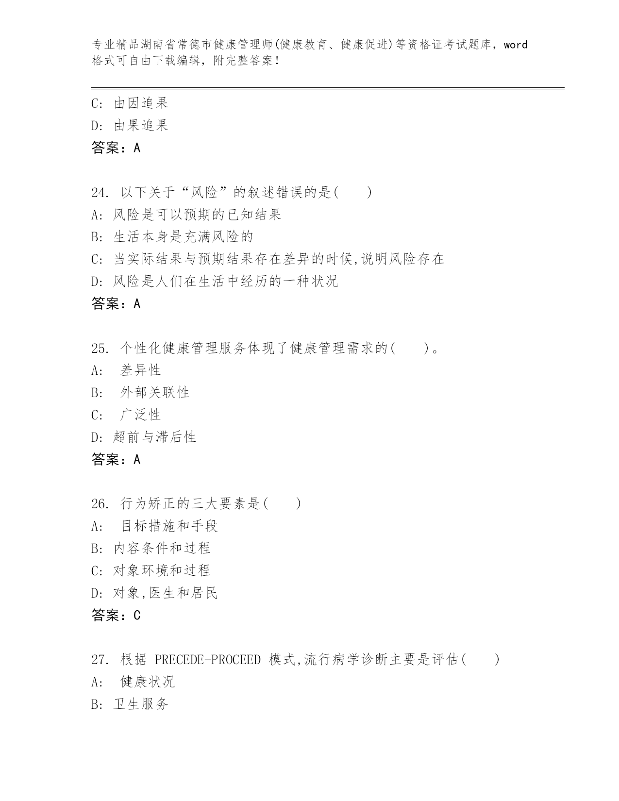 完整版湖南省常德市健康管理师(健康教育、健康促进)等资格证考试大全【精品】