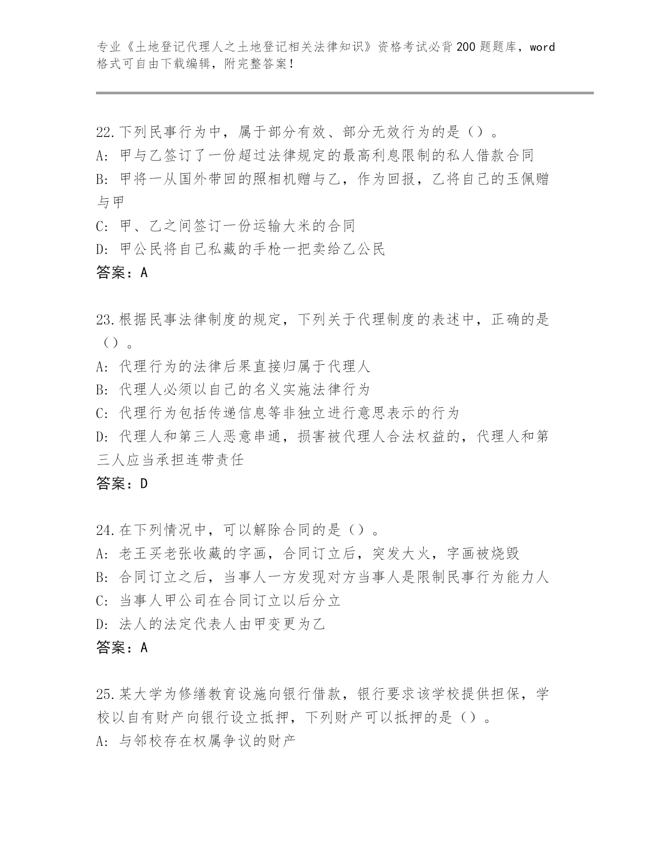 2024年江西省新干县《土地登记代理人之土地登记相关法律知识》资格考试必刷200题题库(突破训练)