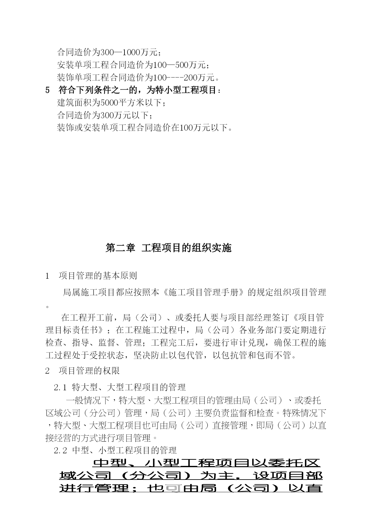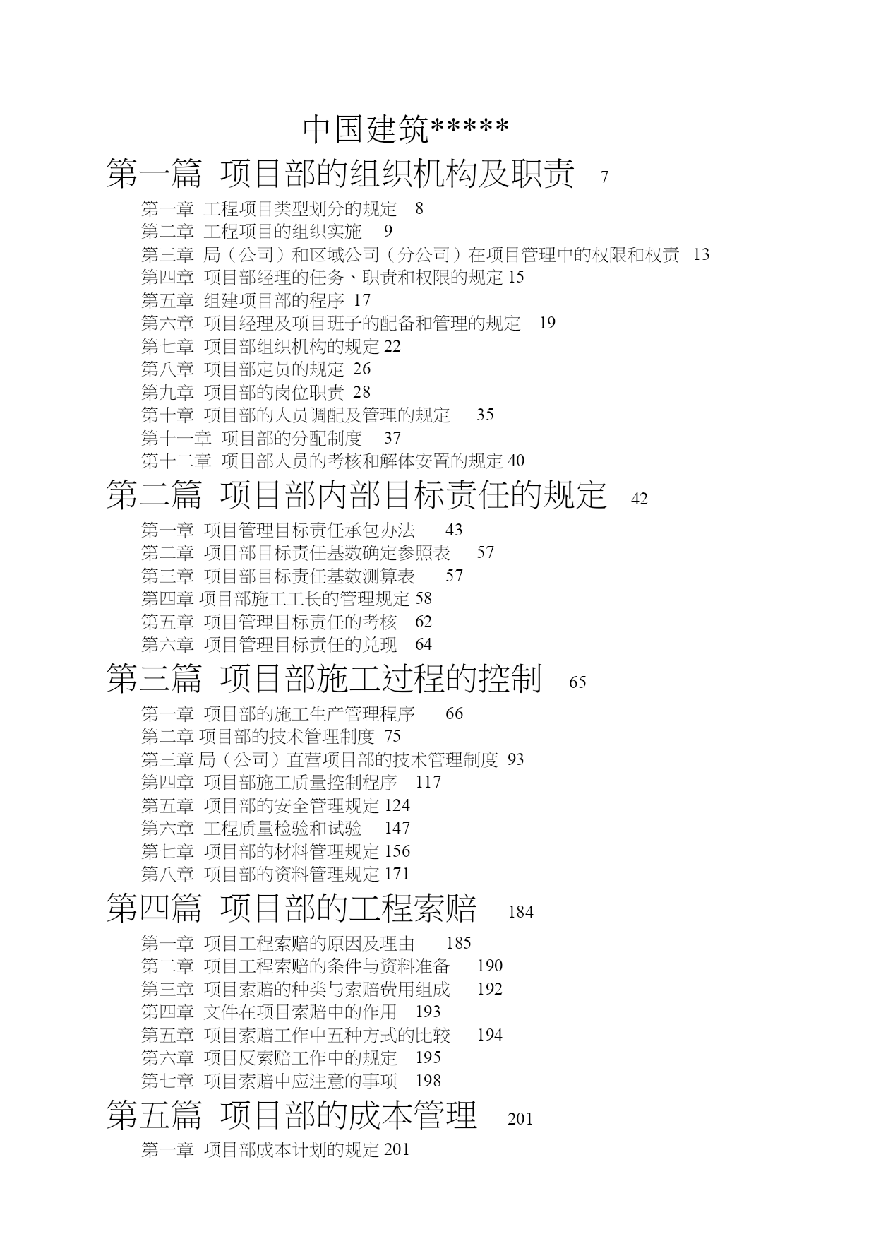 施工项目管理手册中国建筑*****TOC\o"1-2"\h\zHYPERLINK\l"_Toc132083571"第一篇项目部的组织机构及职责PAGEREF_Toc132083571\h7HYPERLINK\l"_Toc132083572"第一章工程项目类型划分的规定PAGEREF_Toc132083572\h8HYPERLINK\l"_Toc132083573"第二章工程项目的组织实施PAGEREF_Toc132083573\h9HYPERLINK\l"_Toc132083574"第三章局(公司)和区域公司(分公司)在项目管理中的权限和权责PAGEREF_Toc132083574\h13HYPERLINK\l"_Toc132083575"第四章项目部经理的任务、职责和权限的规定PAGEREF_Toc132083575\h15HYPERLINK\l"_Toc132083576"第五章组建项目部的程序PAGEREF_Toc132083576\h17HYPERLINK\l"_Toc132083577"第六章项目经理及项目班子的配备和管理的规定PAGEREF_Toc132083577\h19HYPERLINK\l"_Toc132083578"第七章项目部组织机构的规定PAGEREF_Toc132083578\h22HYPERLINK\l"_Toc132083579"第八章项目部定员的规定PAGEREF_Toc132083579\h26HYPERLINK\l"_Toc132083580"第九章项目部的岗位职责PAGEREF_Toc132083580\h28HYPERLINK\l"_Toc132083581"第十章项目部的人员调配及管理的规定PAGEREF_Toc132083581\h35HYPERLINK\l"_Toc132083582"第十一章项目部的分配制度PAGEREF_Toc132083582\h37HYPERLINK\l"_Toc132083583"第十二章项目部人员的考核和解体安置的规定PAGEREF_Toc132083583\h40HYPERLINK\l"_Toc132083584"第二篇项目部内部目标责任的规定PAGEREF_Toc132083584\h42HYPERLINK\l"_Toc132083585"第一章项目管理目标责任承包办法PAGEREF_Toc132083585\h43HYPERLINK\l"_Toc132083586"第二章项目部目标责任基数确定参照表PAGEREF_Toc132083586\h57HYPERLINK\l"_Toc132083587"第三章项目部目标责任基数测算表PAGEREF_Toc132083587\h57HYPERLINK\l"_Toc132083588"第四章项目部施工工长的管理规定PAGEREF_Toc132083588\h58HYPERLINK\l"_Toc132083589"第五章项目管理目标责任的考核PAGEREF_Toc132083589\h62HYPERLINK\l"_Toc132083590"第六章项目管理目标责任的兑现PAGEREF_Toc132083590\h64HYPERLINK\l"_Toc132083591"第三篇项目部施工过程的控制PAGEREF_Toc132083591\h65HYPERLINK\l"_Toc132083592"第一章项目部的施工生产管理程序PAGEREF_Toc132083592\h66HYPERLINK\l"_Toc132083593"第二章项目部的技术管理制度PAGEREF_Toc132083593\h75HYPERLINK\l"_Toc132083594"第三章局(公司)直营项目部的技术管理制度PAGEREF_Toc132083594\h93HYPERLINK\l"_Toc132083595"第四章项目部施工质量控制程序PAGEREF_Toc132083595\h117HYPERLINK\l"_Toc132083596"第五章项目部的安全管理规定PAGEREF_Toc132083596\h124HYPERLINK\l"_Toc132083597"第六章工程质量检验和试验PAGE