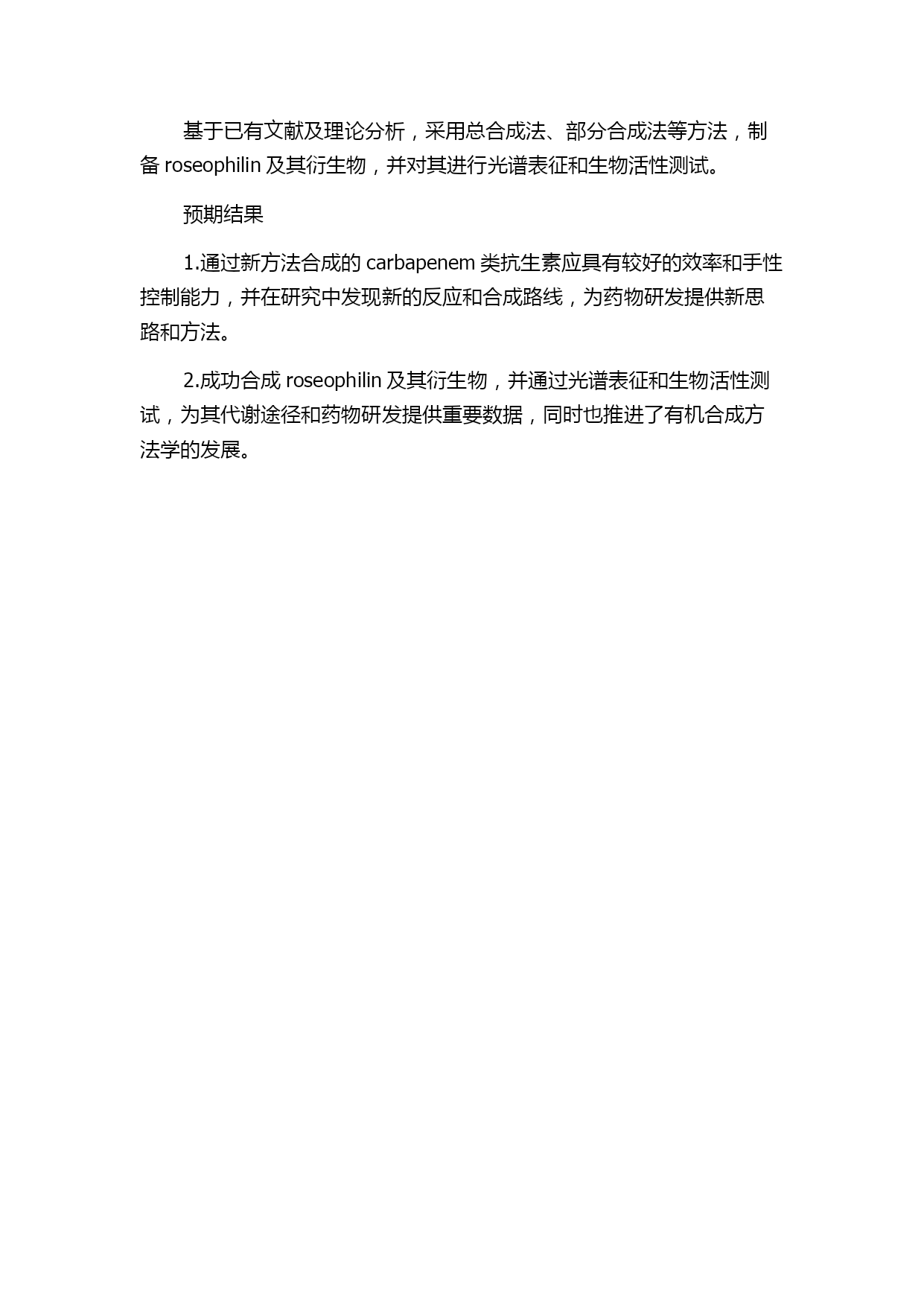 Carbapenem的合成和roseophilin的全合成研究的开题报告.docx