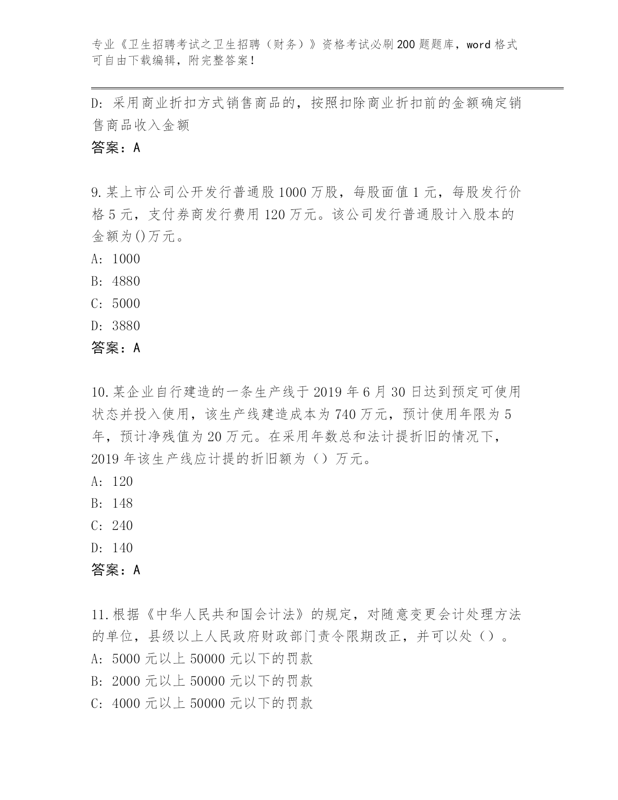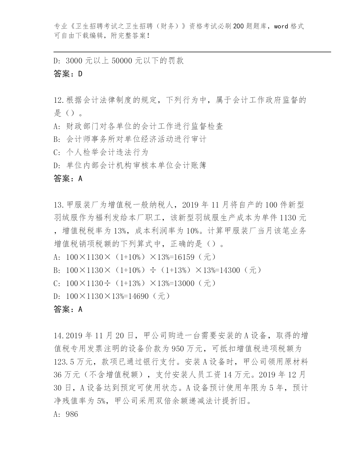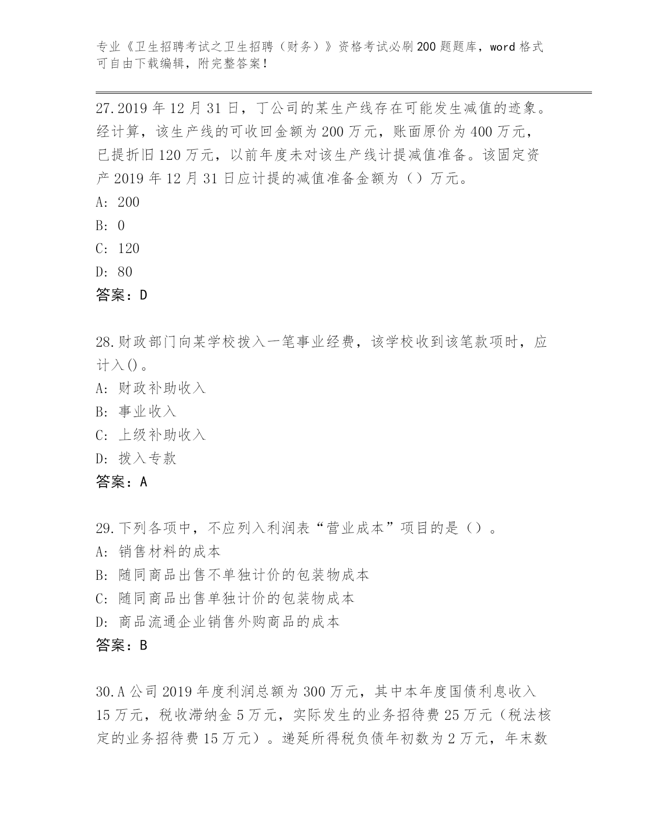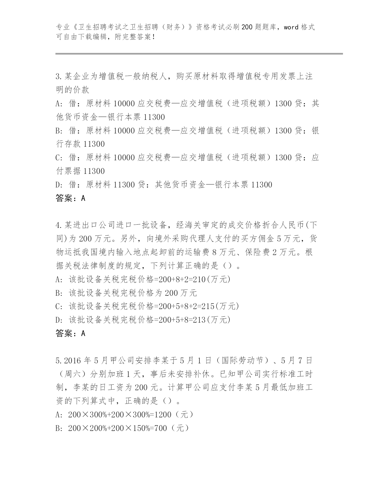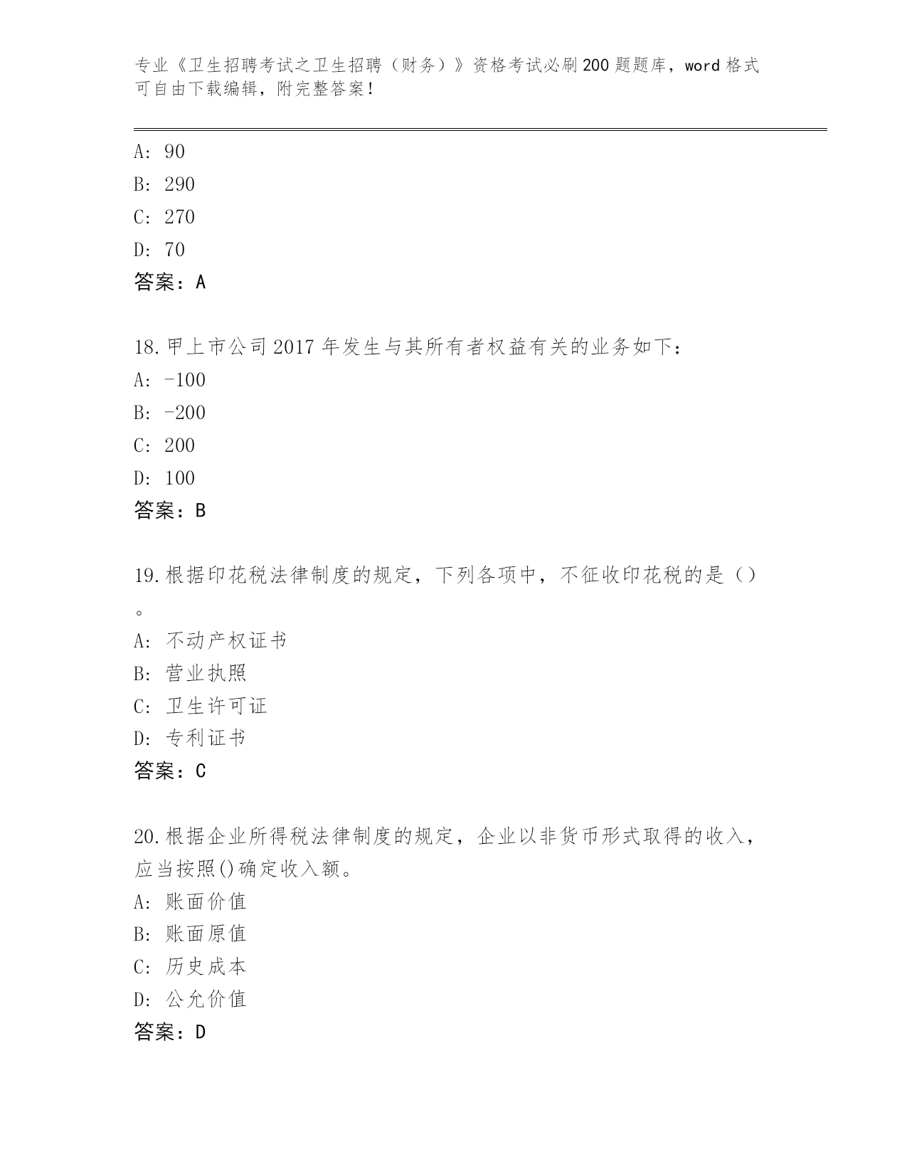 云南省整理《卫生招聘考试之卫生招聘(财务)》考试必刷200题题库【培优A卷】