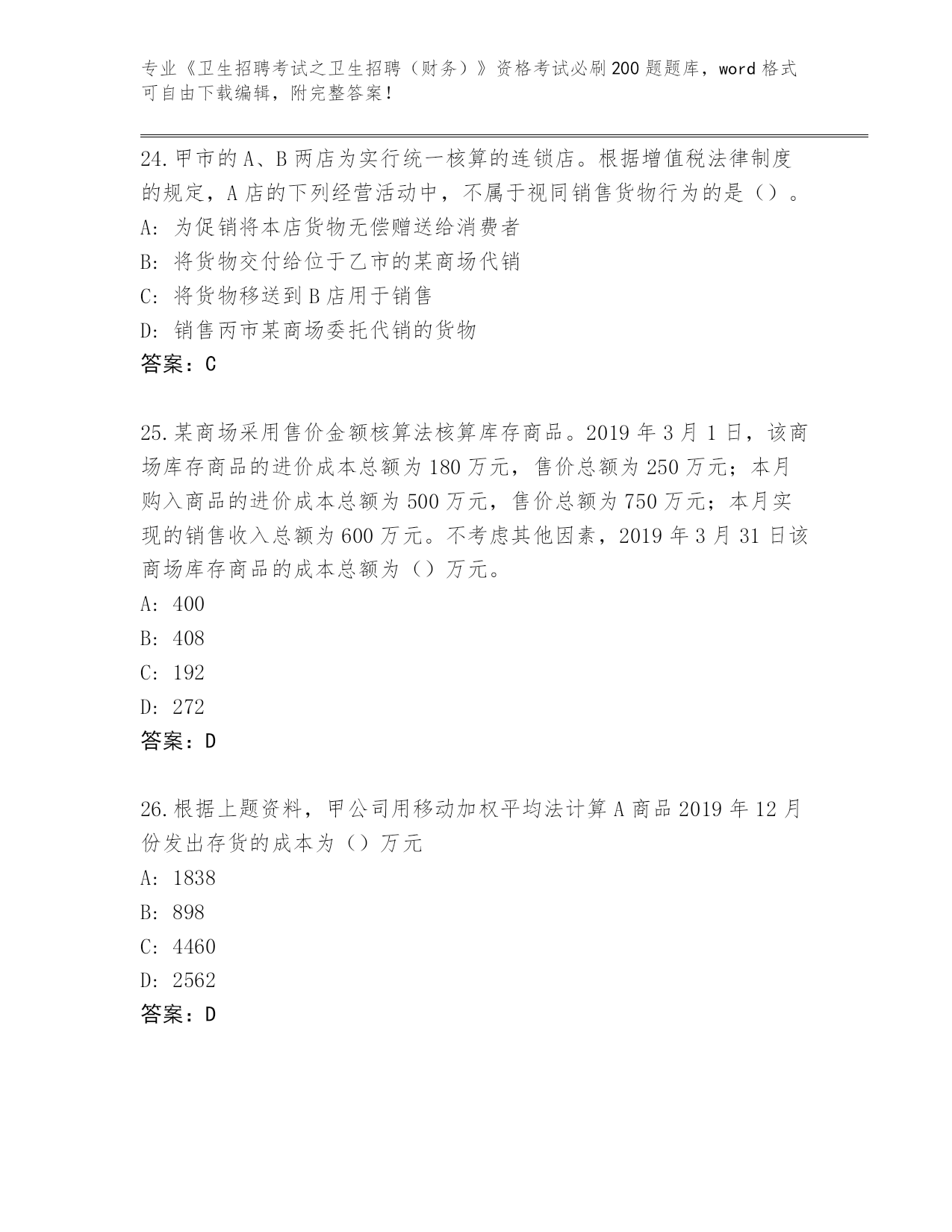 2024年云南省临翔区《卫生招聘考试之卫生招聘(财务)》考试必刷200题题库(培优B卷)