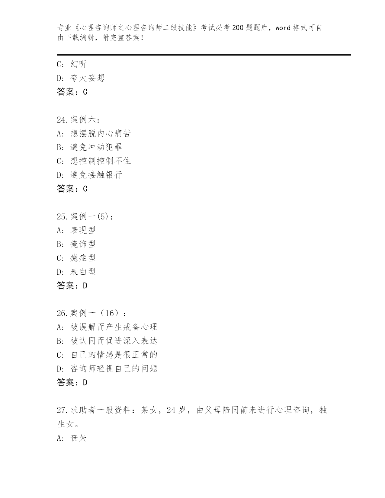 2024年云南省盐津县《心理咨询师之心理咨询师二级技能》考试必考200题王牌题库(巩固)