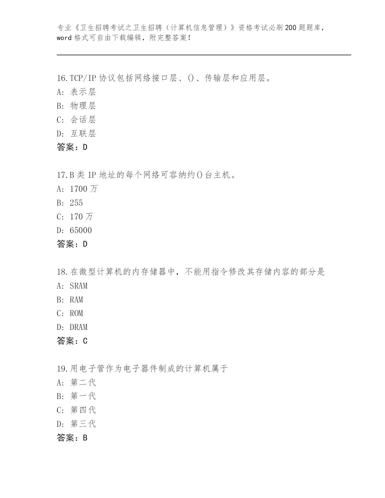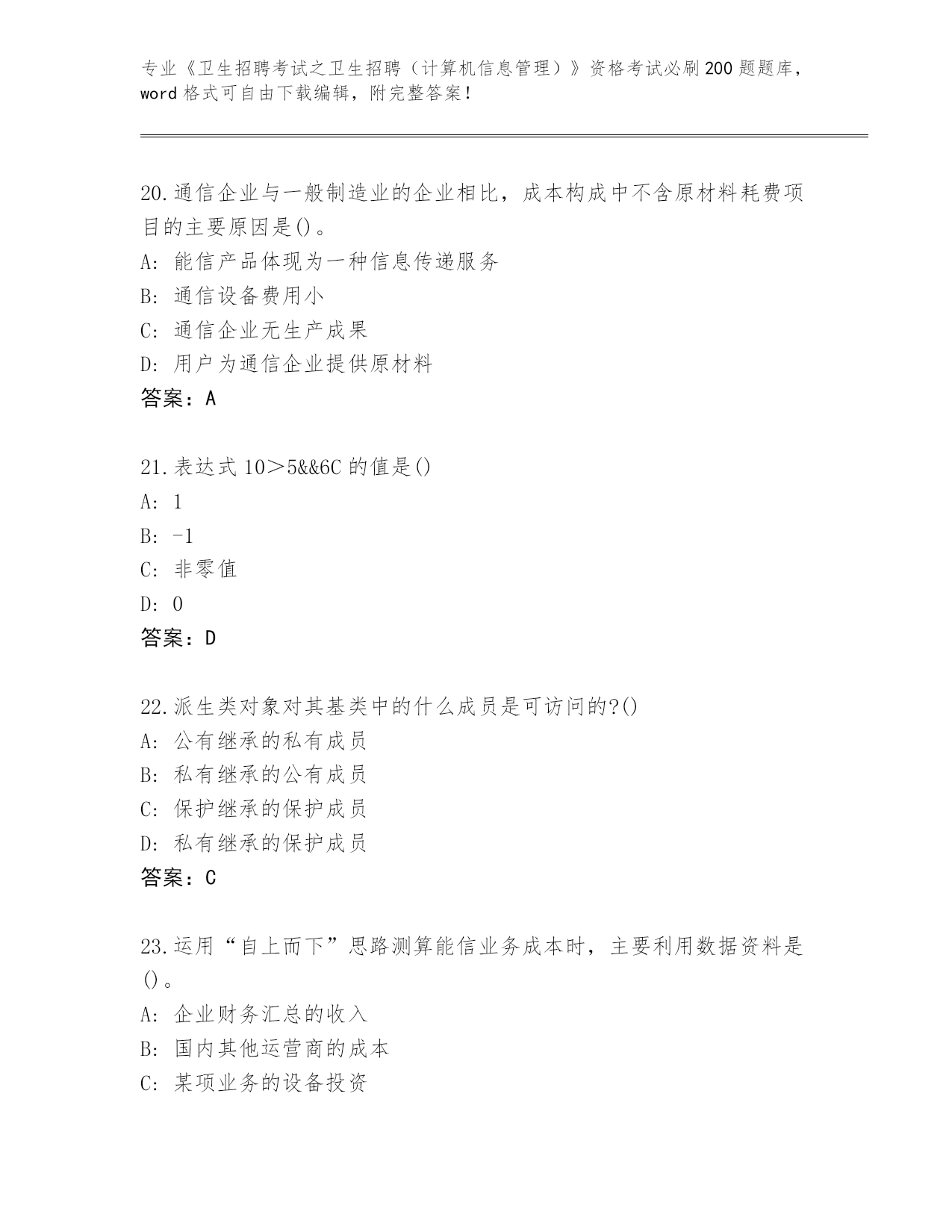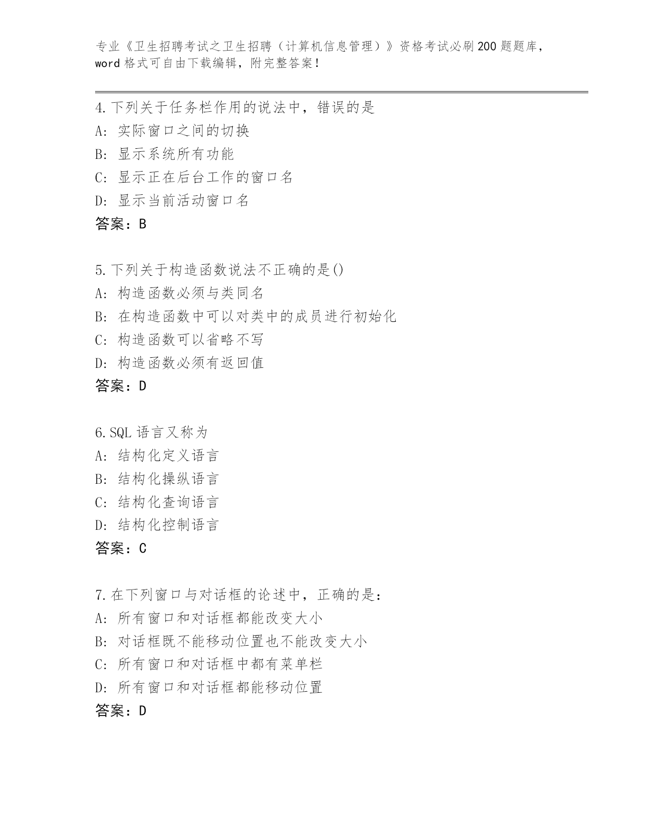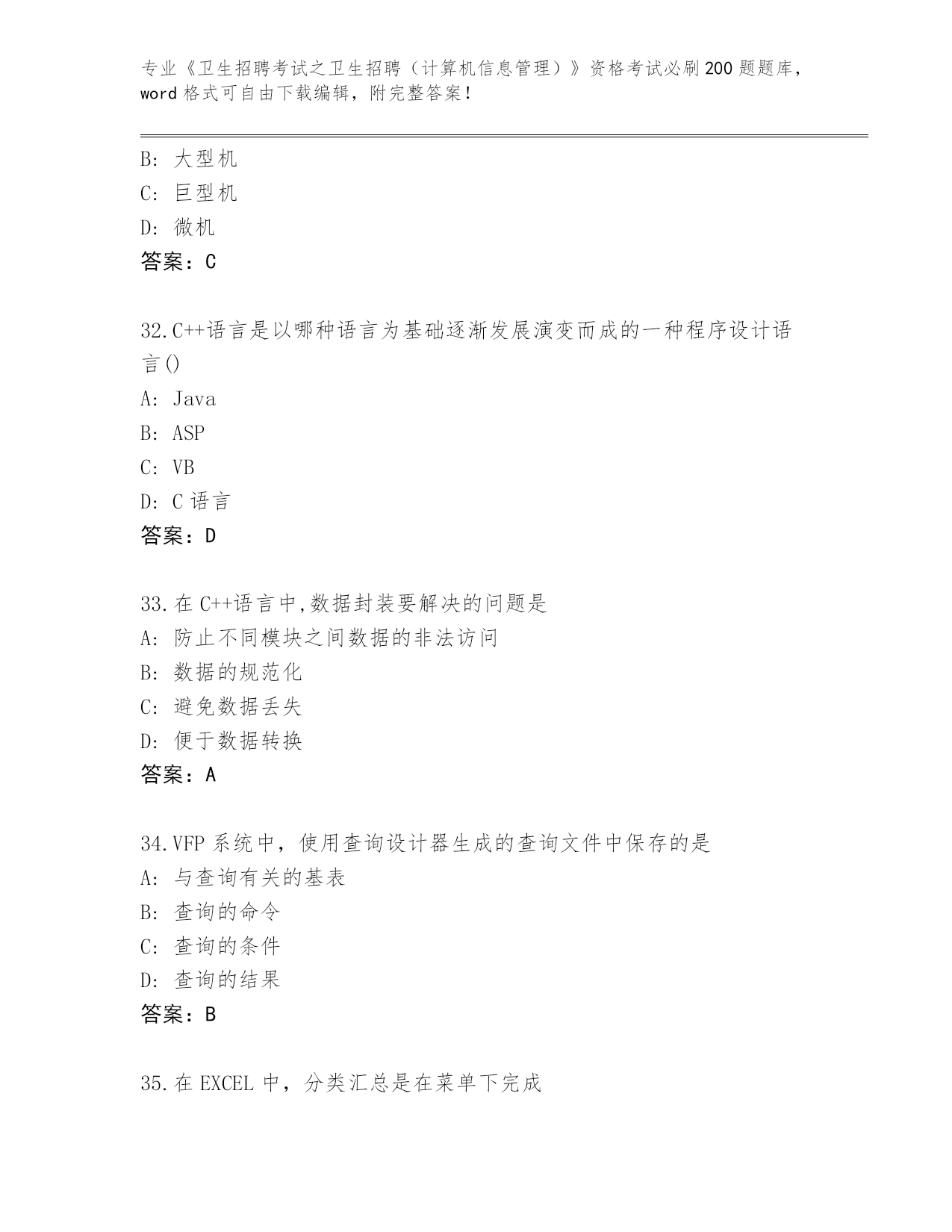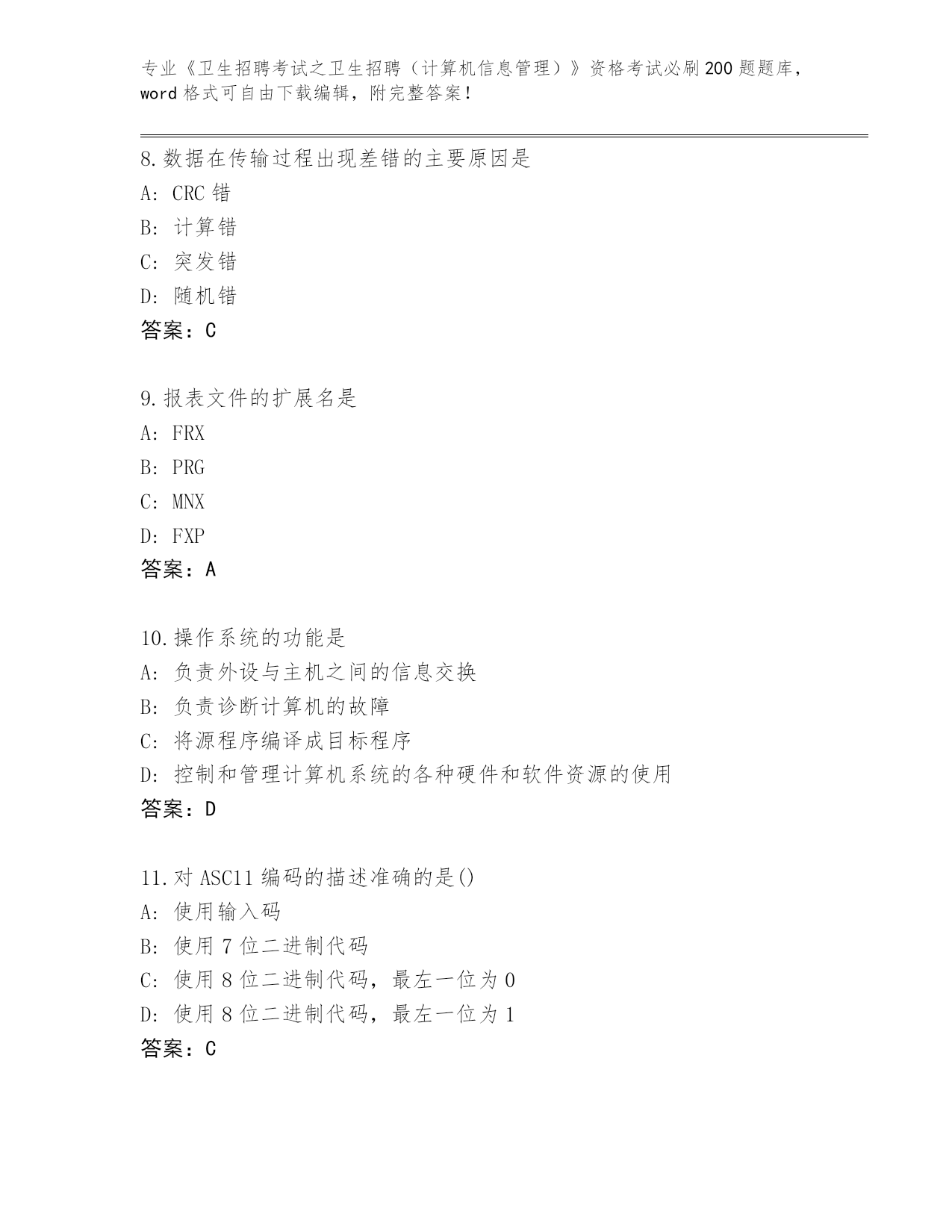 2024年安徽省《卫生招聘考试之卫生招聘(计算机信息管理)》资格考试必刷200题通关秘籍题库附答案(名师推荐)