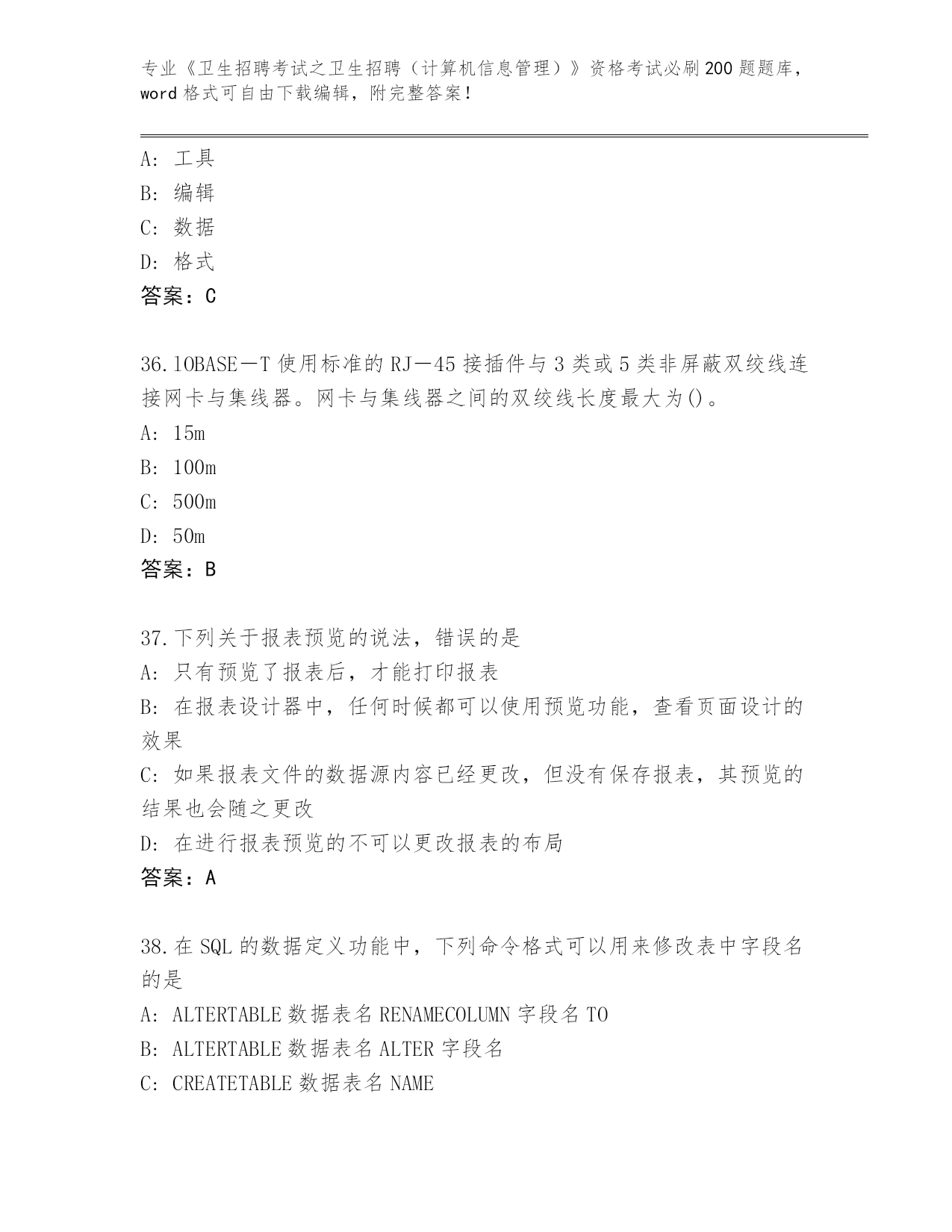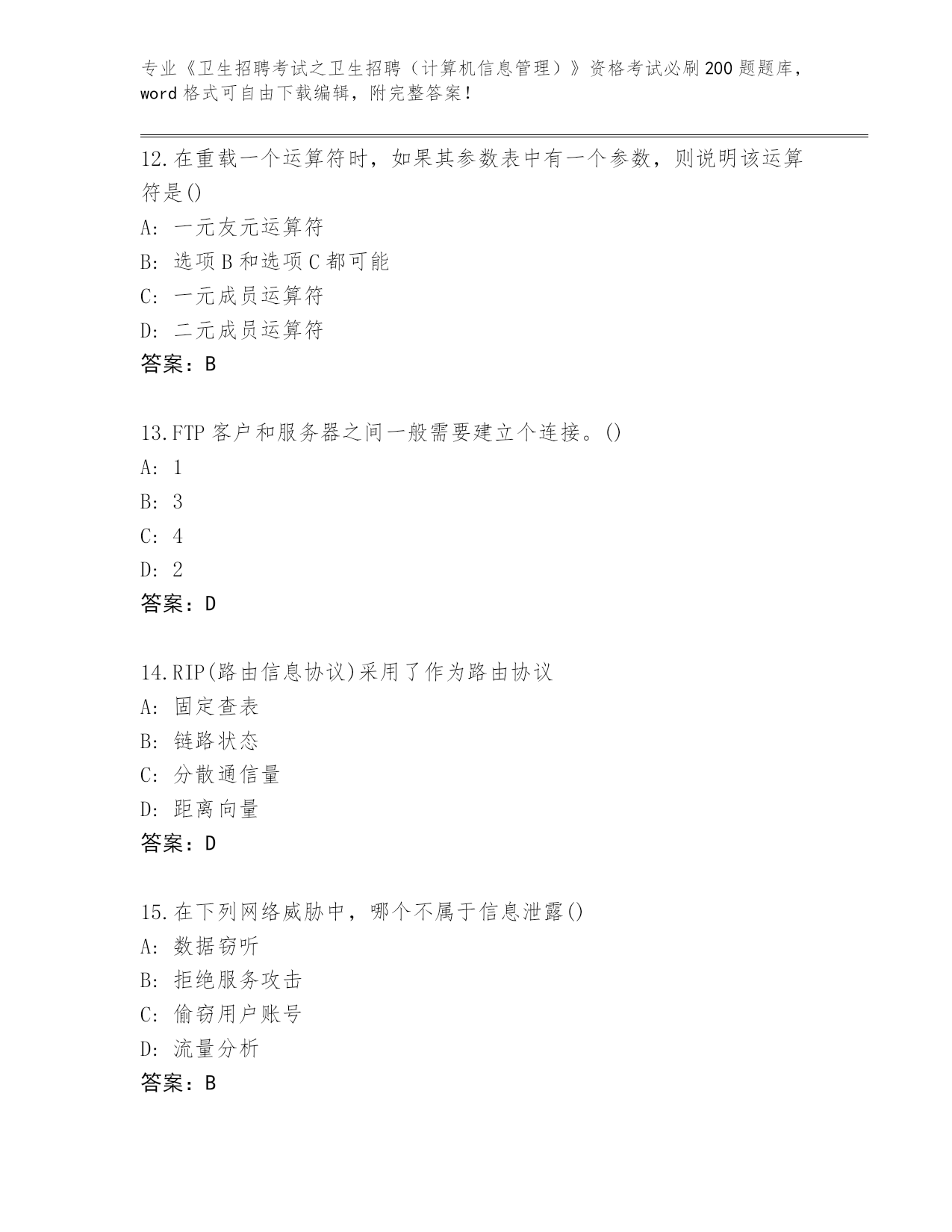 内部使用安徽省杜集区《卫生招聘考试之卫生招聘(计算机信息管理)》资格考试必刷200题通关秘籍题库附答案【A卷】