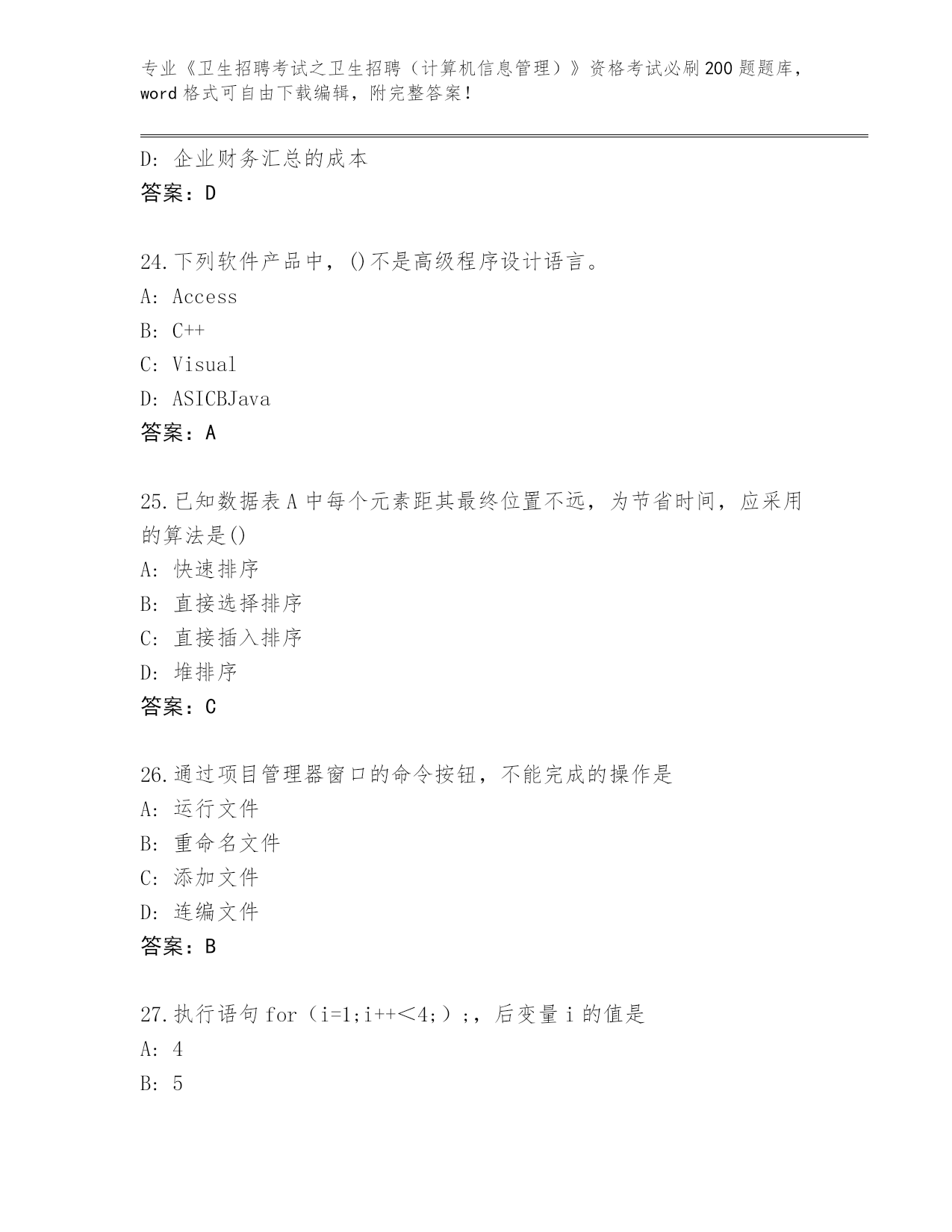 2024安徽省泗县《卫生招聘考试之卫生招聘(计算机信息管理)》资格考试必刷200题通关秘籍题库有答案