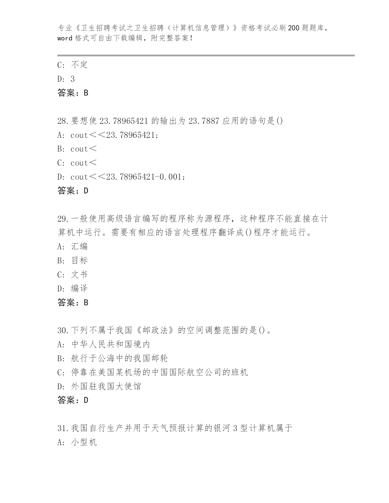 安徽省2024年《卫生招聘考试之卫生招聘(计算机信息管理)》考试必刷200题通关秘籍题库附答案