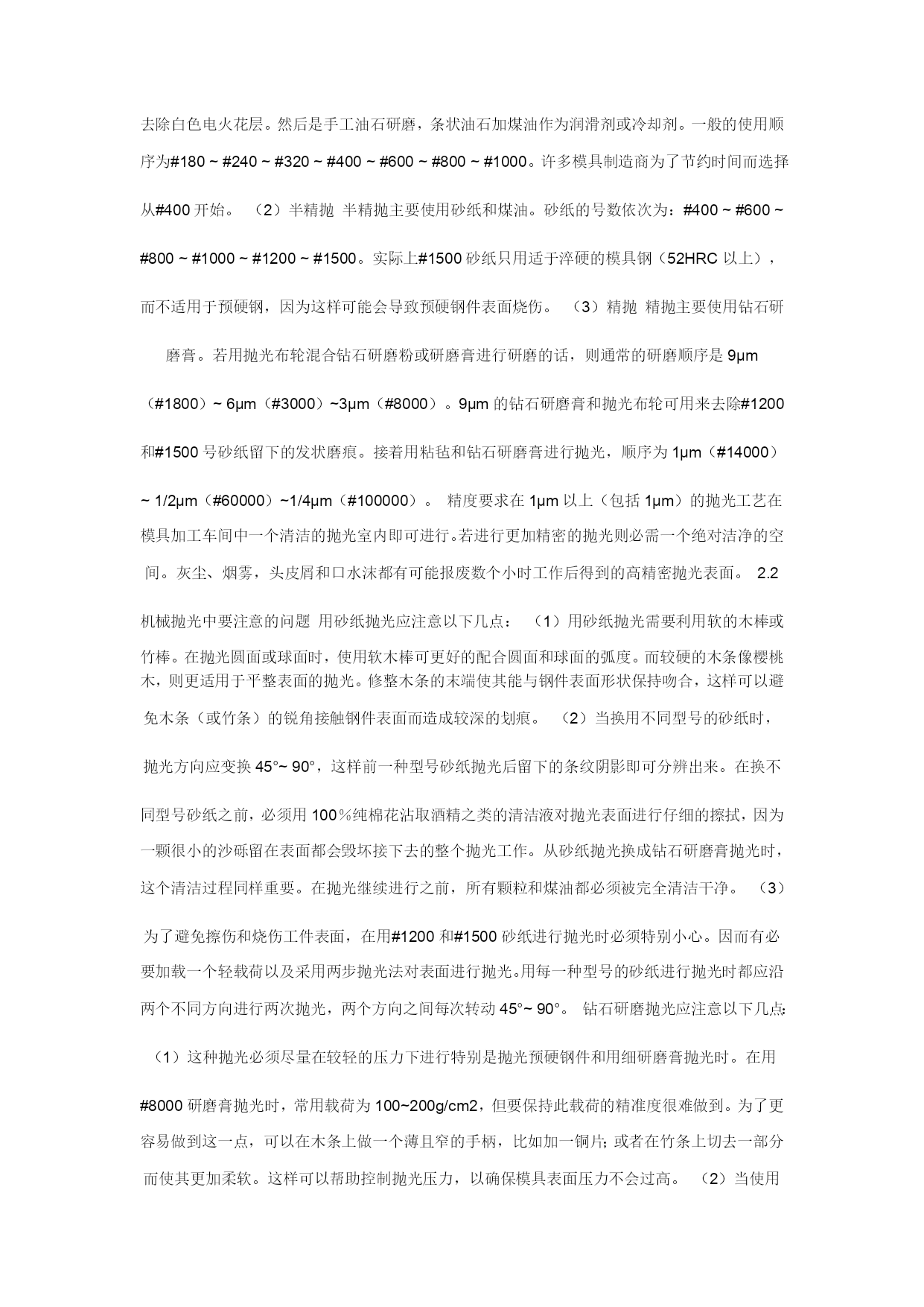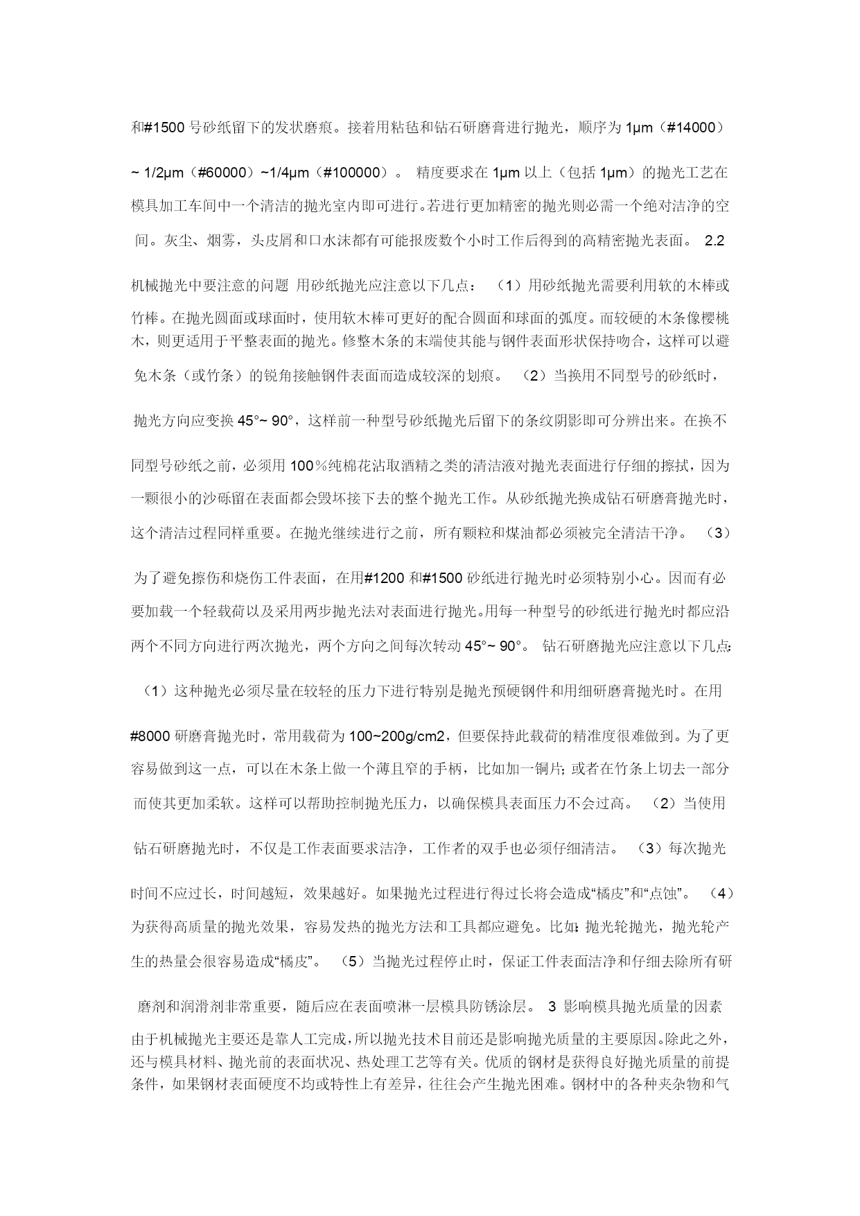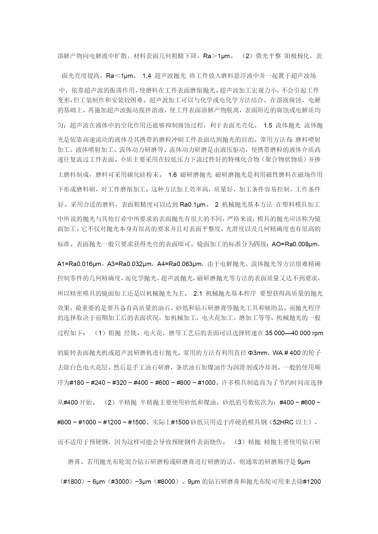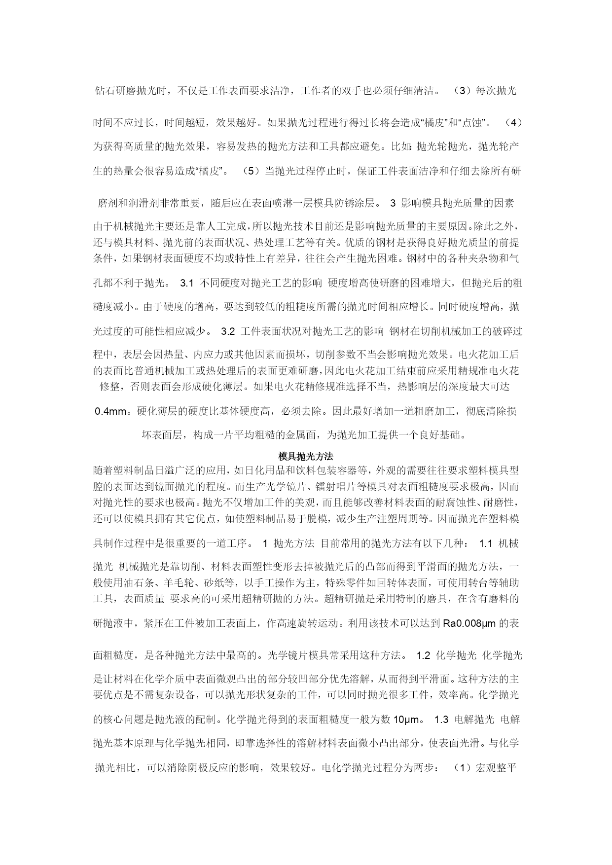 模具制作的要求一、模仁、模胚1,模胚在未拆开之前,检查其型号、尺寸是否与图纸相符,然后在基准角之对角面打上模具编号的模板序号,要求每付模具方铁铣模具编号;每付模具导柱也必须用打磨机刻上模具编号;导套底部开排气槽;B板四个角要求铣撬模坑,尺寸为20×45°×DP5。2,多个产品在同一付模具时,应遵循中间产品大、周边产品小的原则,即压大的产品排位在中间,以便整付模走胶均匀,要求电镀的产品和同样的产品应集中在一起,要求喷油的产品集中在一起。3,分型要求光整漂亮,新模具外观表面尽量不要刮花、生锈,以模具美观整洁。后模仁要求平整,电脑锣刀纹尽可能不损坏,前模型胶位部分省模必须按照粗凿——精凿、粗石油——精石油、粗砂纸——细砂纸的顺序省光后再抛光,晒纹件不须抛光。4,在不影响产品顶出和保证顶针板强度的条件下,要求模具均匀加撑头,并主要考虑在模具的中间,撑头长度:3535以下模胚,撑动高度为方铁高加0.15-0.2,3535以上模胚撑头高度为方铁高加0.2-0.3,撑头要求固定在B板上。5,产品外观或产品装配好后,手可触摸到的地方不可有利角。6,唧嘴要求做定位止转,出胶口要求分型面平0.5M/M-1M/M,唧嘴的长度尽可能做短,以减少注射力,唧嘴定位台阶面不可接触到模仁或镶件。7,模胚顶棍孔与唧嘴孔必须在同一中心上,顶棍孔直径为ф40,模胚在55以上顶棍孔为3个,中心数为100,顶针底板要求均匀设置垃圾钉,垃圾钉高度必须一致。8,所有模具必须加工码模孔,中心距为“7英寸”、“10英寸”、“12英寸”且直身模要求铣码模坑,深25、宽25,长依模板大小而定。9,所有模具之模仁、大镶件要求通冷却运水,特别是胶位比较深、厚的地方,水路直径ф8.0,安全距离为4.0M/M离胶位至少保留5.0M/M,尽量避免局部模温过高,水路堵铜位置必须做台阶,模仁和镶件的冷却水路用防水圈从模胚对接出来,如前模通框,水管可直接通过模胚,接在模胚上,水管要求在A,B板的同一端上,水管接在模具的上面或注塑机操作者的另一边,水管进水打“IN1、IN2。。。。。。”,出水打“OUT、OUT2。。。。。。”标明,防水圈位置如图:10、所有模具烧焊部位要求不可体现在明显外观处。11、前后模光框,首先必须校正铣床主轴与工作台面垂直,保证公差±0.01;框底要求用飞刀光刀,框角四周用小于或等于ф12铣刀避空0.1MM,以保证框底部大面积平整,前后模框图要求在同一中心上,保证公差±0.02,模仁下框,要求用红丹检查是否大面积接触。12、前后模仁磨正角尺,要求角尺公差±0.03MM,长宽尺寸一致;模仁侧面铣一凹槽,刻上基准符号“”和模具编号;位置与模胚基准角相对应。一般情况下,前后模仁要求首先将顶针、镶针孔,穿线孔加工OK之后,才能再由电脑锣或线切割加工。13,所有机加工工件,必须首先准备好该工件所用到的所有工具,能在机床上一次性加工OK的,要求全部完成之后才能下机。14、所有铜工在放电加工之前,必须检查其外形是否与图形一致(清角部分),其尺寸必须等于[图纸尺寸*缩水—火花位—省模余量(留纹除外)],要求铜工放电部位过400#砂纸省光,不可残留刀纹或钼丝痕;基准位要求光滑、平整,不可残留毛刺、利角、铜工底部深度方向不可留火花位,具体火花位参照《火花位标准》。15,所有火花、线割、电脑锣、雕刻加工,必须仔细检查,确认无误之后,才能进行下一道工序加工。二,结构1,模具所有活动部件,行位、斜顶、推块、推板封胶外必须做斜度封胶,相互磨擦位要求开油槽,所用之钢材硬度不可低于模仁硬度。2,所有模具斜楔与滑块吻合之斜面,必须用磨床加工,不可动用打磨机加工,斜导柱斜度要求小于斜楔斜度2度,斜楔要求有反铲。3,行位特别是大行位都必须加弹簧助行走机构,并要求加行程限位和波珠定位机构,波珠加工如图:4,由行位互碰成形产品,行位之间必须互锁,且要求行位做台阶限5,行位导向槽设在模板上:其尺寸宽*高=5*6;大行位:宽*高=8*10,中间加导向,行位两边加压块。6,对前模产生较大包紧力部位,须在对应之后模部位均匀设置勾针,勾针要求定位且所有勾针方向一致,便于脱模。7,镶件定位要求有挂台或用镙丝固定,装好模后不可上下串动。8,模仁与模框相配之R角,不可以紧配,须避空,底面要求用铣刀倒C角2*45度,与模框相配之R角要求:R框+1=R模仁。三,流道1,所有模具在保证成形质量的前提下尽量缩短流道行程,尽可能减少横截面积,正常情况下,流道横截面不可超过ф6.0MM,所有流道要求有冷料穴,如:唧嘴的下方,流道的尽头,细水口进胶的下方。2,所有模具之前模细水口,流道与水口勾针必须抛光,要求如图:保证进胶口顺畅,减少注塑压力且无残留在产品上。3,大水口模流道截面应做成圆形或上、下椭圆形,即高度尺寸比宽度尺寸大0.5—1.0前