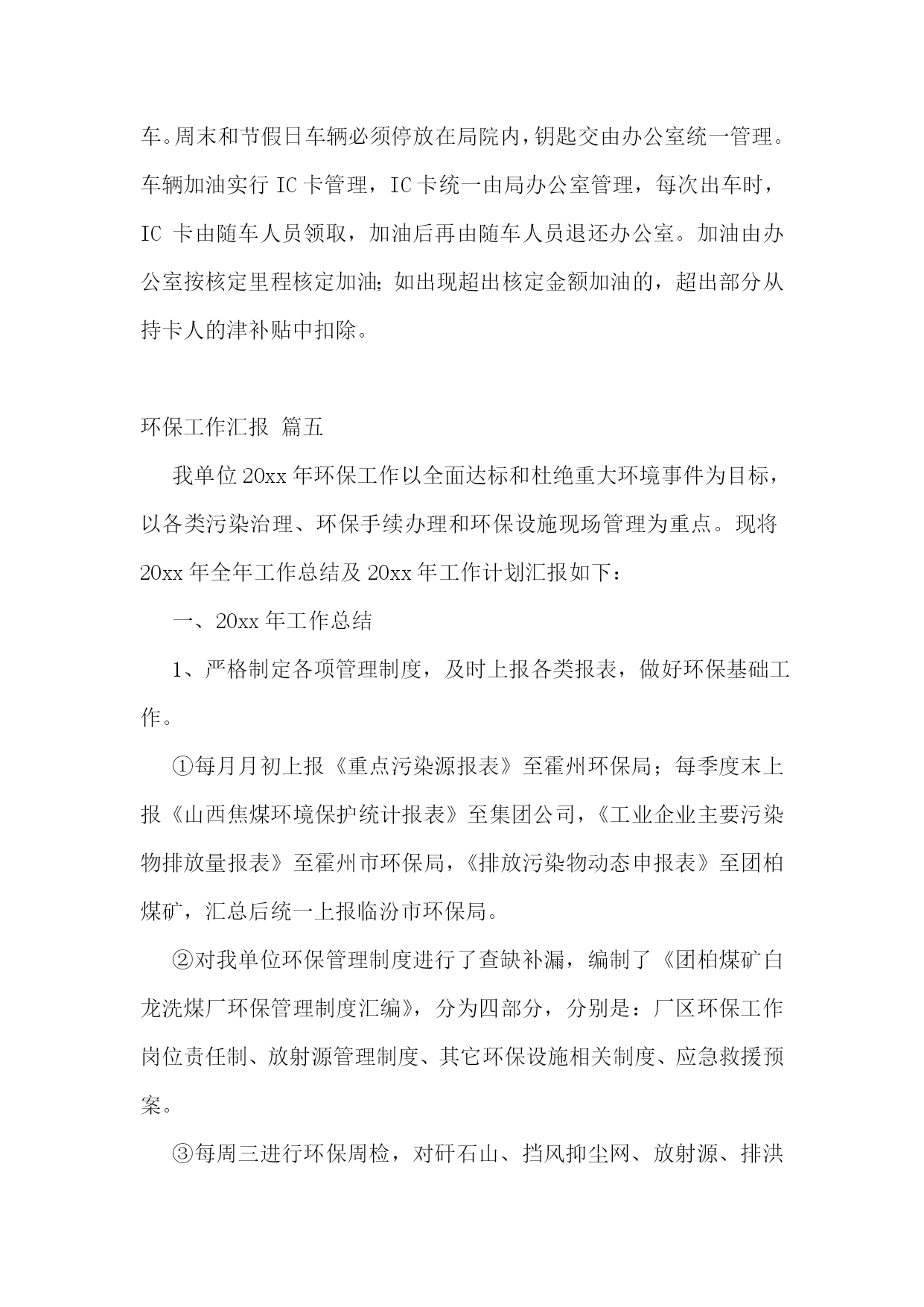 环保工作汇报最新5篇环保工作汇报篇一今年xx月以来,县开展了整治违法排污企业,对县域内的违法排污企业已形成了合围”态势,根据国务院召开的全国环保专项行动电视电话会议精神和省市的具体安排部署。专项行动取得了显著成效。县直10多个部门负责人为成员的环保专项行动领导小组;二是以县政府73号文向全县下发了实施方案;三是县委、县政府主要领导带领相关部门,首先是各级领导高度重视。一是成立了以县政府副县长张振华为组长。多次深入排污企业进行具体督导。环保、监察、发改、工商、公安,其次是相关部门紧密配合。县政府办领导积极牵头。司法、安监、工业等部门紧密配合,一是主动参予对违法排污企业的全面清理,二是配合对个别违法排污企业的关停、取缔。三是公布12369环保,再次是各项具体措施得力。一是召开各层次会议进行紧密部署;二是派出环保执法人员分头进行行动。发动全社会共同参予,鼓励公众协力行动。对关键部位进行了重点整治,一是开展了饮用水源保护区的整治,处理了50多家排污企业。二是全面清理了违反国家环保法律法规的地方“土政策”三是集中整治了建设项目环境违法问题,对10多家违反“三同时”企业进行了停产治理。四是开展了工业园区环境违法问题的整治,对两个企业超标排污问题,进行了限期治理。五是开展了影响群众健康和可持续发展的重点行业整治,对10个涉铅、涉镉、涉砷采选企业进行了限期达标治理,对两家纸厂进行了停产整顿,对一家违法炼钒厂进行了依法关闭,对一些手续齐全的排污企业也进行了全过程、全方位监管。全面取缔了18小”新5小”企业,对全县范围内的小选金、小造纸、小炼钒、小水泥进行了全面整治,一律取缔关闭,销毁所有生产设施。清除所有污染,改善环境质量,保障人民群众的身体健康。环保工作汇报篇二为全面落实科学发展观,结合“创模”、“创文明”、生态工业示范园区创建、主要污染物总量减排、重点流域水环境综合整治等工作,我镇认真贯彻落实环境保护工作条例,根据上级环境保护工作要求切实加强宣传教育力度,不断增强全民环保意识,从源头抓起,从基础做起,强化环境治理,改善卫生环境,提高人民生活质量,推动全镇经济社会事业的健康、快速、协调发展。环保工作开展情况一、主要污染物的减排情况我镇规模以上的工业企业有四家,分别是鑫杰特、麦特新、瑞森建材、嘉登恒发建材,涉及煤耗仅有鑫杰特一家。鑫杰特去年上报产值8180万元,煤耗6500吨,产生SO2有害气体,今年准备改进生产工艺,拟减少煤耗3000吨,减少SO2的产生。二、闽水整治情况(主要畜禽养殖污染整治情况)1、禁养区内畜禽养殖场搬迁进展情况琅岐种鸭场的取缔关闭工作,经多次协商,20xx年12月28日我镇与闽海公司终于签定搬迁协议,现蛋鸭已基本出售完毕,将于20xx年2月21日前完成搬迁。2、禁养区外畜禽养殖场污染治理工作情况在我镇的多次督促下,长福猪场猪舍雨水污水分流管网建设已完成,凤翔猪场已完成第6栋猪舍雨水污水分流管网建设。凤翔猪场已完成污水处理沼气净化工程规模设计,并乡镇人大工作情况汇报与江西省共创沼气工程有限公司签定了总造价为190多万的施工合同,现施工队已进场施工。长福猪场已与福建省新视界环保科技发展有限公司签定了《环保设施配套建设项目技术服务协议书》,在专业公司的指导下加紧污染整治建设。三、农村集中连片整治进展情况为不断深化农村环境综合整治“以奖促治”政策,切实改善农村环境质量,确保和扩大惠民的政策效果,根据中央、省、市、区相关文件要求以及有关会议精神,我镇申请上报了《20xx年马尾区琅岐片区农村环境连片整治项目》并已委托具有编制资质的设计单位编制完成了实施方案。现该项目正向马尾区政府及有关部门申请审批立项,并经过镇党政联席会决定委托福州市宏建工程造价公司编制建设工程预算。四、生态村镇创建情况根据上级部署,并结合20xx年度的琅岐片区农村环境连片整治工作的开展,我们将积极推动生态创建工作,上报创建6个市级生态村,分别是农旗村、光辉村、光明村、勤耕村、乐村村、闽江村等六个行政村,并参加省级生态乡镇的创建,将准备成立创建领导小组,建立各项工作制度和基础台帐。五、卫生院医疗污水废物处理情况现琅岐卫生院固体医疗废物处理为集中处理的方法,主要是与省固体废物处置有限公司签定合同,委托其回收并集中处理,卫生院做好登记,同时院内医疗废物存放点张贴了醒目的医疗废物警示标识。由于卫生院所排放的污水属于医疗污水,要达到环保部门排放要求,需做好去除有机污染物的同时,把好消毒关,要建立一个污水排放系统,由于经费原因仍未完善污水处理系统。环保工作重难点及要解决的问题在琅岐镇,环境保护工作正处在起步阶段,还存在许多困难与问题,主要有:1、环保机构未正式成立,缺少专业的环保技术人员及专职的环保工作人员,环境监管不到位
