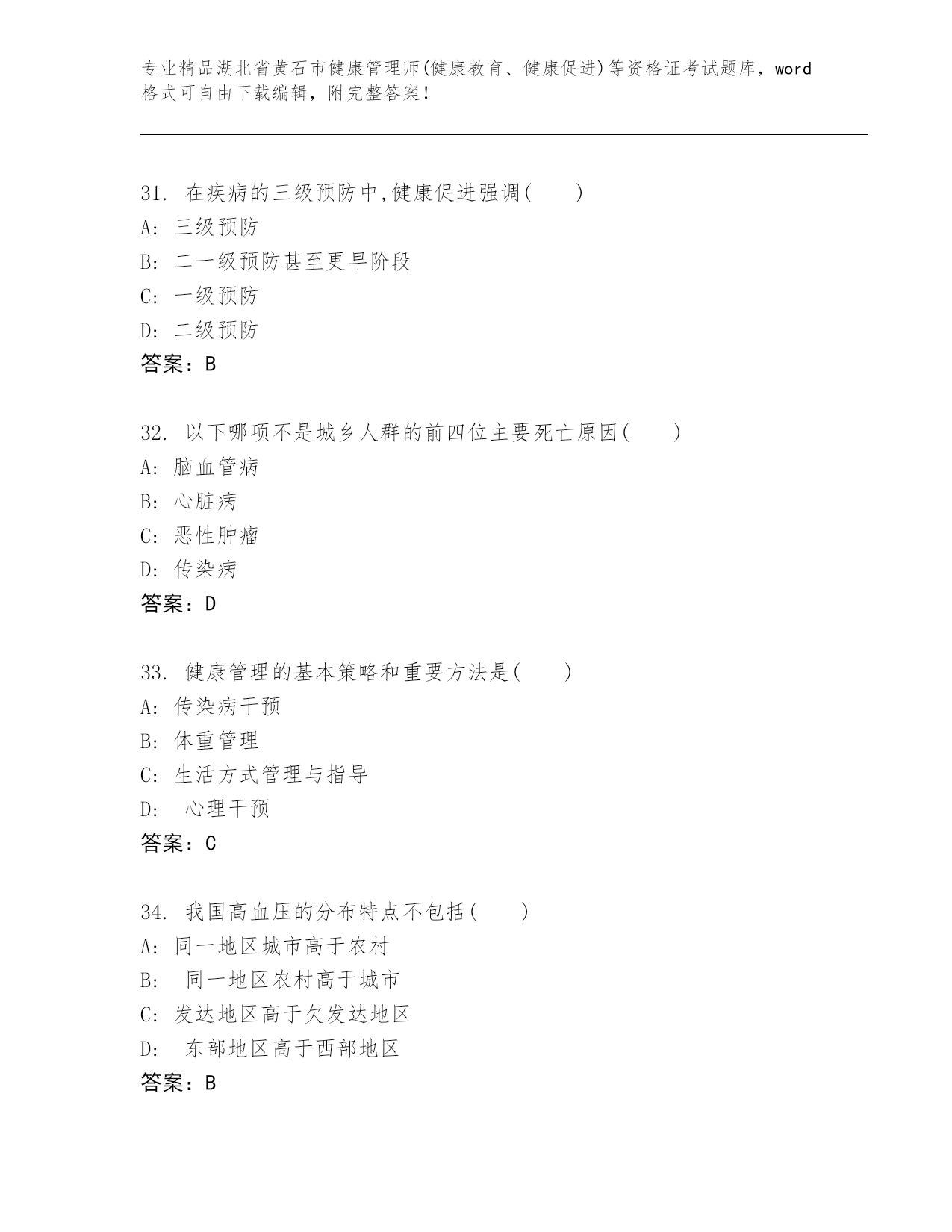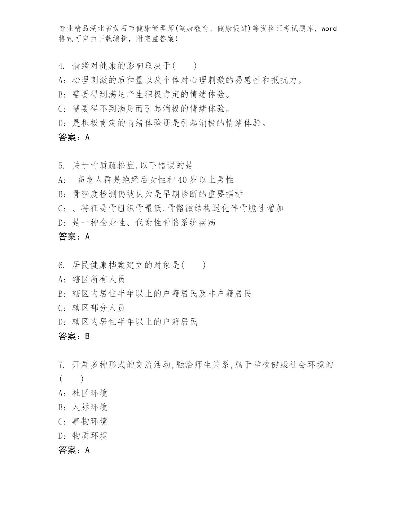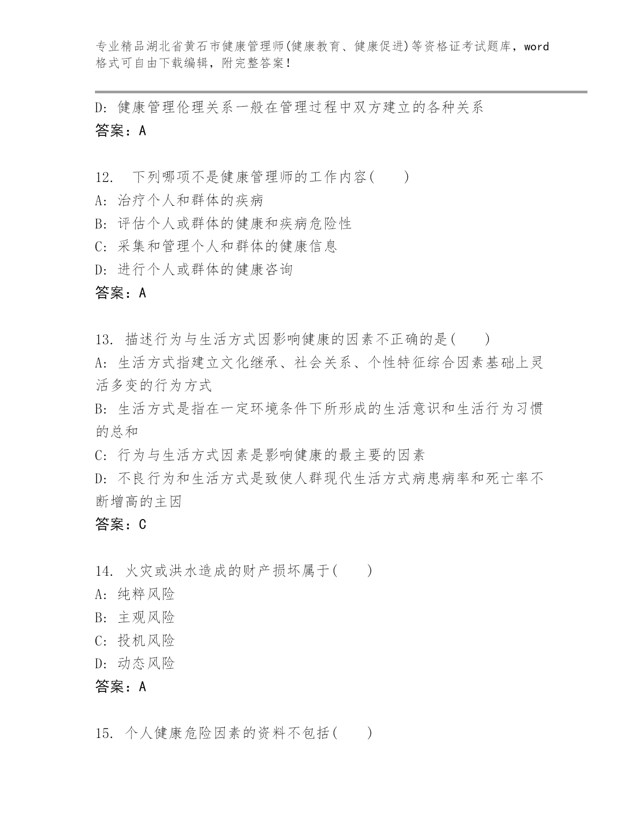 历年湖北省黄石市健康管理师(健康教育、健康促进)等资格证考试优选题库及答案(新).docx