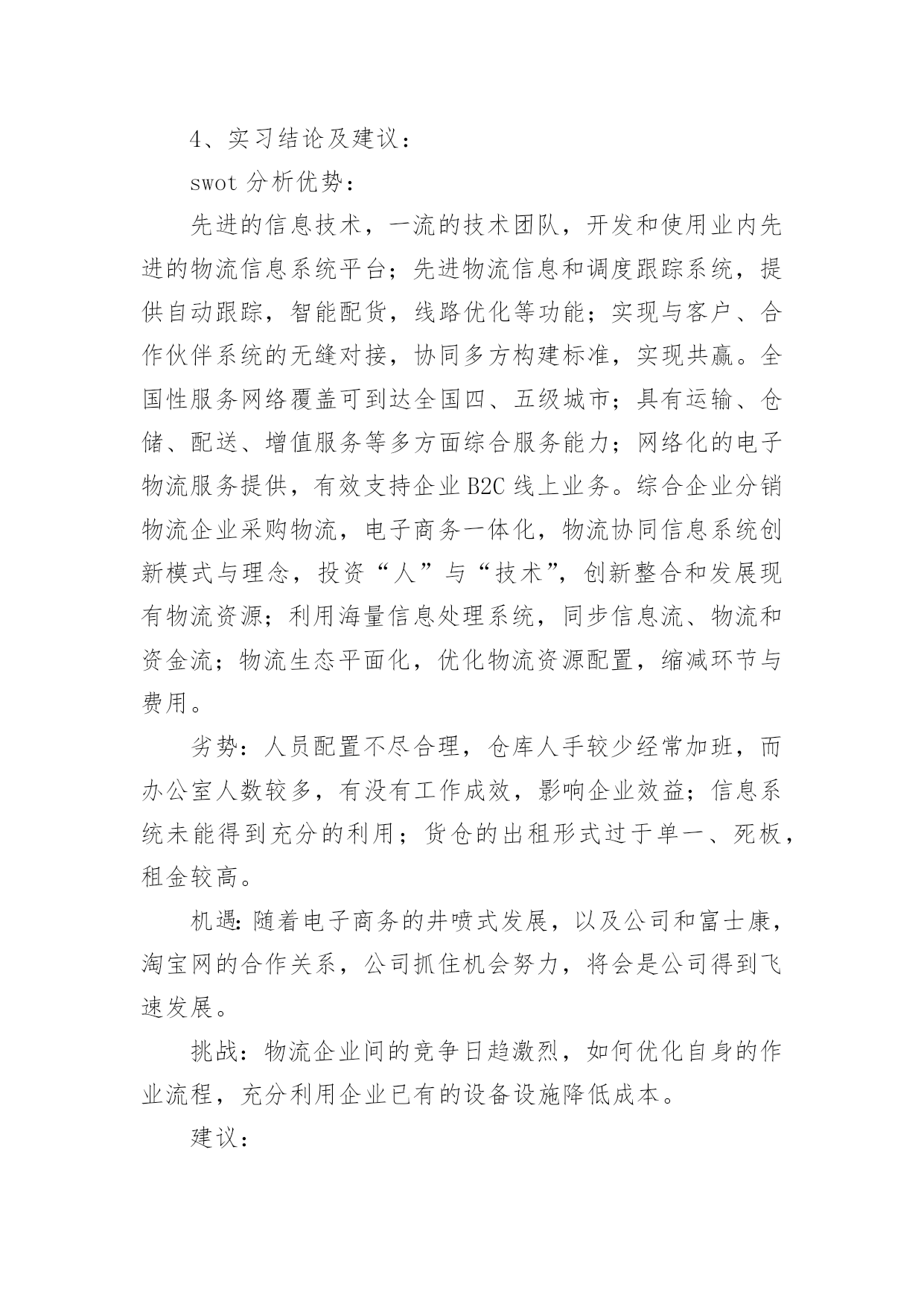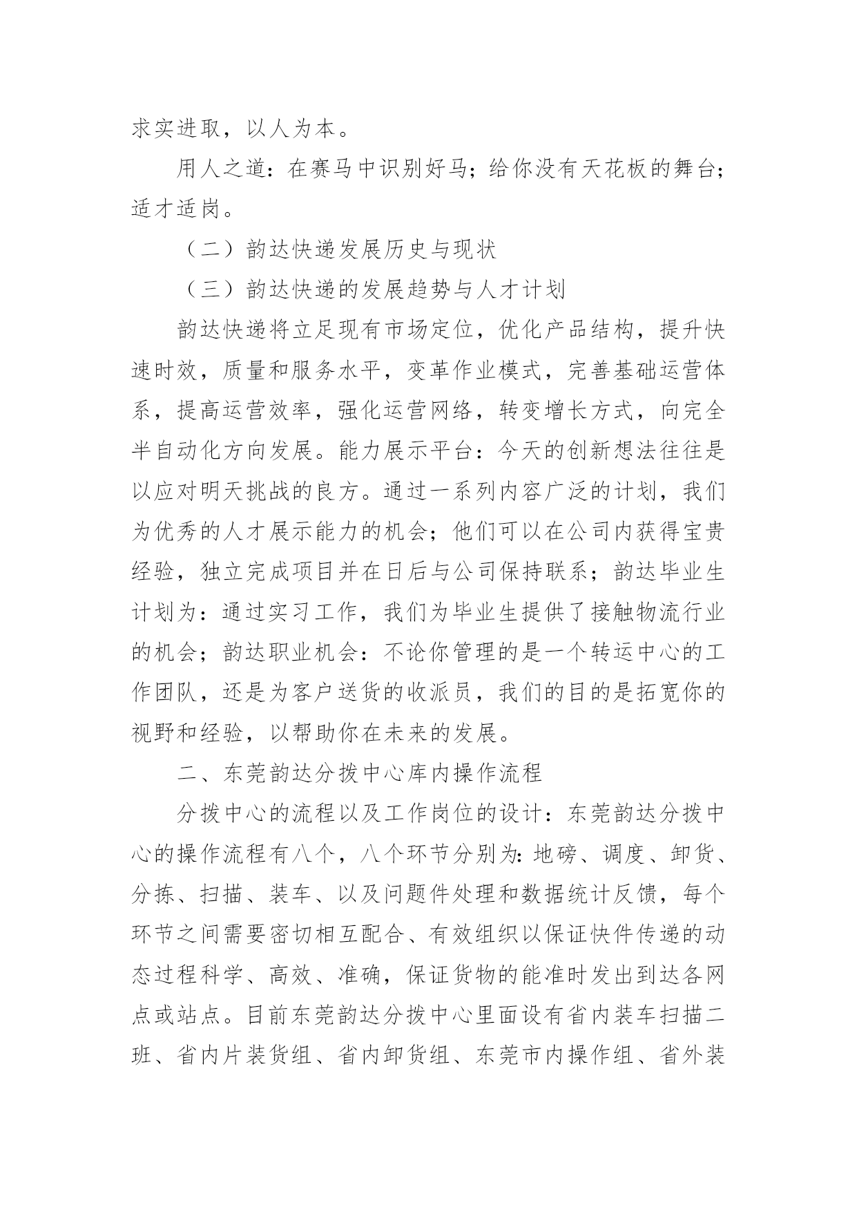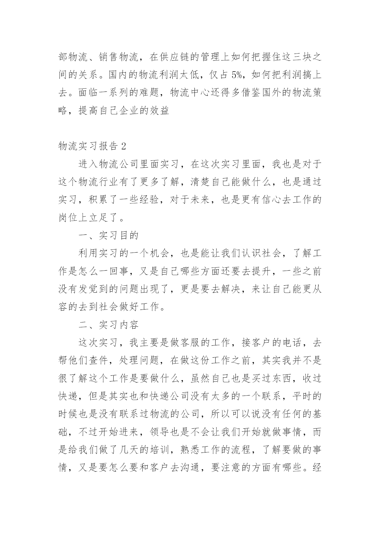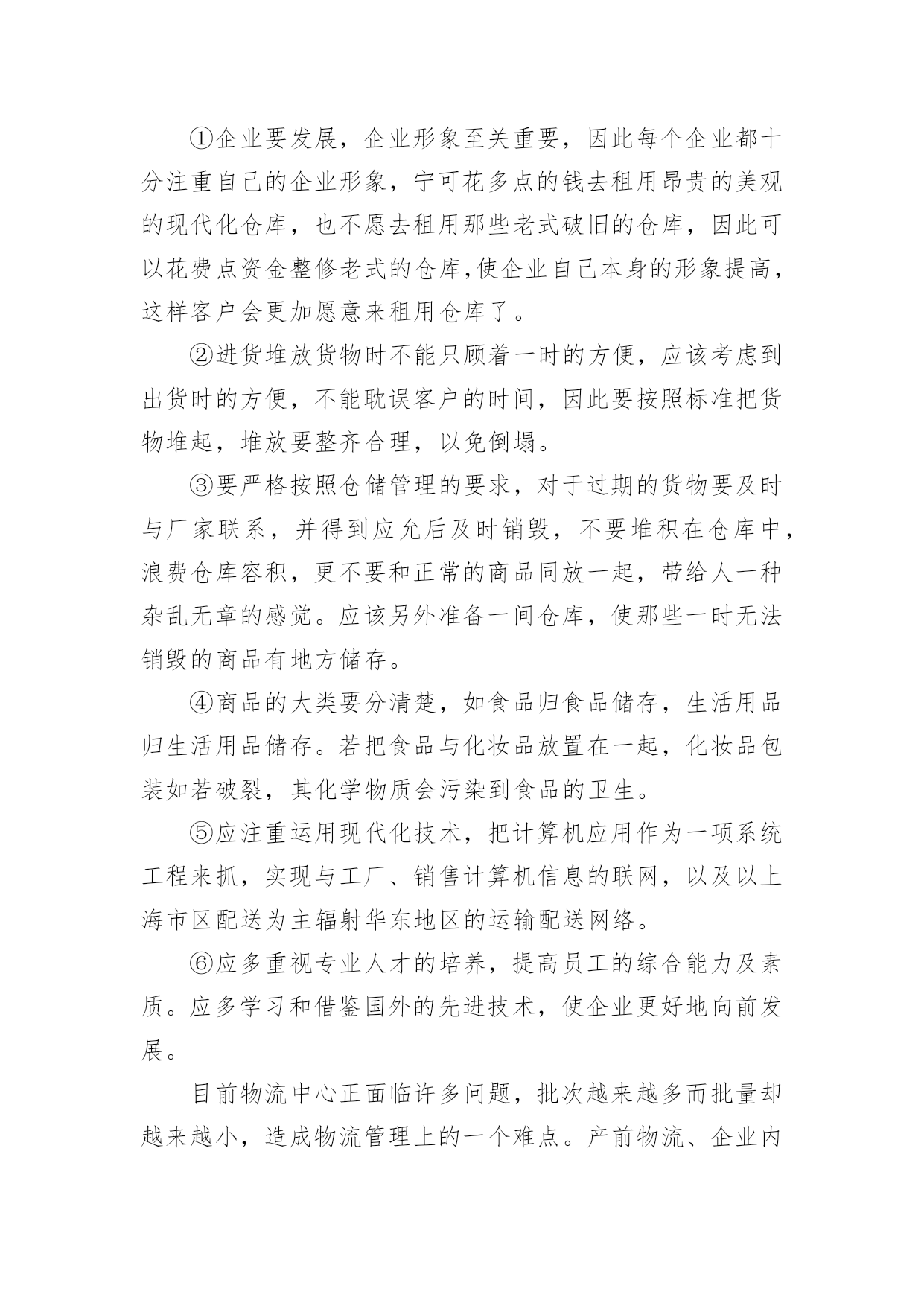物流实习报告物流实习报告【荐】在人们越来越注重自身素养的今天,报告对我们来说并不陌生,报告成为了一种新兴产业。那么一般报告是怎么写的呢?下面是小编帮大家整理的物流实习报告,仅供参考,希望能够帮助到大家。物流实习报告11、实习目的:通过大学四年的系统学习,对于物流的一些理论知识有了一定的了解,但是,这只是停留在脑海中的,对于这个行业还是感觉很陌生,现实中竟要做些什么,物流公司是怎么运营呢?信息部又充当什么角色,还是说物流公司都有自己的车,仓库等实体资产。当然最想弄清楚,自己所选的毕业论文,公司对于提高仓库利用率了采用哪些方法,或者能有什么方法。2、公司概况:百世物流科技有限公司是由信息技术和物流供应链资深专业人士联合组建的创新型综合物流供应链服务提供商。公司注册在香港,中国区总部设在杭州,已在全国范围内建立多级营运中心,配送网络覆盖全国四、五级城市。通过完整、系统的合作伙伴认证管理体系,专业的供应链解决方案设计,先进的信息技术和公司自行研发的综合营运平台GeniMax系统为国内外企业提供综合供应链设计与优化,电子物流与网络化仓储管理、干线运输、区域和同城配送等一站式物流管理外包服务。百世物流通过面向服务的信息平台架构(SOA)建立以客户需求为导向的快速响应机制,优选服务产品组合,以专业的服务管理能力和协同工作平台,帮助企业客户和合作伙伴提高效益,降低成本。客户成功,我们成功!”百世物流旨在为客户全力打造卓越的物流供应链服务平台,并不断超越客户期望。河南分公司目前的业务是广州浪奇公司河南境内的货物分拨,成立于20xx年9月份。目前公司总共员工10人,公司的硬件条件还在发展中,由于式新型的物流公司。所以项目,招标都在艰难的拓展中。3、实习内容:①分公司的人员设备由于公司是轻资产,公司理念投资“人”与“技术”,创新整合和发展现有物流资源;利用海量信息处理系统,同步信息流、物流和资金流;物流生态平面化,优化物流资源配置,缩减环节与费用仓库部分目前有3名库管还有一名仓库主管。设备有4辆手推叉车。运输车辆,由于公司是轻资产公司,所以并没有自购车辆。有2个承运商,中邮以及豫鑫物流,公司平常的运输业务由两家物流公司承运。②仓库类型:高平台彩钢板结构仓库。拥有高平台彩钢板结构仓库计4621平方米,可利用空间高度为7—8米,该类型仓库的优点是建筑结构合理,面积利用率高,防汛、防潮、隔热性能良好,全部有雨棚和外部装卸平台,库外周转场地大,便于商品装卸及进出仓。③具体工作内容CCS:CenterCustomerService总部客服。LCS:LocalCustomerService本地客服。负责接收CCS下达的订单、其他地区LCS派发或调度拆分过来的订单,完成订单的接收确认及派单安排。负责接收由CCS指定的本地客户下达的订单,完成系统录单及派单安排。负责对所有客户当地提派操作的跟进,监督操作对系统的实时更新,异常信息第一时间反馈给CCS。负责指定客户的客户服务及信息反馈。负责对异常事件的提报及IssueLog系统录入,跟踪并协调异常的处理,反馈异常处理进度。负责TMS系统客服相应模块的数据录入,LCS主管负责当地OP团队的日常系统操作培训工作。负责对提送货单据的记录及管理,完成内部的单据流转交接。完成其他临时工作。④作业流程:LCS接单派单流程订单来源LCS调度LCS2客户接收/派单CCS当地操作N接收/派单Y调度订单拆分N本地派车Y派车流程说明:LCS直接接收由CCS指定的客户订单,参照合同接收可受理订单,录入系统。异地发货订单,邮件通知发货地LCS(非工作时间需电话联系),邮件主题为“xx客户x日提货x票”,系统录单时运作组织选择发货地HUB;若发货地没有专职LCS或百世网点,邮件发至CCS对应客服组处理;当地始发订单直接填写[百世托运单],留下存根联后将托运单交给调度安排提货LCS接收CCS、其他LCS下派的客户订单,CCS、其他LCS在系统下单的同时,邮件发送订单信息至LCS邮箱,邮件主题为“xx客户x日提货x票”。LCS接到邮件通知后,在TMS系统中查询订单详细信息,填写[百世托运单],留下存根联后将托运单交给调度安排提货。LCS接收调度拆分过来的内部订单,口头或电话通知调度提前做好接货发货准备。对于有正式合同的签约客户,在合同约定范围内的,LCS必须根据合同约定接受订单,不得无理由拒单;如确实存在特殊情况,导致该票订单无法操作需拒单时,LCS有义务主动提交项目经理,就订单不能操作原因进行说明,并根据项目经理的指示答复客户。对于签约客户的拒单行为,将记入HUB考核。对于二手客户订单,由LCS与操作部门协商,由OP主管确认即可操作。一般要求二手货利润高于15%,且无收款风险,可以操作。操作当天LCS必须将客户信息邮件发送至数据组维护,进行系