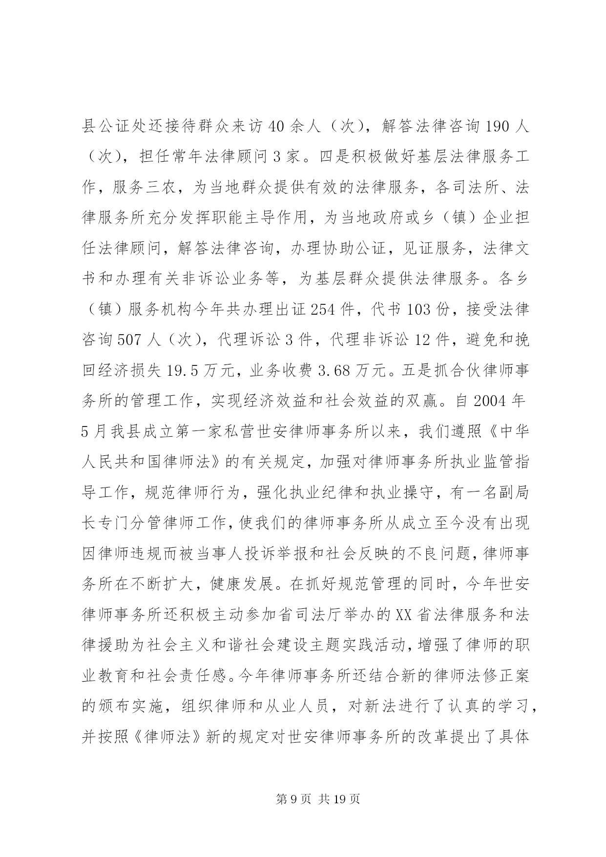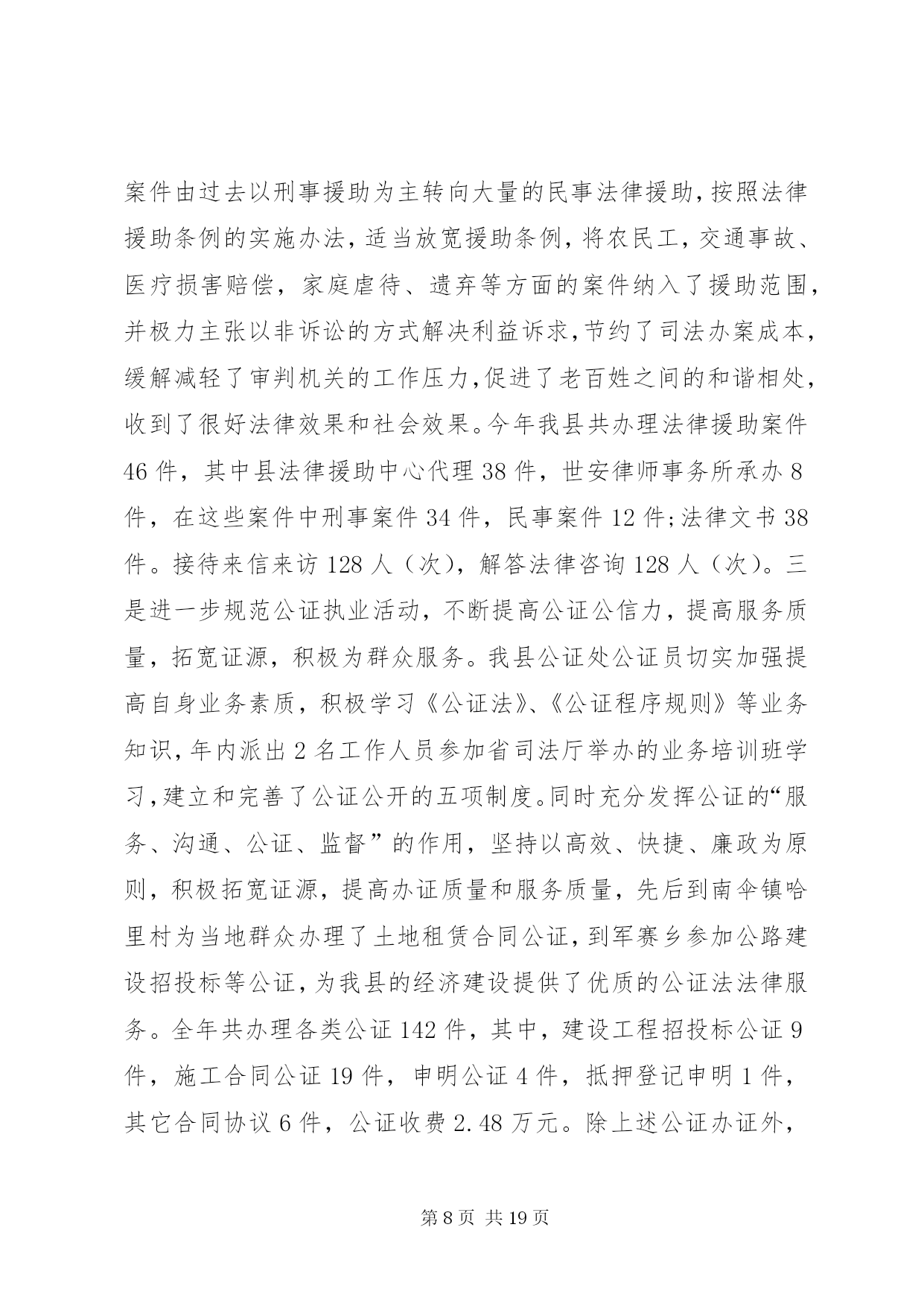 司法局局长在全县司法行政工作总结会上的讲话.docx