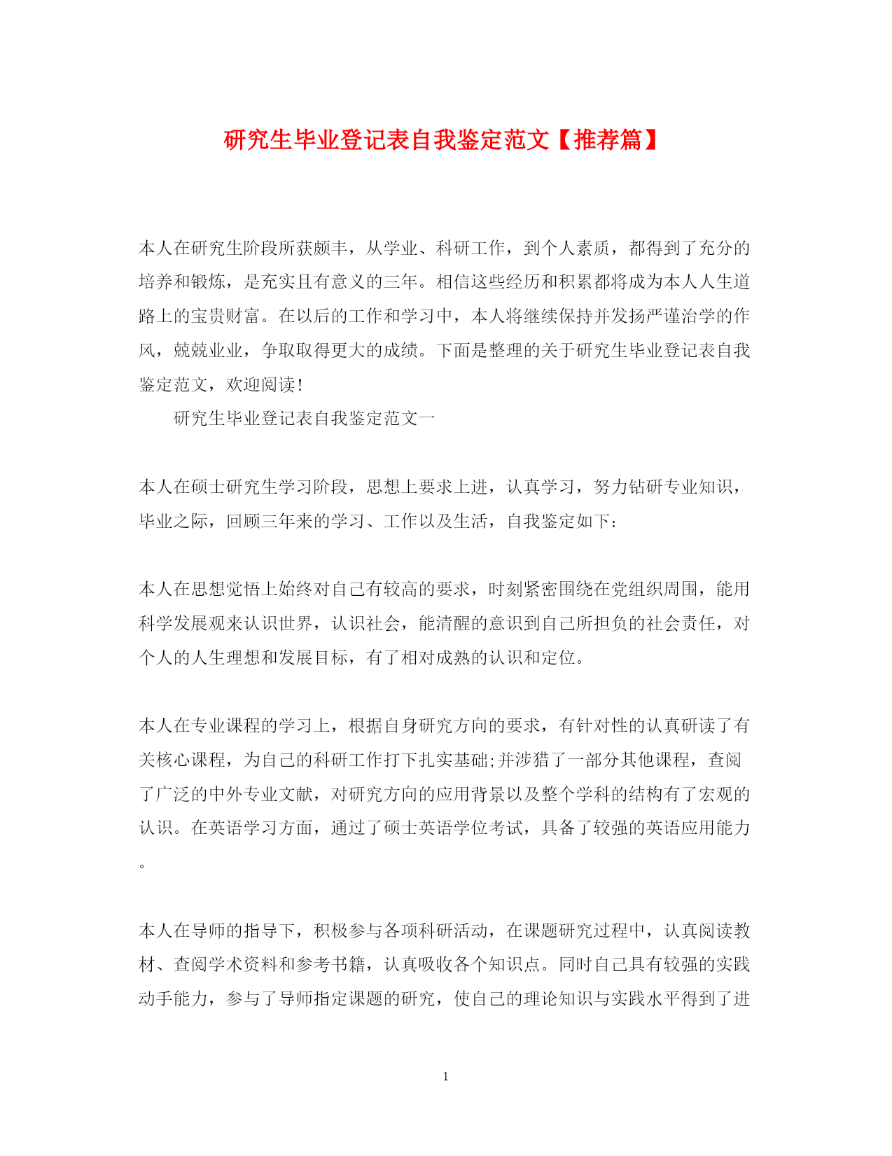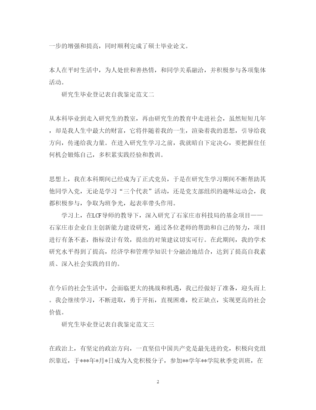 2022研究生毕业登记表自我鉴定范文【推荐篇】.docx