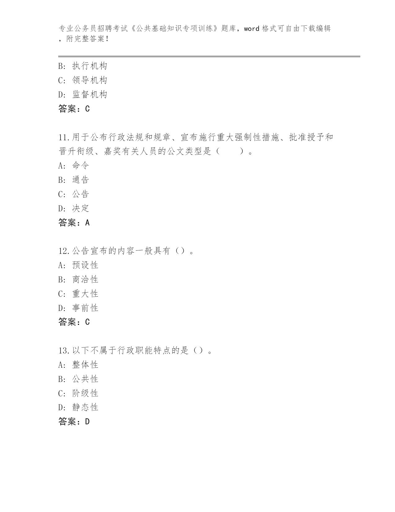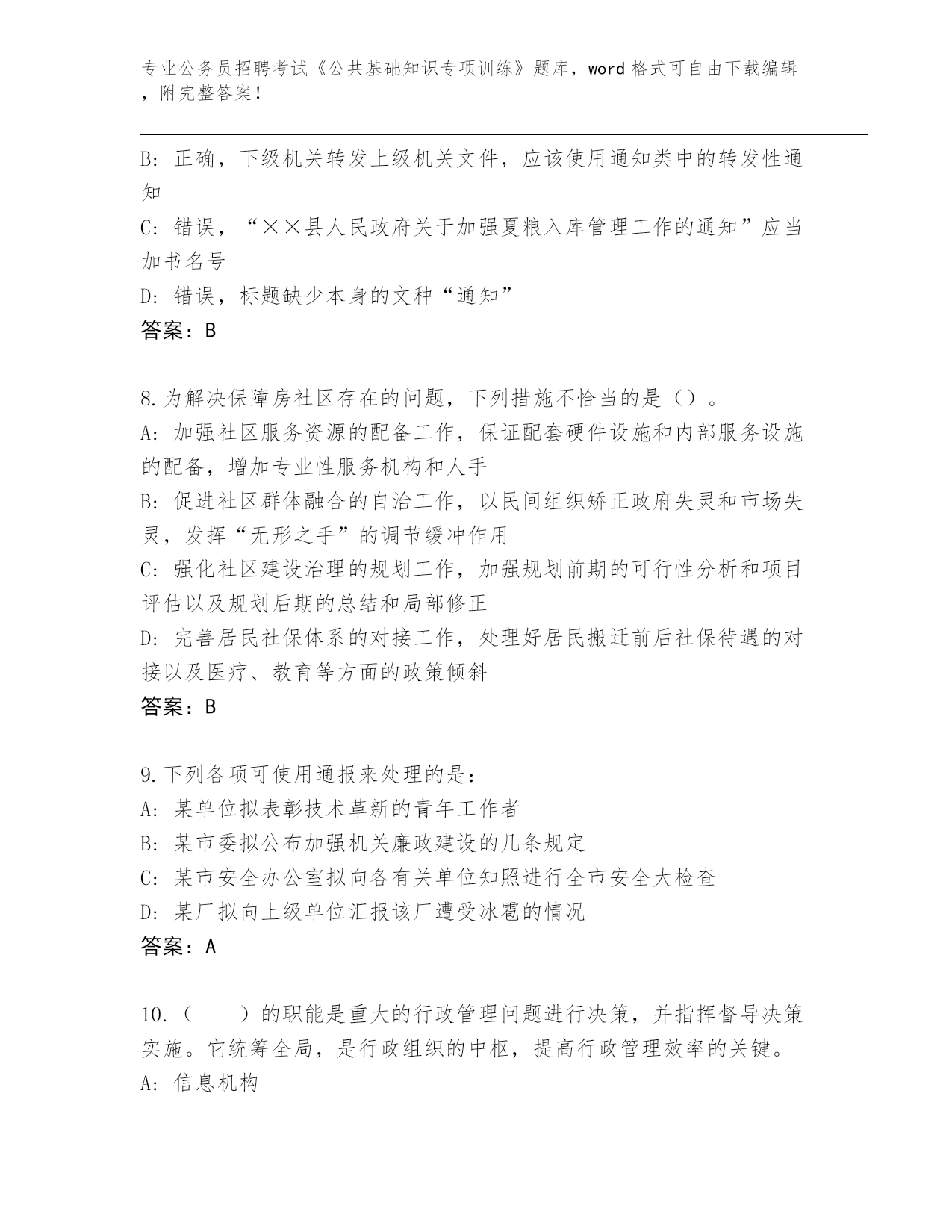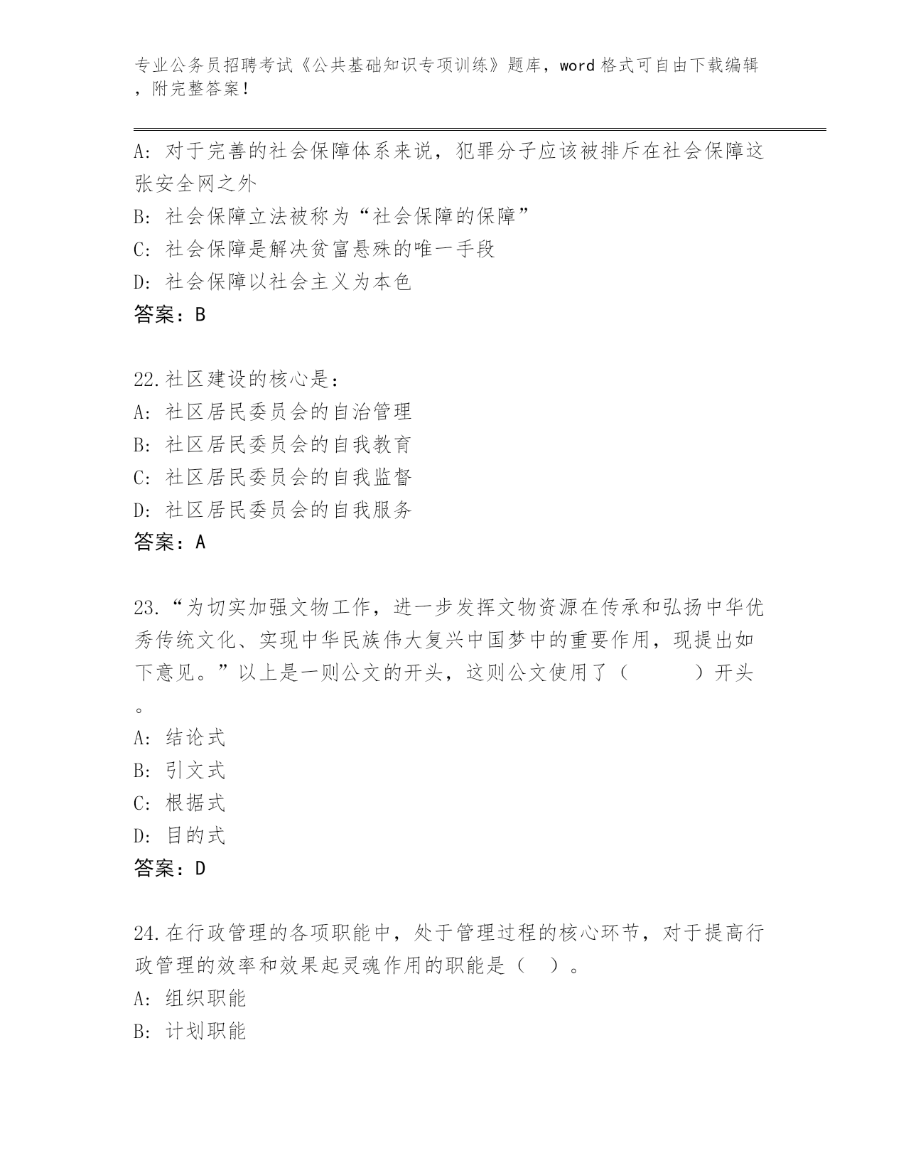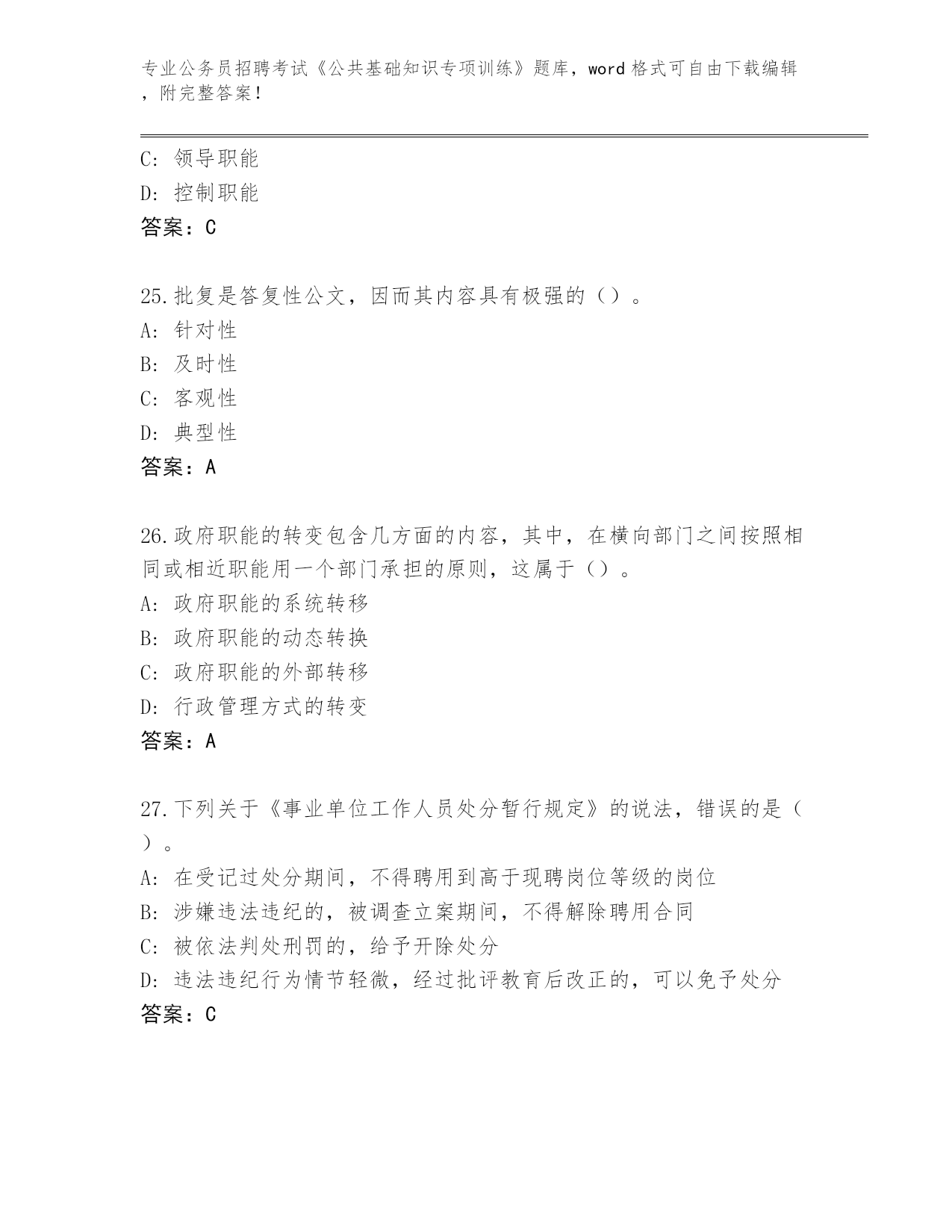 湖南省2024公务员招聘考试《公共基础知识专项训练》真题(含答案)