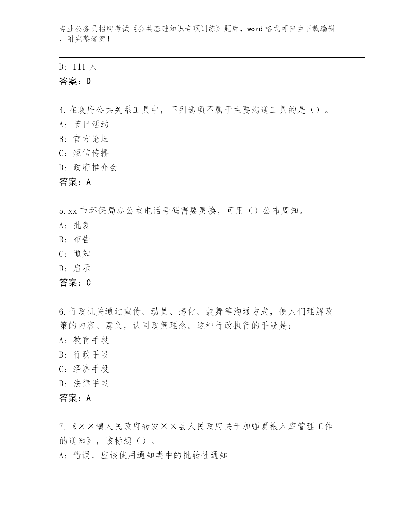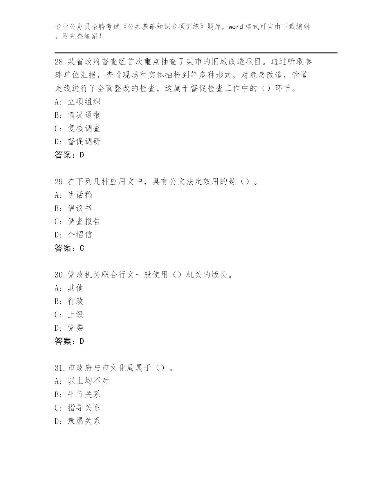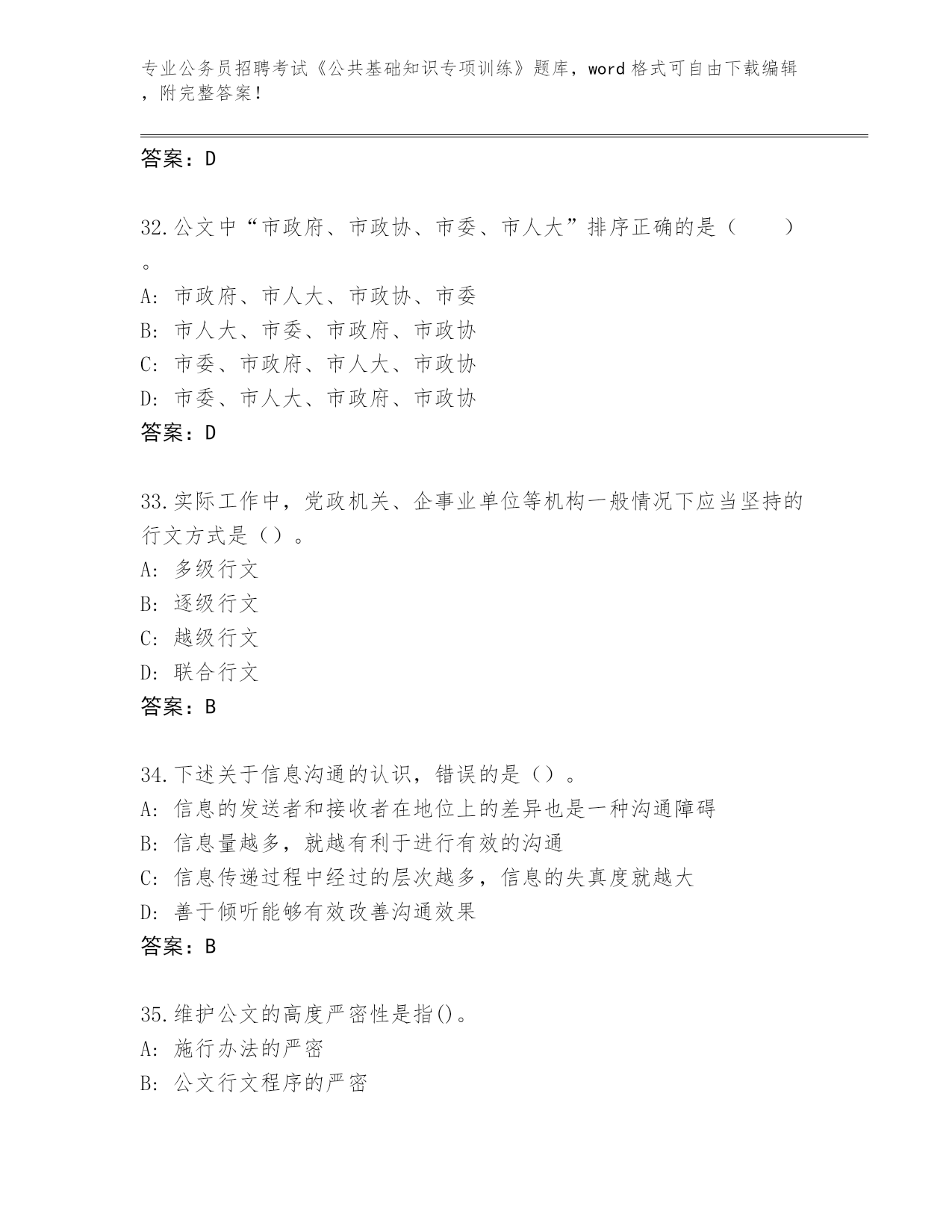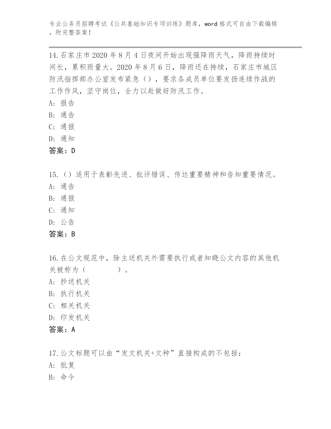 湖南省2024公务员招聘考试《公共基础知识专项训练》真题(含答案)