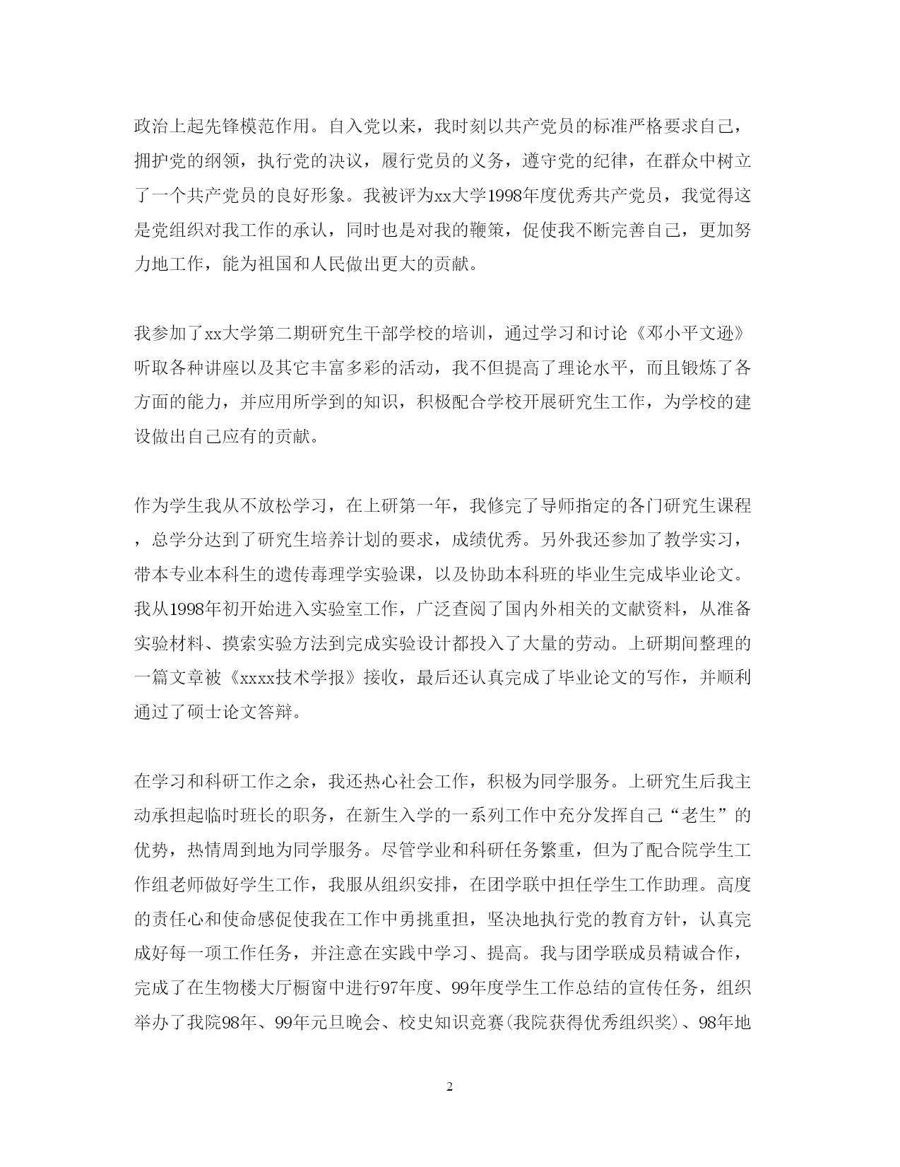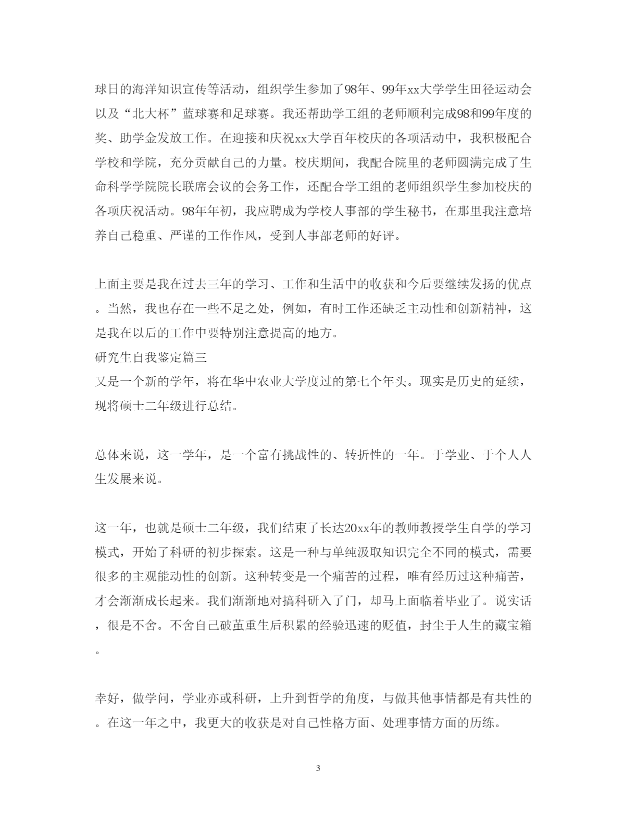 此资料由网络收集而来,如有侵权请告知上传者立即删除。资料共分享,我们负责传递知识。PAGEPAGE5研究生自我鉴定即便是一名研究生的你,也应该做一个研究生自我鉴定来鞭策自己!下面由本小编精心整理的研究生自我鉴定,希望可以帮到你哦!研究生自我鉴定篇一本人自入学以来,秉承“笃学慎思、明辨尚行”的校训,通过不懈努力,圆满地完成了硕士研究生阶段的学习任务。在学习上,极为珍惜研究生院良好的学习氛围和资源条件,刻苦学习,乐于登攀,通过良师的悉心教导和自身的刻苦努力,掌握了技术经济及管理领域的基础理论和专业知识,具备了较强的业务能力和英语运用能力;在思想品德修养上,认真学习实践科学发展观,牢固树立了为党、为国、为民贡献青春的信念,党性觉悟得到锤炼,思想政治素质进一步提高;在生活上,崇尚质朴的生活方式,养成了正直的作风和良好的生活习惯,待人诚恳、热情,尊敬师长、团结同学,在同学中具有一定的威信;在工作上,勤勤恳恳、扎扎实实,重视小事、关注细节,能够独立承担一些工作任务,适应性强,得到领导和同事的好评。在过去的三年里,本人所获颇丰,这些经历和积累都将成为我人生道路上的宝贵财富。在今后的工作和学习中,将继续保持并发扬严谨治学的态度和作风,自强不息,求实进取,争取有更大的成绩。研究生自我鉴定篇二自从xxxx年x月成为一名硕士研究生以来,这三年我的学习、工作和生活充实而有意义,收获很多,成长很快。我在政治上、思想上一直积极要求进步。进入北大后,通过参加业余党校和入党积极分子培训班的学习,我对建设有中国特色的社会主义理论和党的基本路线有了较深刻的认识,树立了坚定的共产主义信念,并于1996年1月光荣加入了中国共产党。经过党组织1年预备期的考察,于1997年1月如期转为正式党员。我决心要做一名合格的、模范的共产党员,在学习、工作、思想上起带头作用,特别是在政治上起先锋模范作用。自入党以来,我时刻以共产党员的标准严格要求自己,拥护党的纲领,执行党的决议,履行党员的义务,遵守党的纪律,在群众中树立了一个共产党员的良好形象。我被评为xx大学1998年度优秀共产党员,我觉得这是党组织对我工作的承认,同时也是对我的鞭策,促使我不断完善自己,更加努力地工作,能为祖国和人民做出更大的贡献。我参加了xx大学第二期研究生干部学校的培训,通过学习和讨论《邓小平文逊》听取各种讲座以及其它丰富多彩的活动,我不但提高了理论水平,而且锻炼了各方面的能力,并应用所学到的知识,积极配合学校开展研究生工作,为学校的建设做出自己应有的贡献。作为学生我从不放松学习,在上研第一年,我修完了导师指定的各门研究生课程,总学分达到了研究生培养计划的要求,成绩优秀。另外我还参加了教学实习,带本专业本科生的遗传毒理学实验课,以及协助本科班的毕业生完成毕业论文。我从1998年初开始进入实验室工作,广泛查阅了国内外相关的文献资料,从准备实验材料、摸索实验方法到完成实验设计都投入了大量的劳动。上研期间整理的一篇文章被《xxxx技术学报》接收,最后还认真完成了毕业论文的写作,并顺利通过了硕士论文答辩。在学习和科研工作之余,我还热心社会工作,积极为同学服务。上研究生后我主动承担起临时班长的职务,在新生入学的一系列工作中充分发挥自己“老生”的优势,热情周到地为同学服务。尽管学业和科研任务繁重,但为了配合院学生工作组老师做好学生工作,我服从组织安排,在团学联中担任学生工作助理。高度的责任心和使命感促使我在工作中勇挑重担,坚决地执行党的教育方针,认真完成好每一项工作任务,并注意在实践中学习、提高。我与团学联成员精诚合作,完成了在生物楼大厅橱窗中进行97年度、99年度学生工作总结的宣传任务,组织举办了我院98年、99年元旦晚会、校史知识竞赛(我院获得优秀组织奖)、98年地球日的海洋知识宣传等活动,组织学生参加了98年、99年xx大学学生田径运动会以及“北大杯”蓝球赛和足球赛。我还帮助学工组的老师顺利完成98和99年度的奖、助学金发放工作。在迎接和庆祝xx大学百年校庆的各项活动中,我积极配合学校和学院,充分贡献自己的力量。校庆期间,我配合院里的老师圆满完成了生命科学学院院长联席会议的会务工作,还配合学工组的老师组织学生参加校庆的各项庆祝活动。98年年初,我应聘成为学校人事部的学生秘书,在那里我注意培养自己稳重、严谨的工作作风,受到人事部老师的好评。上面主要是我在过去三年的学习、工作和生活中的收获和今后要继续发扬的优点。当然,我也存在一些不足之处,例如,有时工作还缺乏主动性和创新精神,这是我在以后的工作中要特别注意提高的地方。研究生自我鉴定篇三又是一个新的学年,将在华中农业大学度过的第七个年头。现实是历史的延续,现将硕士二年级进行总结。总体来说,这一学年,是一个富有挑战性的、转折性的