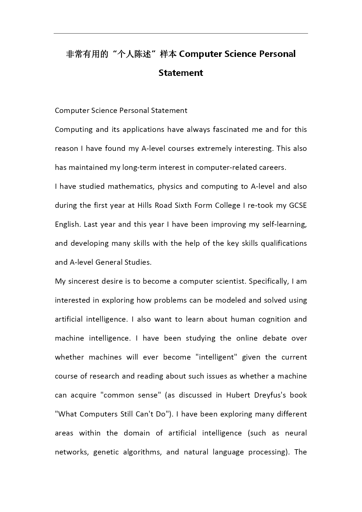 非常有用的“个人陈述”样本Computer Science Personal Statement