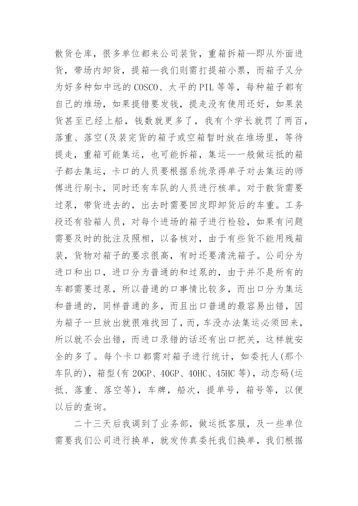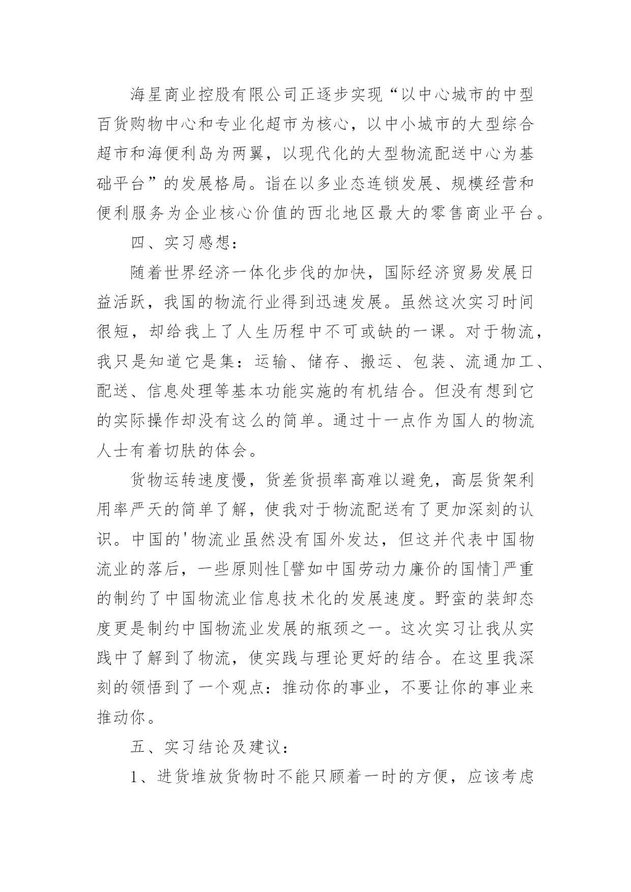 物流沙盘实训报告物流沙盘实训报告(精选18篇)随着个人素质的提升,报告的使用频率呈上升趋势,我们在写报告的时候要注意语言要准确、简洁。一起来参考报告是怎么写的吧,下面是小编收集整理的物流沙盘实训报告(精选18篇),欢迎大家借鉴与参考,希望对大家有所帮助。物流沙盘实训报告(精选18篇)1进入物流公司里面实习,在这次实习里面,我也是对于这个物流行业有了更多了解,清楚自己能做什么,也是通过实习,积累了一些经验,对于未来,也是更有信心去工作的岗位上立足了。一、实习目的利用实习的一个机会,也是能让我们认识社会,了解工作是怎么一回事,又是自己哪些方面还要去提升,一些之前没有发觉到的问题出现了,更是要去解决,来让自己能更从容的去到社会做好工作。二、实习内容这次实习,我主要是做客服的工作,接客户的电话,去帮他们查件,处理问题,在做这份工作之前,其实我并不是很了解这个工作是要做什么,虽然自己也是买过东西,收过快递,但是其实也和快递公司没有太多的一个联系,平时的时候也是没有联系过物流的公司,所以可以说没有任何的基础,不过开始进来,领导也是不会让我们开始就做事情,而是给我们做了几天的培训,熟悉工作的流程,了解要做的事情,又是要怎么要和客户去沟通,要注意的方面有哪些。经过培训后,再入到岗位上,我开始和客户的沟通也只会按照话术来做,甚至一些没遇到的问题,也是没有解决的方法,但是随着工作的进行下去,渐渐的我也是掌握了一些方法,对于这份工作有了自己的看法和清楚该怎么样做,才能是做好的,在工作里头,我也是体会到自己以前没发觉到原来自己其实沟通上其实也是有自己的想法的,和别的同事相比,其实也是有自己的优势,我也是去利用好了,得到肯定,自己帮客户解决了问题,同时也是积累了更多的经验。三、实习体会结束了客服的实习工作,我也是感触挺深的,别看这个是基础的岗位,但是也是接触到物流行业的方方面面,不但是要和客户去沟通,也是要和快递员,和物流途中的各个工作人员有交流,去帮客户处理问题,了解清楚情况,并且这份工作要去做得出色,自己的能力也是需要有很多,可能做的确容易,但是做到让客户满意,不被投诉,甚至把一些不好的影响消除掉,这些都是需要有一定的方法和技巧的`,也是需要不断的去积累经验,才能遇到任何的问题情况都是能从容的来面对,去处理好的。工作也是与在校的学习差别挺大的,每天也是有任务的要求,要做到怎么样,要处理解决多少客户的问题,得到的评价是怎么样,一天下来,开始我也是很累很累,现在好了一些,但是也是明白,和学习的轻松相比,自己要在工作上付出的是有很多的。不过也是感谢这份工作,让我对于以后自己要去走的路,有了想法,会更自信的走好。物流沙盘实训报告(精选18篇)2一、实习目的:为了以后能更好的适应工作和学习,学校组织到海星物流配送中心进行为期十天的实习。主要是为了了解物流的作业流程,以便对我国的物流业能有更深的了解。二、实习要求:了解物流的特点,主要设备和作业流程,对其进行分析。并依据学习的理论提出自己的意见。三、实习单位简介:配送中心是以组织配送性销售或供应,执行实物配送为主要职能的流通型结点。具有集货中心、分货中心的职能。海星商业控股有限公司是在海星连锁超市基础了发展起来的大型企业,拥有大型百货购物中心,社区连锁超市,中心城市便利岛为支柱的三大商业,并以现代物流配送中心为支持平台。海星物流配送中心是一个中等规模的物流配送基地,是综合性的物流配送中心。兼有转运和集散功能,也可以扩展至配送和流通加工的功能,因此在规划与设计方面可操作性更高。陕西海星物流配送中心主要分为:收货、分货、验货、退货四大部门,各个部门之间相互协调和相互配合,密不可分。海星商业控股有限公司正逐步实现“以中心城市的中型百货购物中心和专业化超市为核心,以中小城市的大型综合超市和海便利岛为两翼,以现代化的大型物流配送中心为基础平台”的发展格局。诣在以多业态连锁发展、规模经营和便利服务为企业核心价值的西北地区最大的零售商业平台。四、实习感想:随着世界经济一体化步伐的加快,国际经济贸易发展日益活跃,我国的物流行业得到迅速发展。虽然这次实习时间很短,却给我上了人生历程中不可或缺的一课。对于物流,我只是知道它是集:运输、储存、搬运、包装、流通加工、配送、信息处理等基本功能实施的有机结合。但没有想到它的实际操作却没有这么的简单。通过十一点作为国人的物流人士有着切肤的体会。货物运转速度慢,货差货损率高难以避免,高层货架利用率严天的简单了解,使我对于物流配送有了更加深刻的认识。中国的'物流业虽然没有国外发达,但这并代表中国物流业的落后,一些原则性[譬如中国劳动力廉价的国情]严重的制约了中国物流业信息技术化的发展速度。野蛮的装卸态度更是制约中国物流业发展的瓶颈之一。这次实习让我从实践中了解到了物流,使实践与理论更好的结合