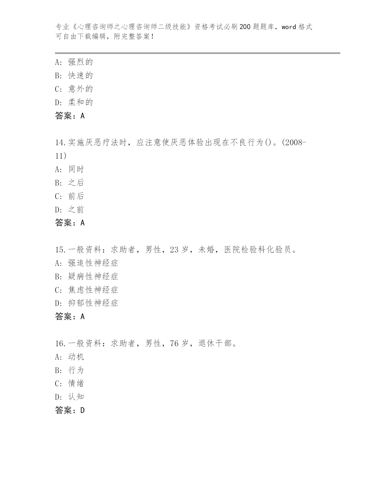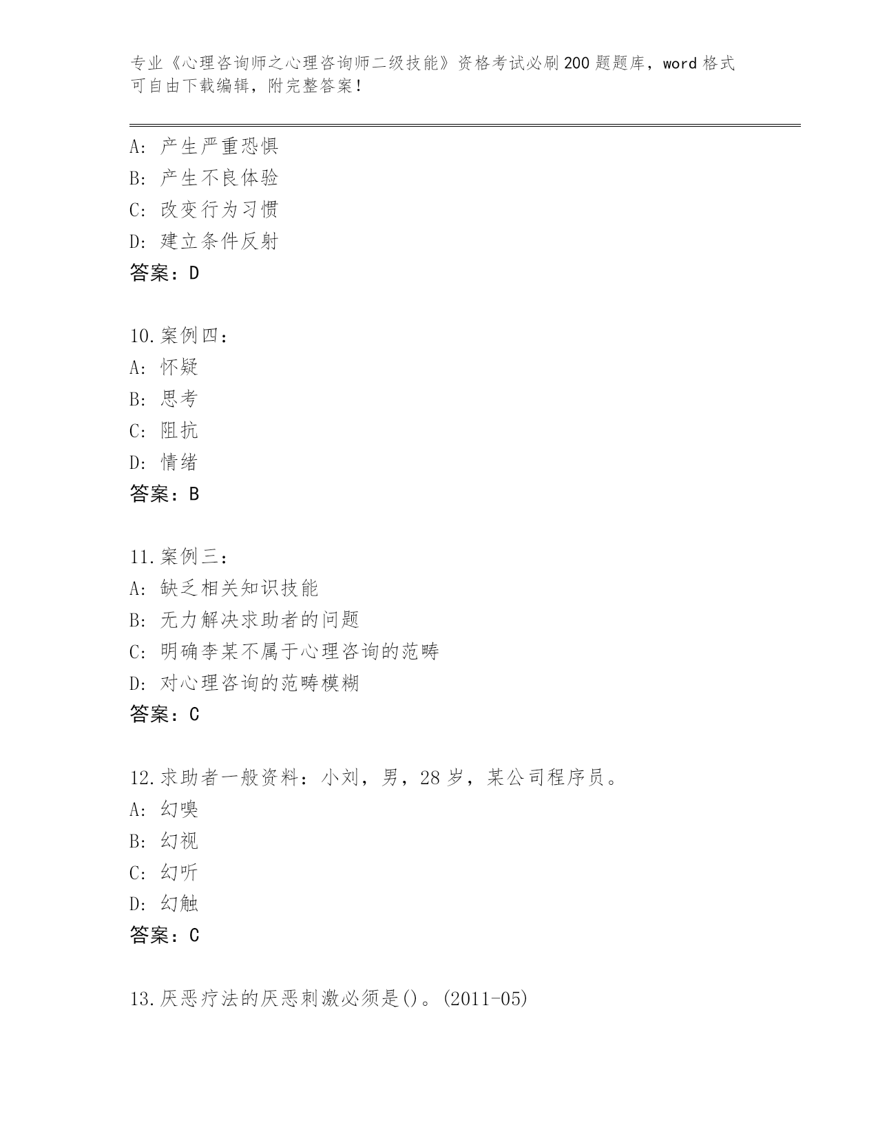 北京市昌平区《心理咨询师之心理咨询师二级技能》资格考试必刷200题内部题库附答案(基础题)