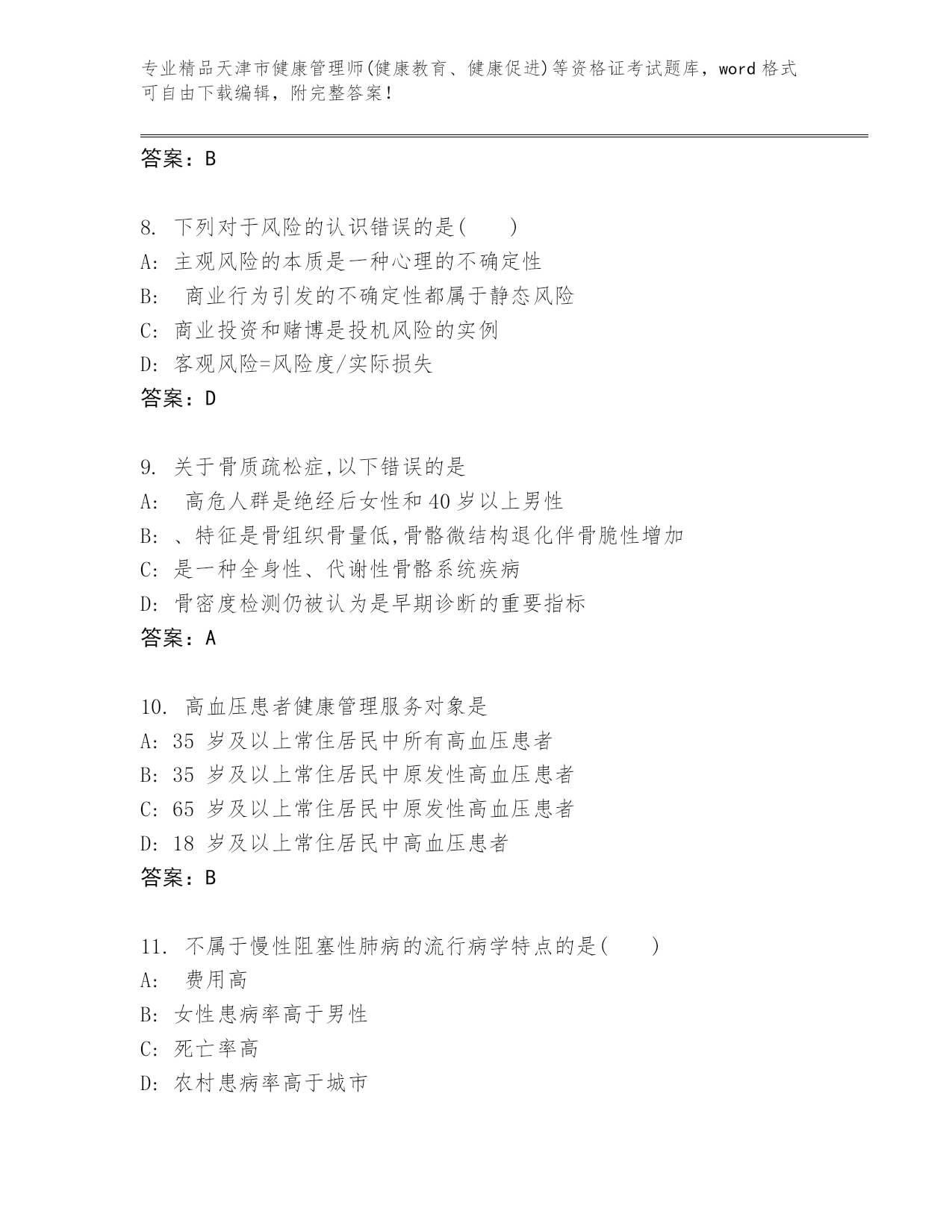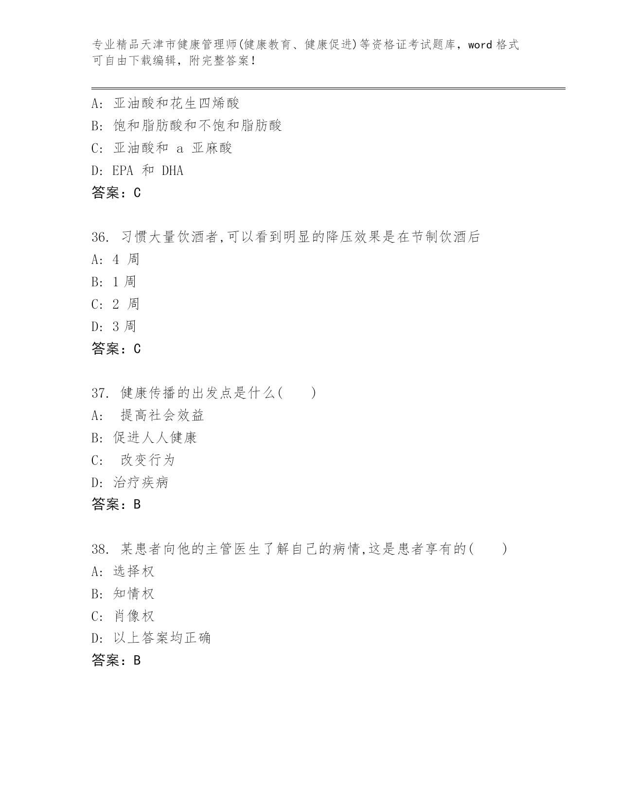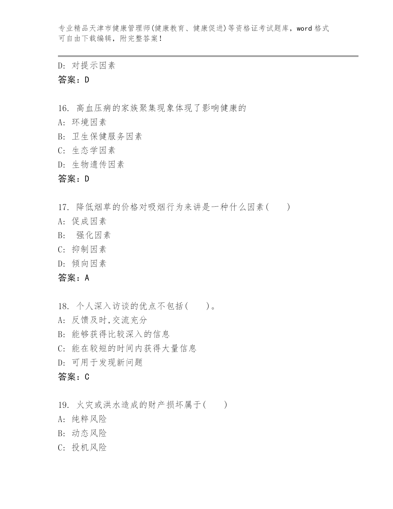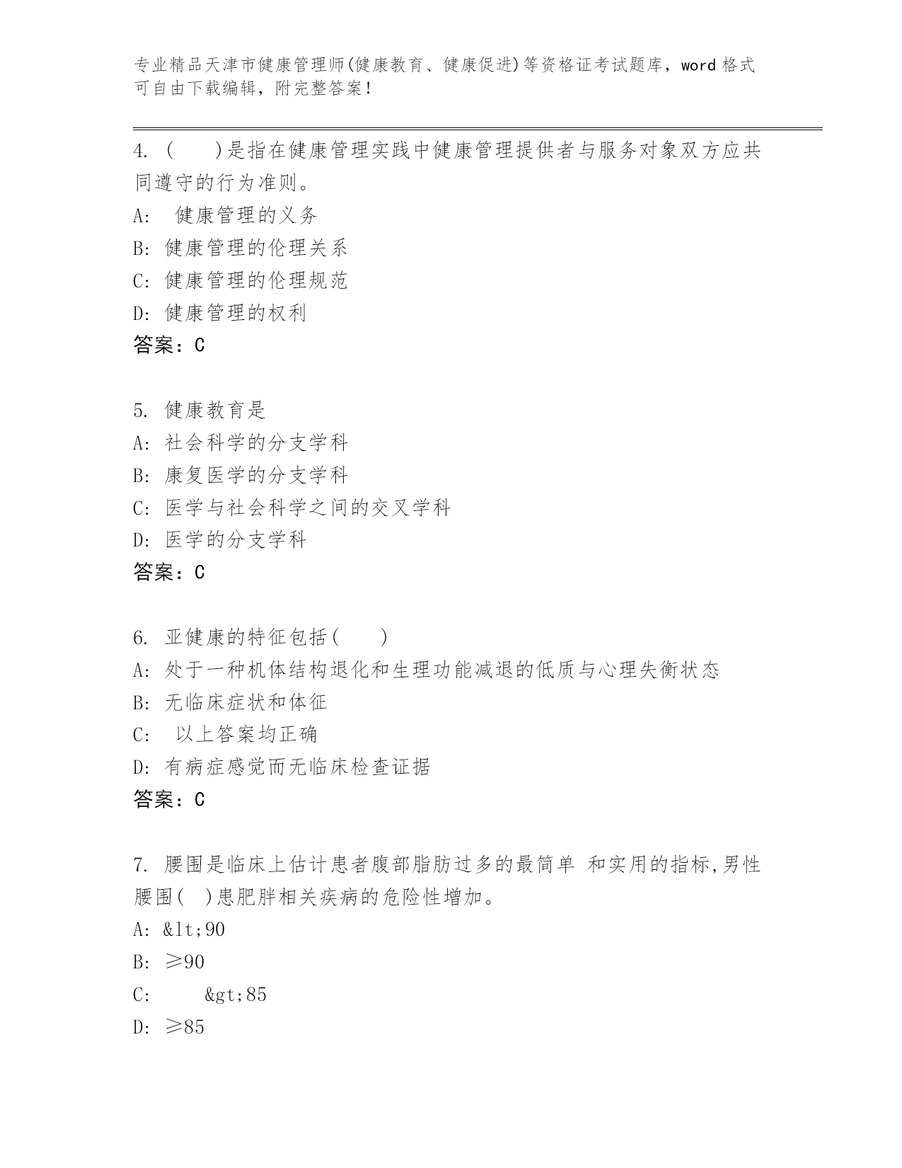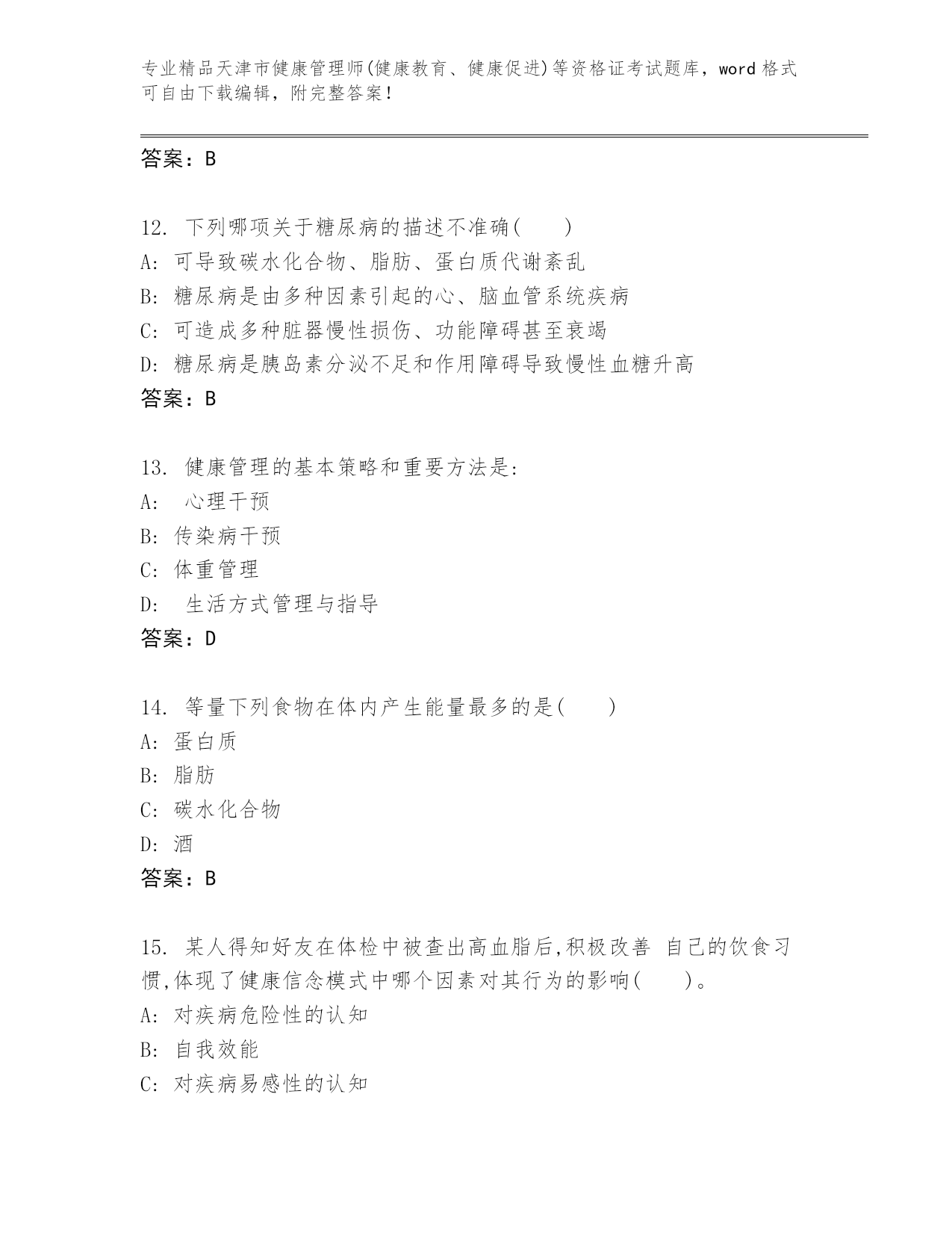 精编天津市健康管理师(健康教育、健康促进)等资格证考试王牌题库精品(名师系列)