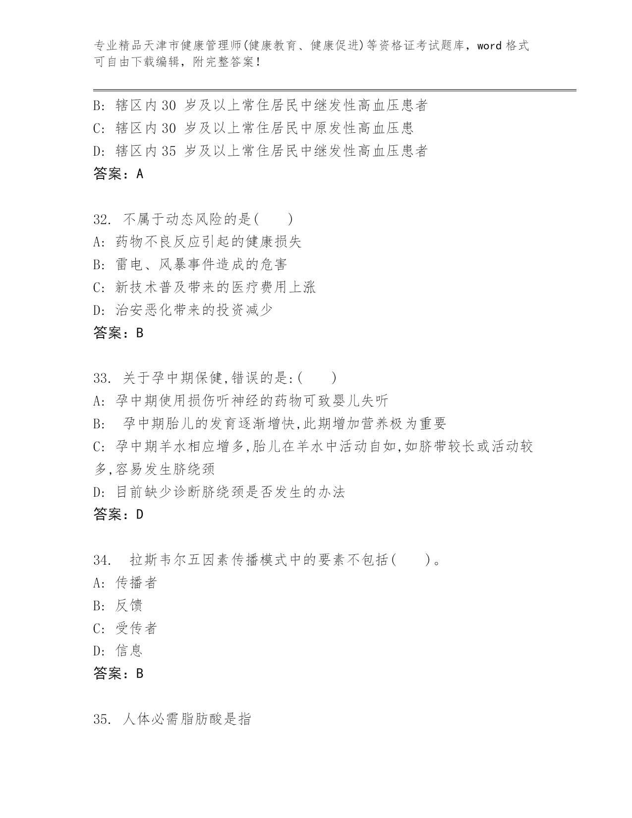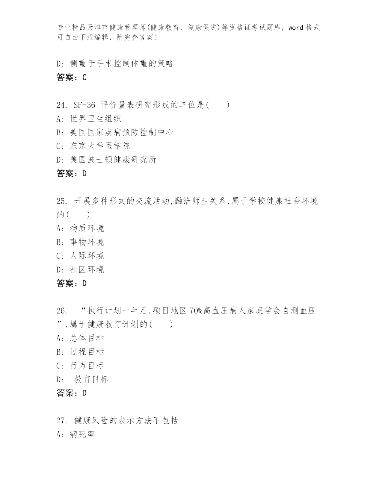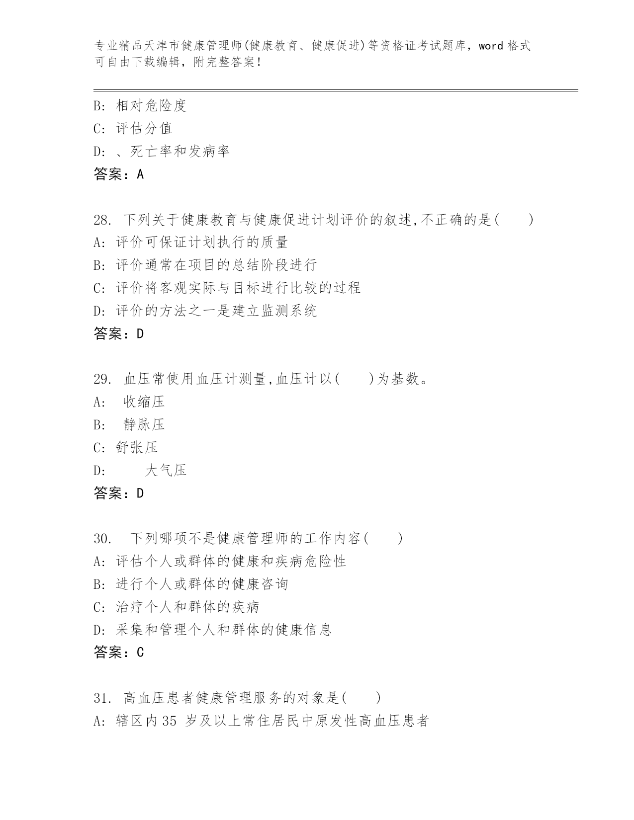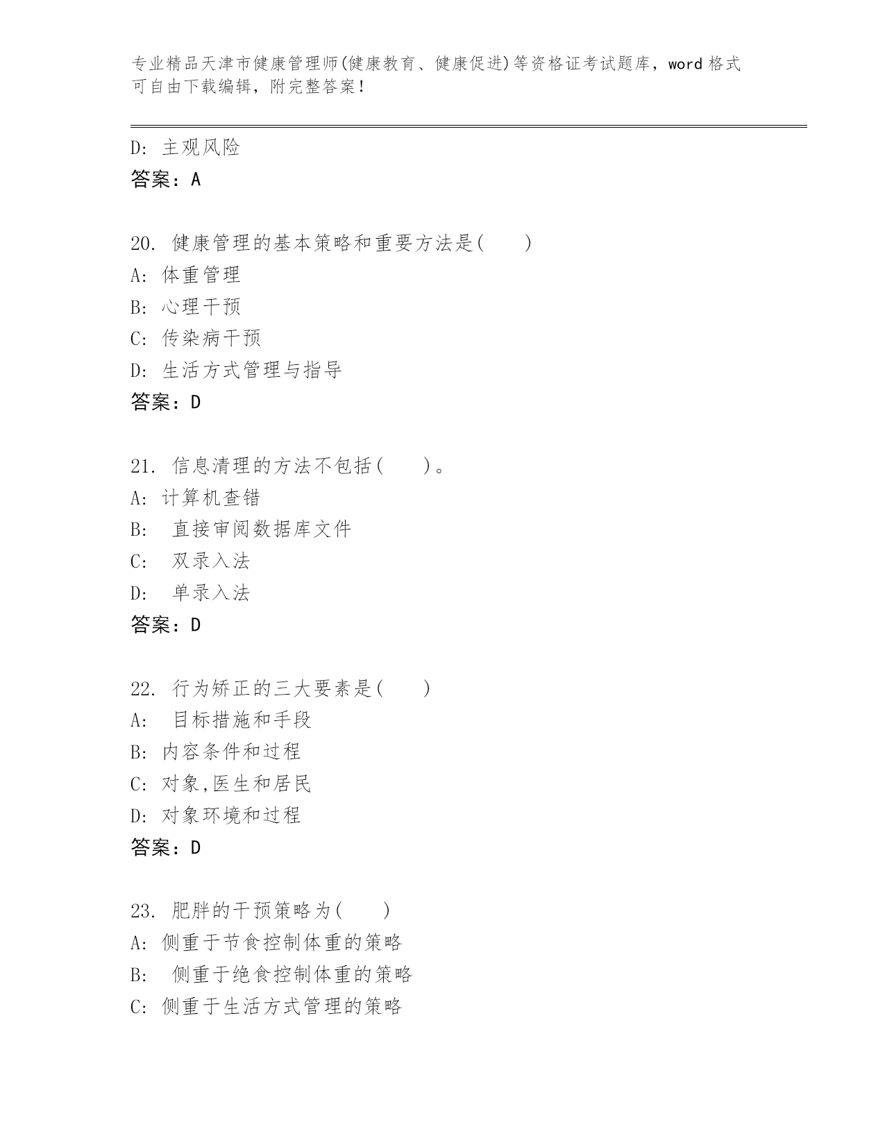 精编天津市健康管理师(健康教育、健康促进)等资格证考试王牌题库精品(名师系列).docx